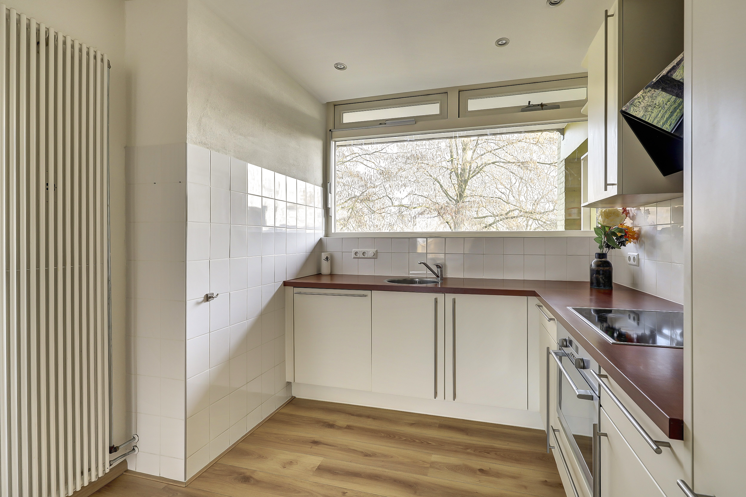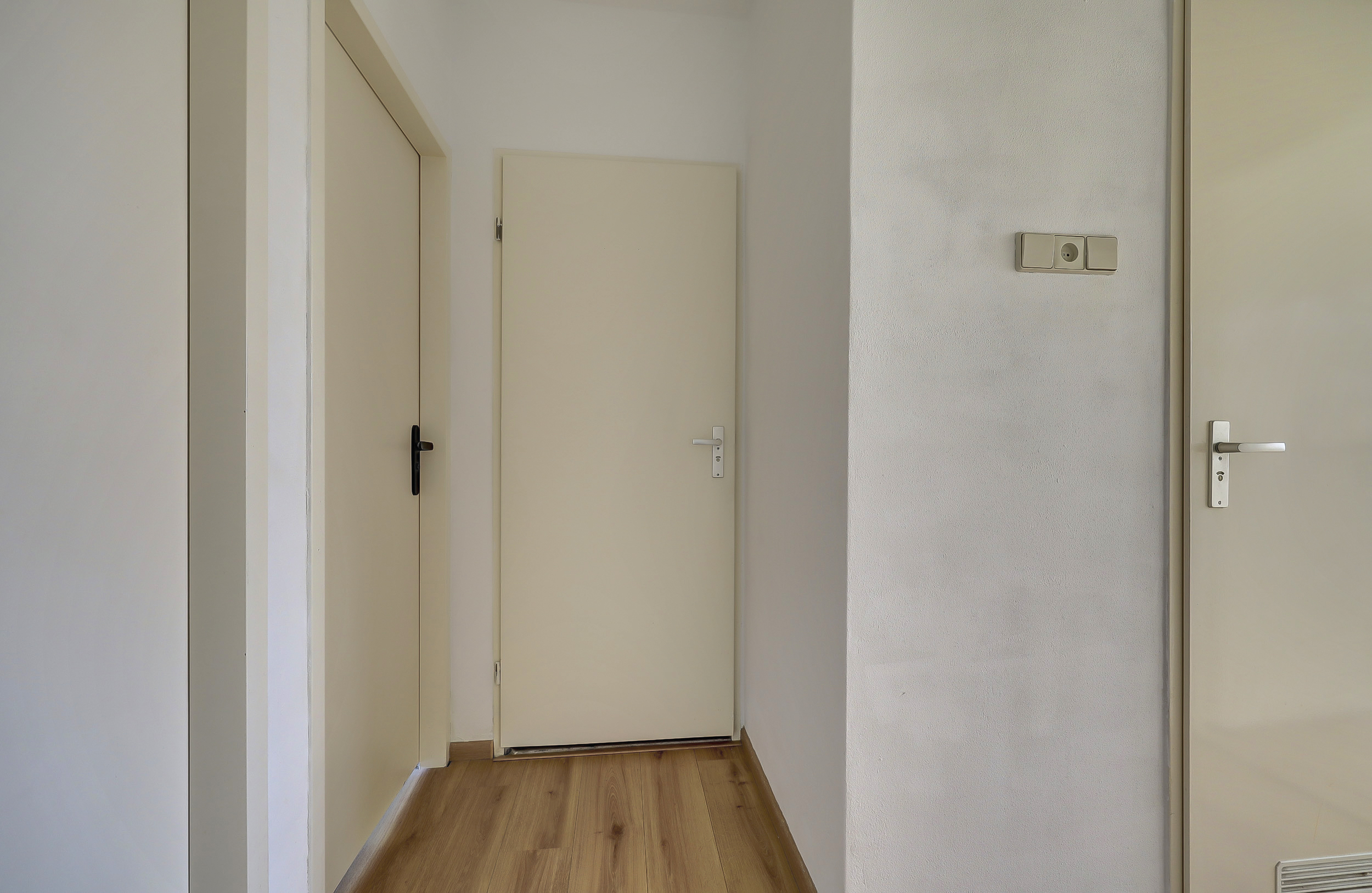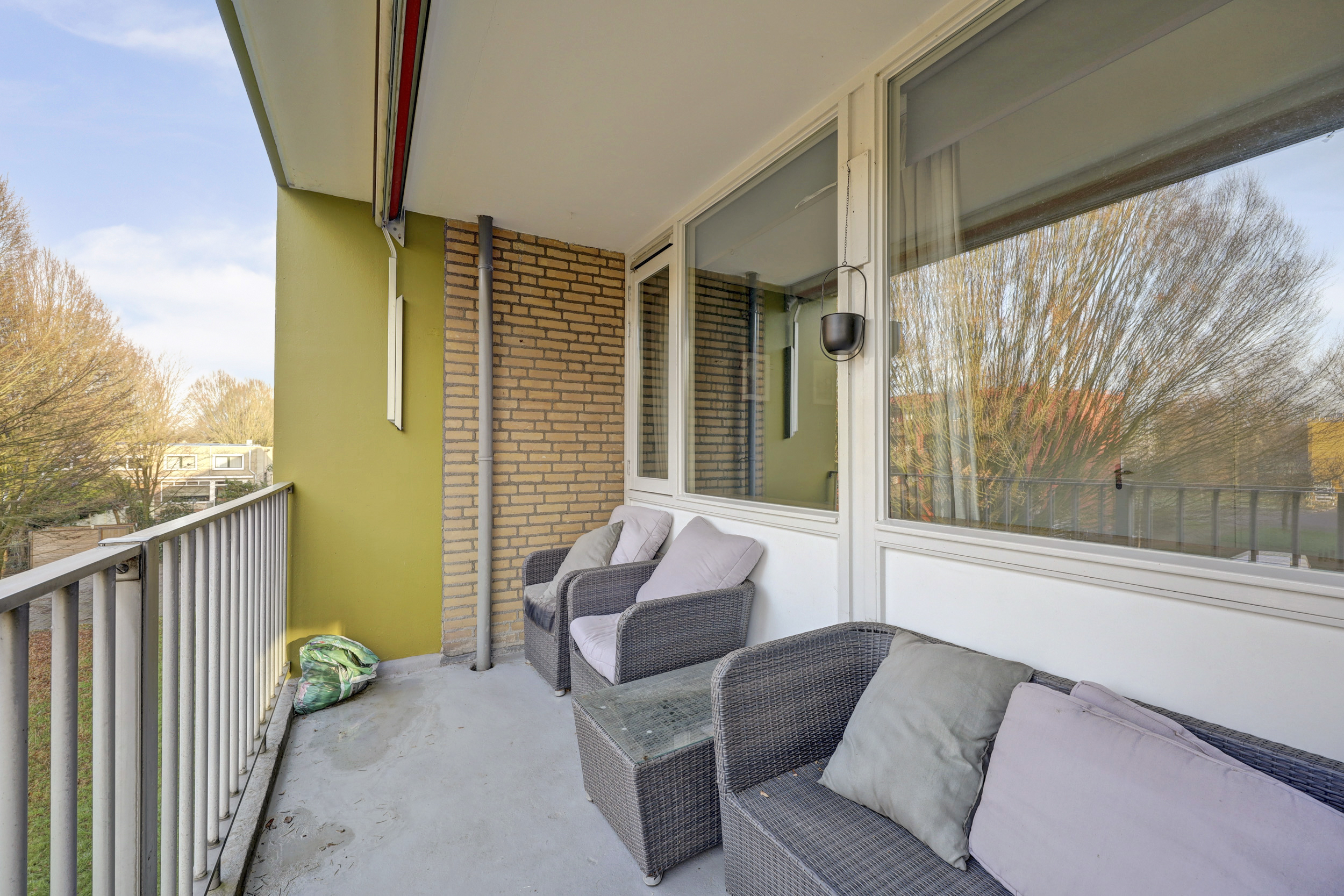 Het balkon ligt op het zuidwesten en biedt een fijne buitenruimte waar u tot in de avond van de zon kunt genieten. Een prettige verlenging van de woonruimte, ideaal voor een moment van rust na een werkdag.