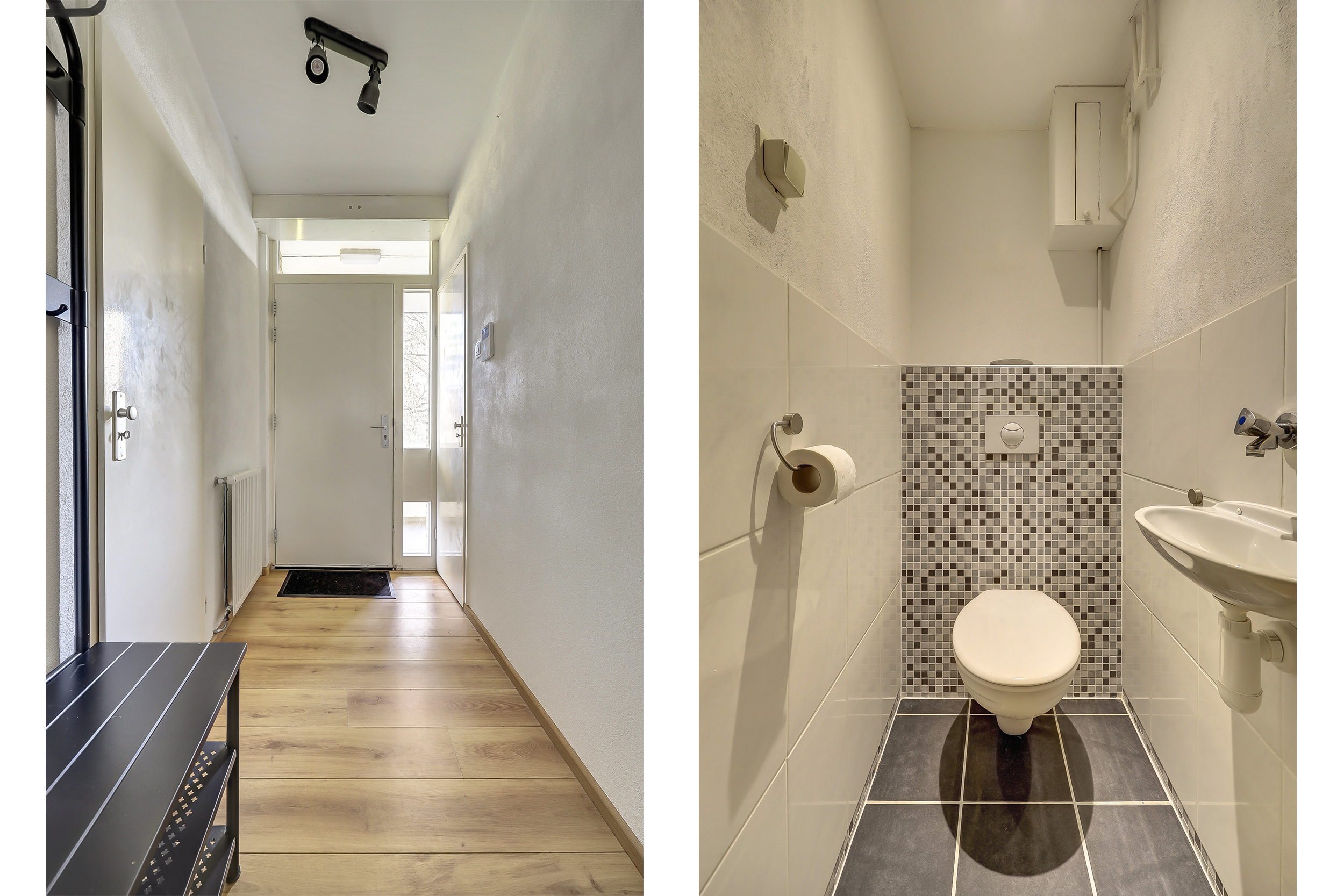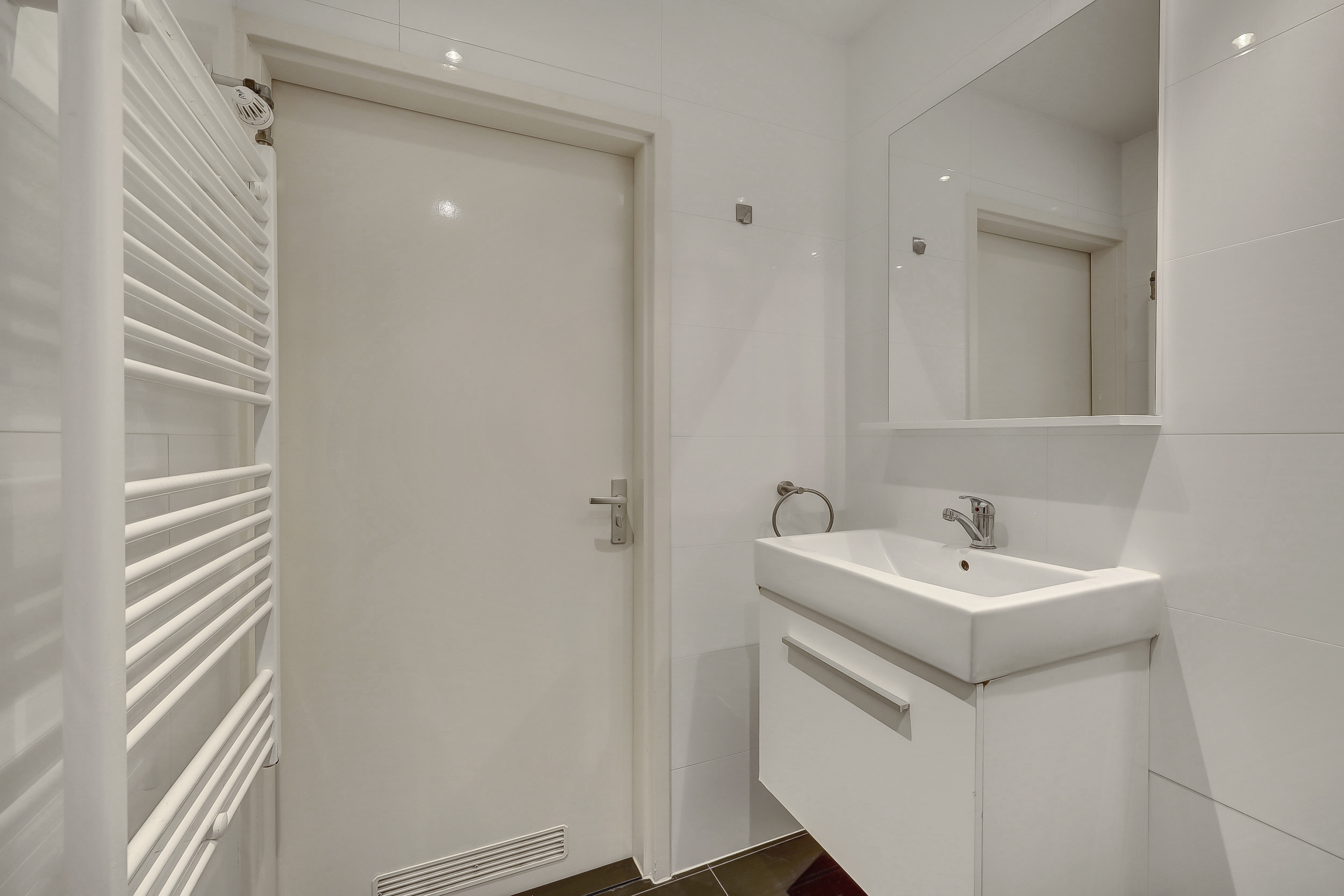 Het appartement beschikt over twee slaapkamers, geschikt als hoofdslaapkamer, kinderkamer of werkruimte. De badkamer is praktisch ingericht en voorzien van een douche en wastafel. Het separate toilet met keurig sanitair verhoogt het dagelijkse gebruiksgemak.