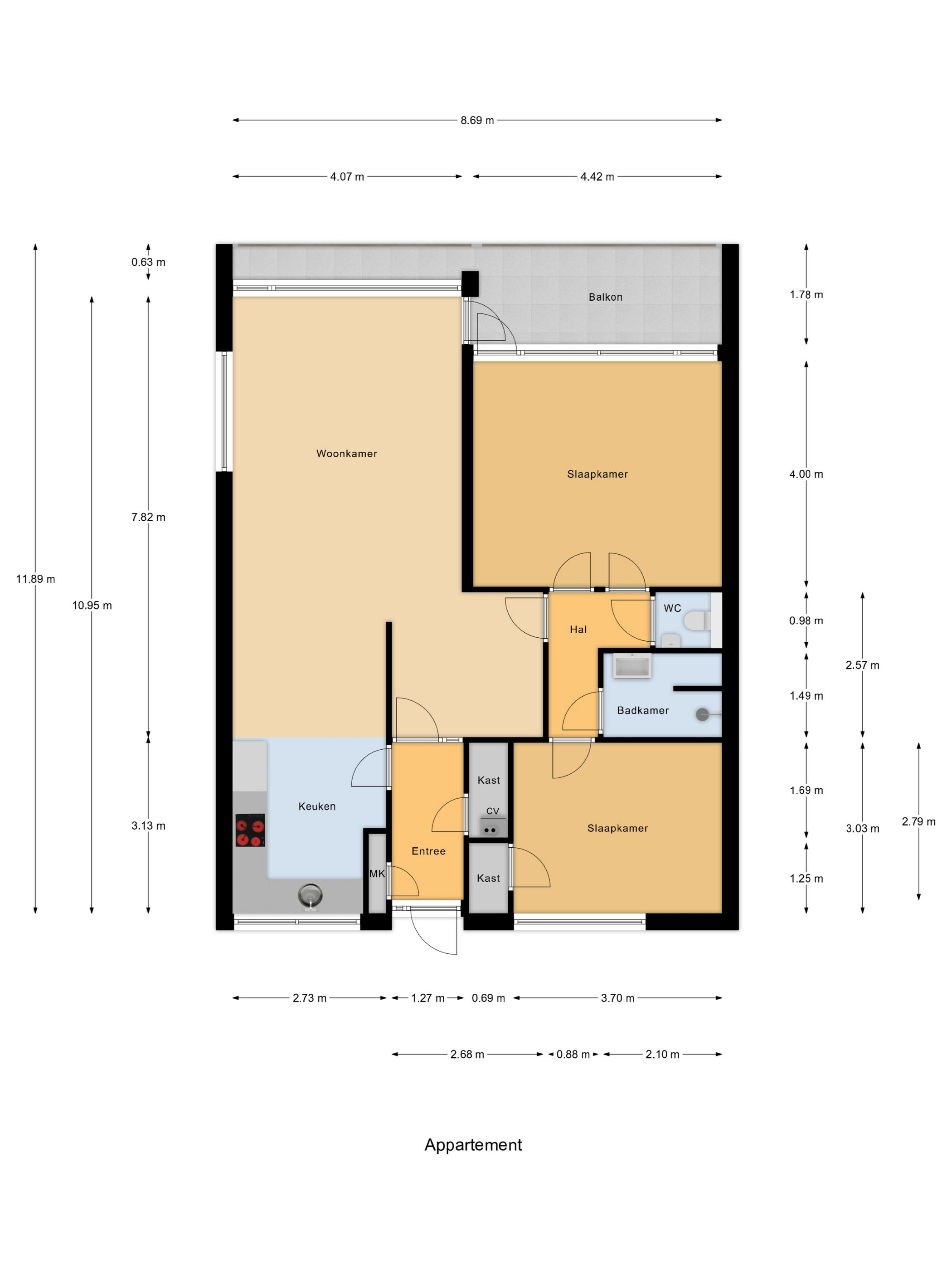 • Aantal kamers: 3 (waarvan 2 slaapkamers)