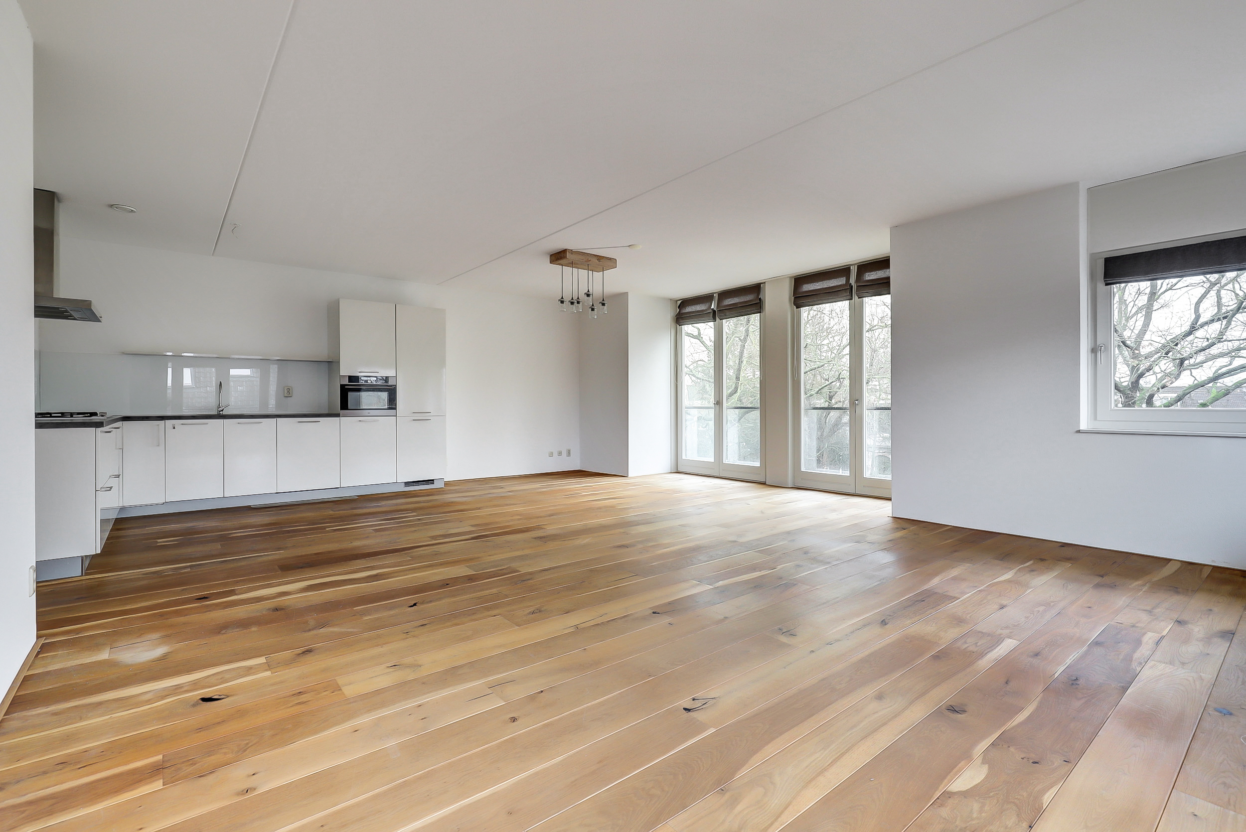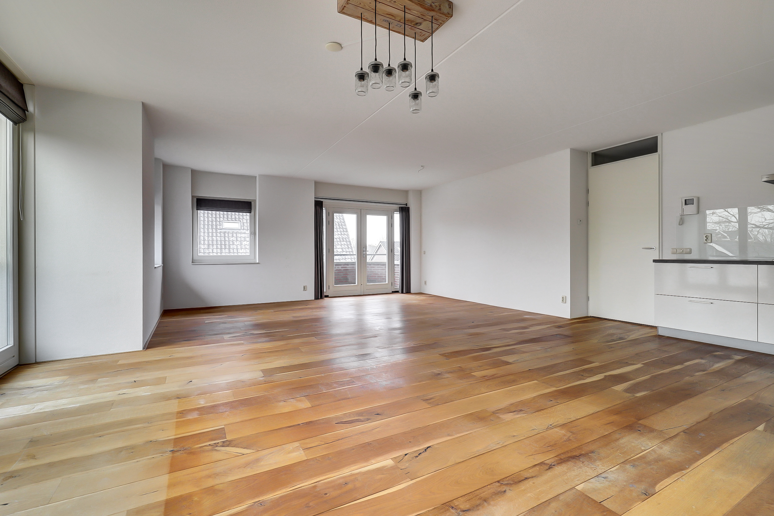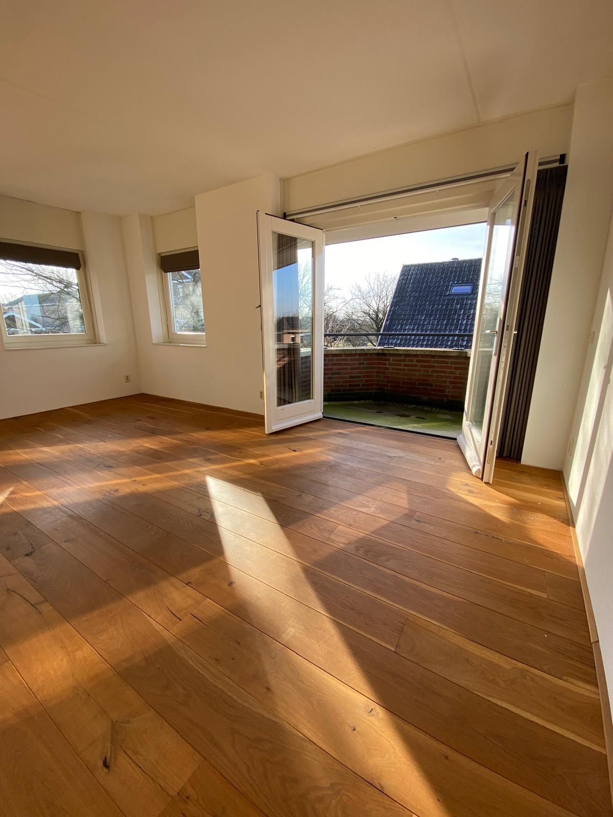 • Lichte woonkamer met grote raampartijen (2 Franse balkons) aan meerdere zijden
