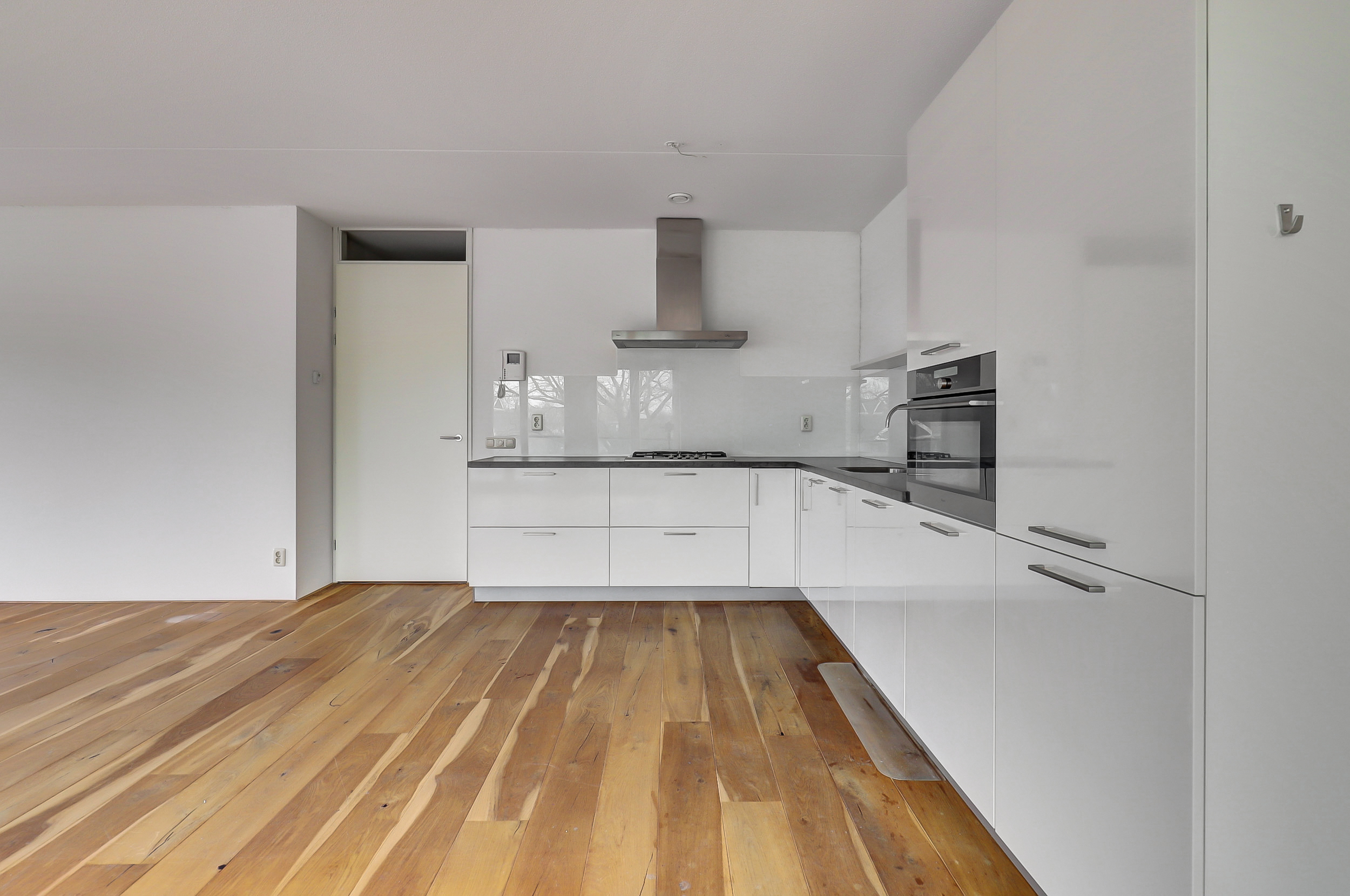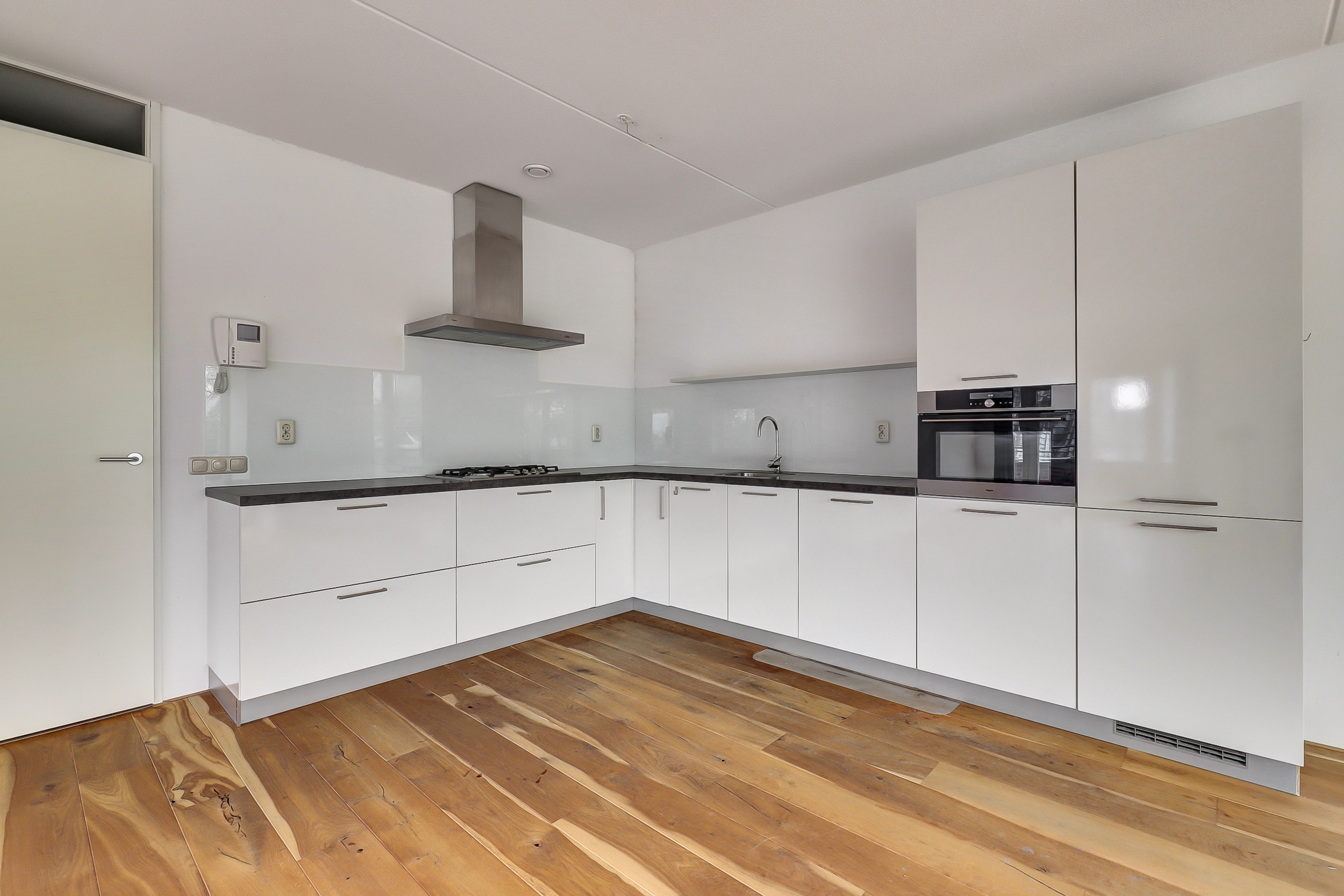Entree/hal met de meterkast met glasvezel en klikgroepen en een separate toiletruimte met wandcloset en fontein. De hal geeft toegang tot alle vertrekken. Mooie royale woonkamer met open keuken, waarbij direct de prettige lichtinval dankzij grote raampartijen aan meerdere zijden opvalt. De openslaande deuren bij de 2 Franse balkons aan de voorzijde en de openslaande deuren naar het balkon versterken het ruimtelijke gevoel en zorgen voor een mooie verbinding met buiten. Het groen in de straat geeft veel privacy. Het balkon is gunstig gelegen voor de middag- en avondzon en biedt een fijne plek om buiten te zitten. De mooie houten lamellen parketvloer met vloerverwarming, de spuitwerk wand- en plafondafwerking en de houten draai-kiepramen geven het gehele appartement een warme en hoogwaardige uitstraling. De verzorgde en lichte keuken is uitgevoerd in een praktische L-opstelling en voorzien van diverse inbouwapparatuur, o.a. koelkast met vriesvak, 4-pits gasfornuis met wasemkap, vaatwasser en combi-oven. Het appartement beschikt over twee comfortabele slaapkamers, beide met eigen thermostaat. De ruime badkamer is in lichte kleur uitgevoerd met een inloopdouche met glazen wand, wastafel en geheel betegeld. Praktische was-/stookruimte en tevens opslagruimte met aansluitingen voor de wasmachine en droger en opstelplaats voor de mechanische ventilatie box en de Cv-ketel (Nefit, 2015).