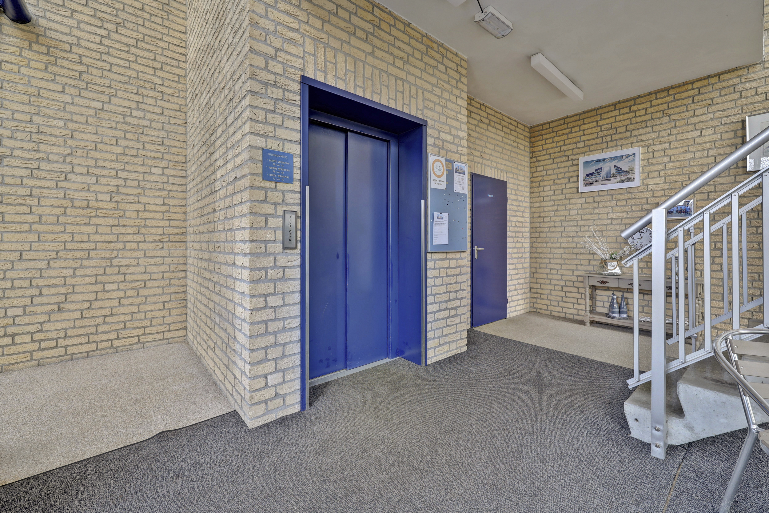Verzorgde centrale entree met intercom, lift en trappenhuis. Op de begane grond bevindt zich tevens de eigen berging met elektra, bereikbaar via het trappenhuis of via de buitendeur aan de achterzijde van het gebouw.