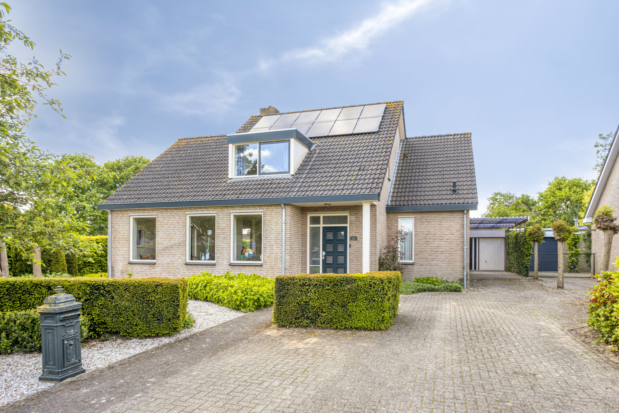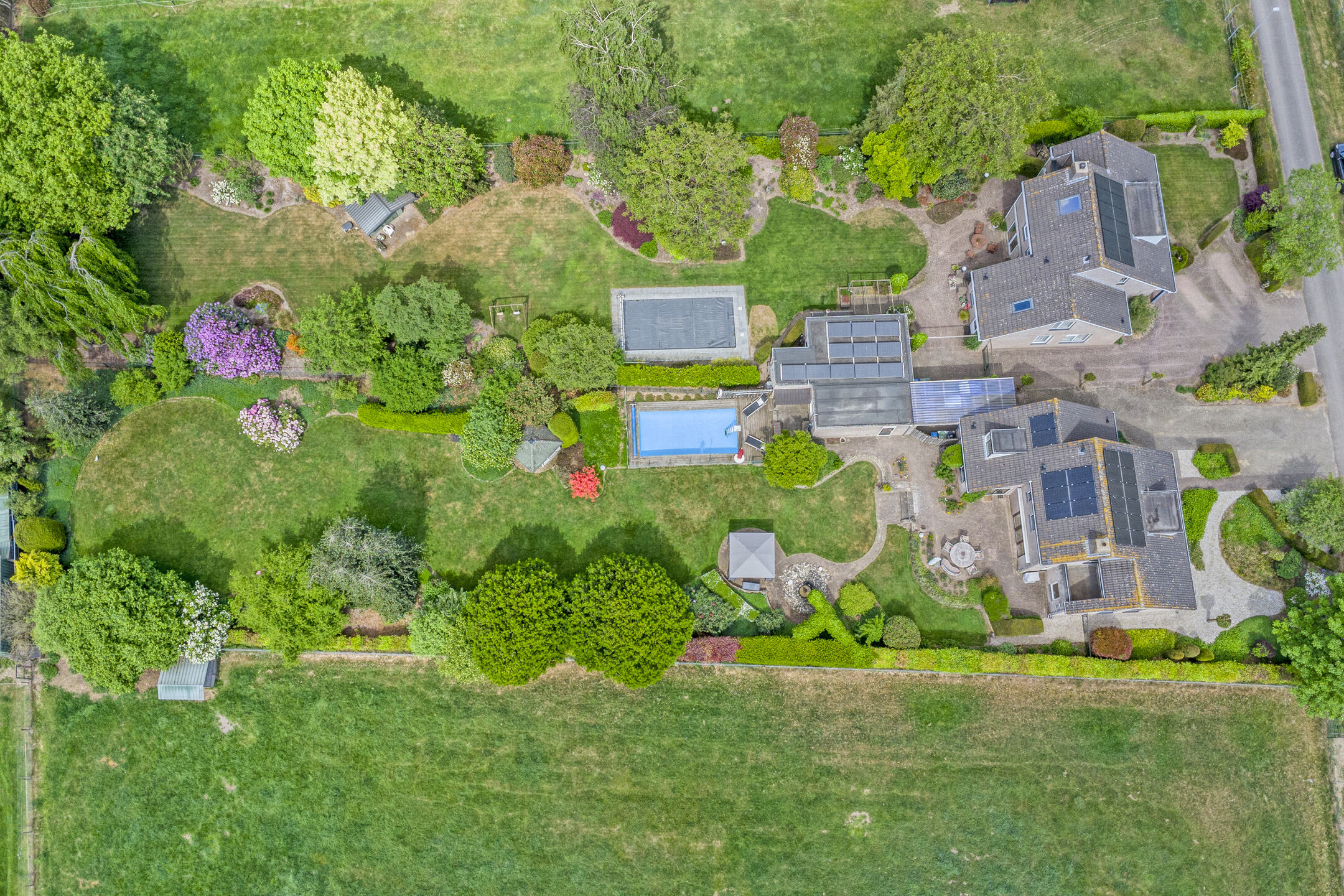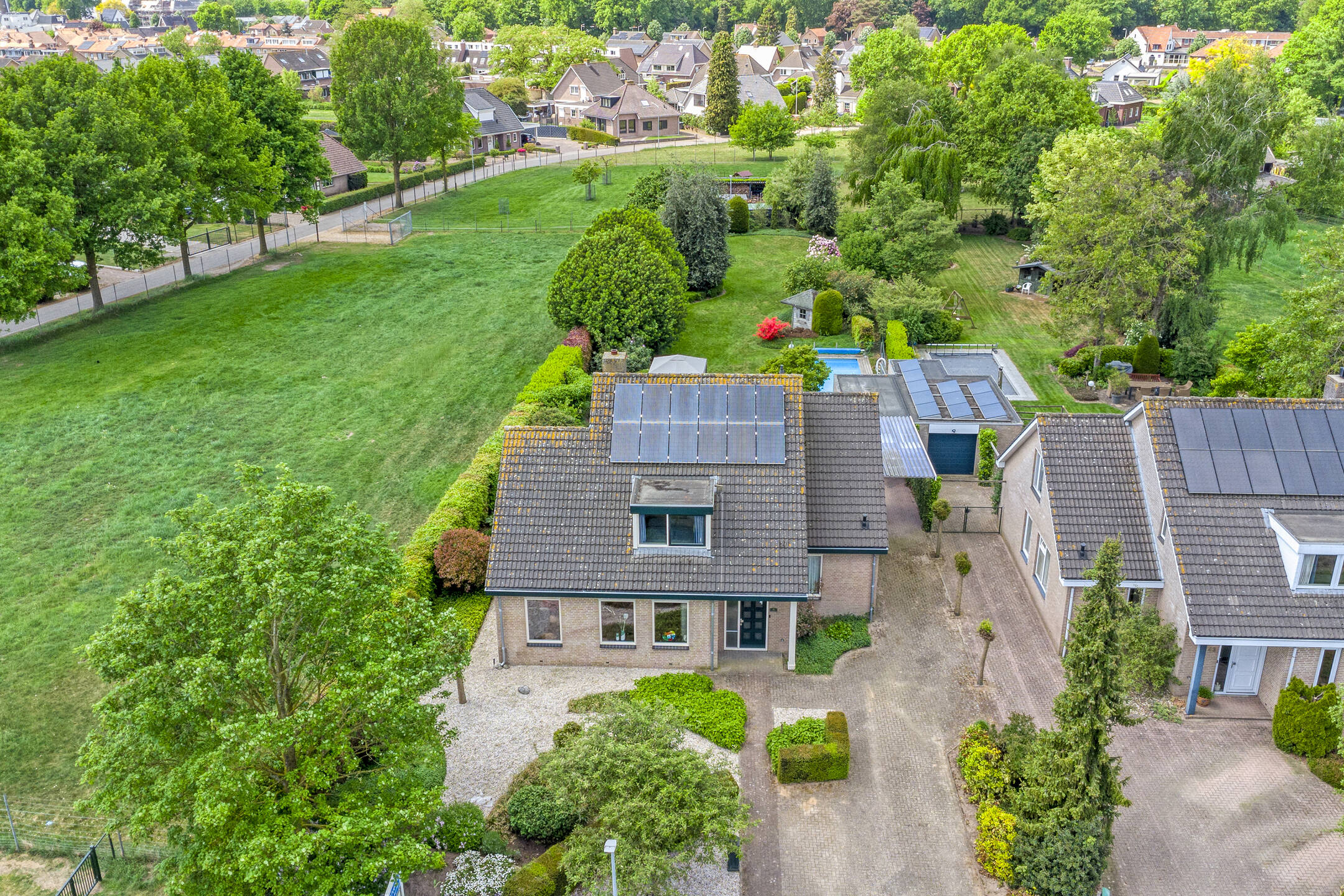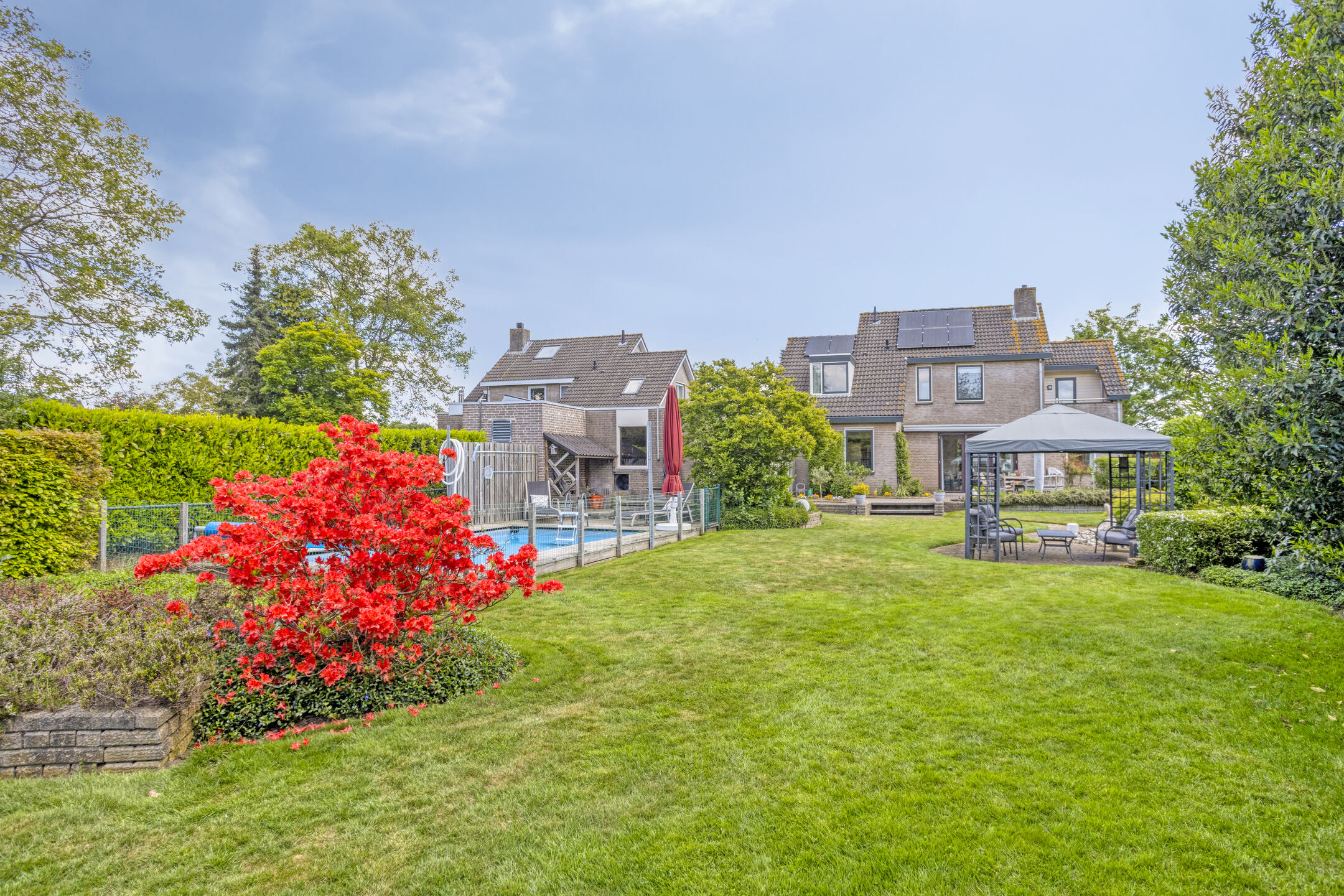 Rondom de woning ligt een fraai aangelegde tuin met diverse terrassen, volop privacy én een eigen verwarmd zwembad (warmtepomp) – een vakantiegevoel in je eigen achtertuin. De ruime oprit met carport biedt plek aan meerdere auto’s en is ideaal voor het stallen van een caravan of camper. De vrijstaande stenen garage (met elektra) en houten tuinhuis maken het geheel compleet.