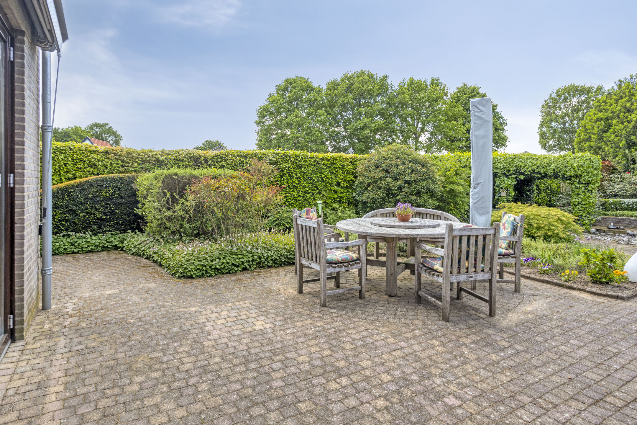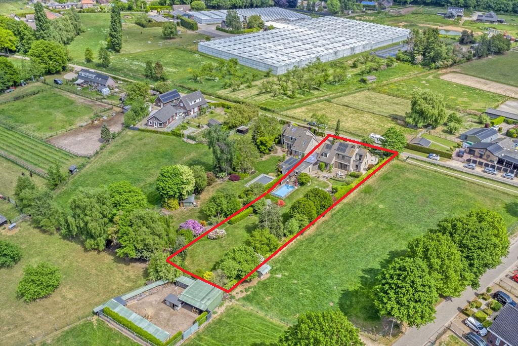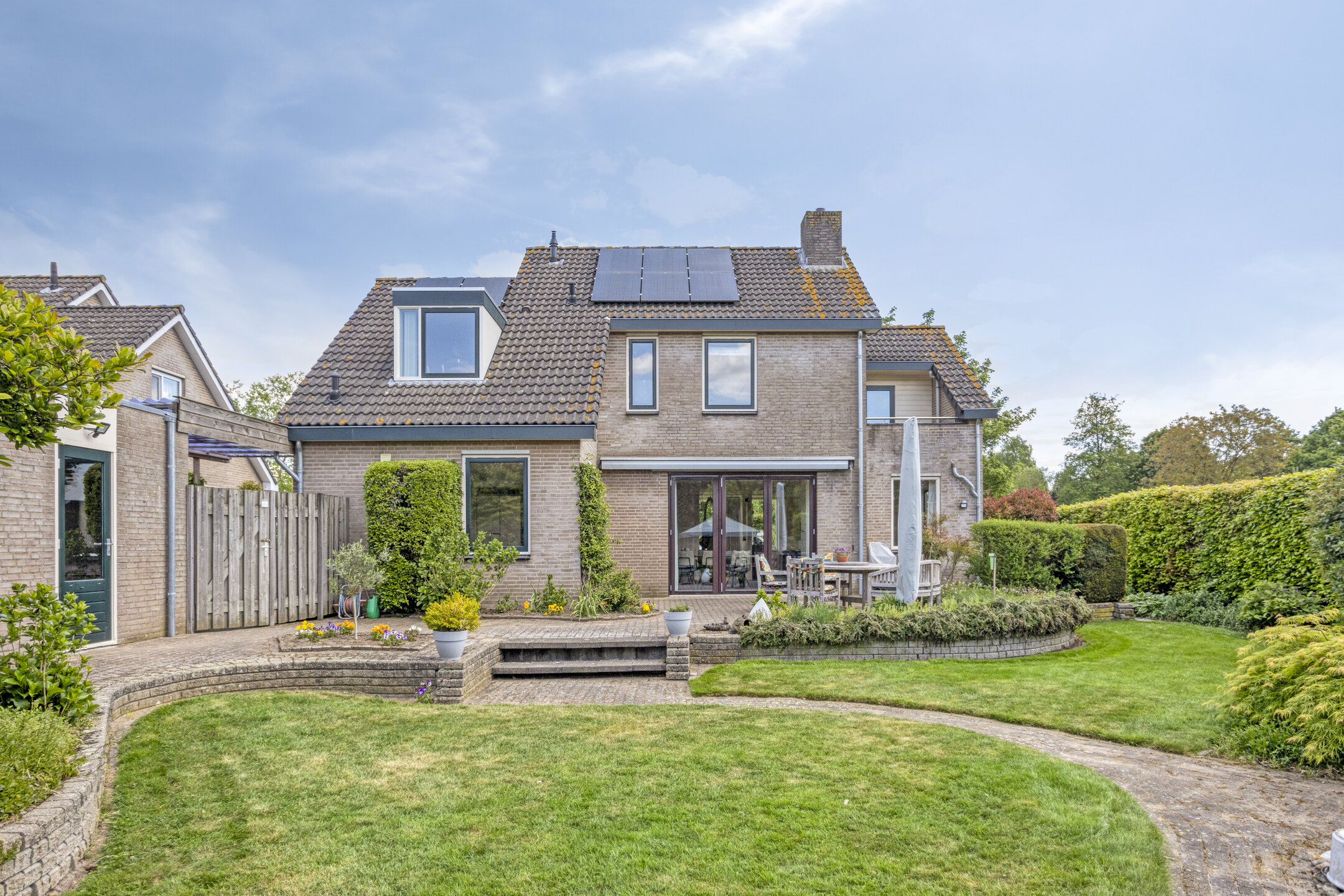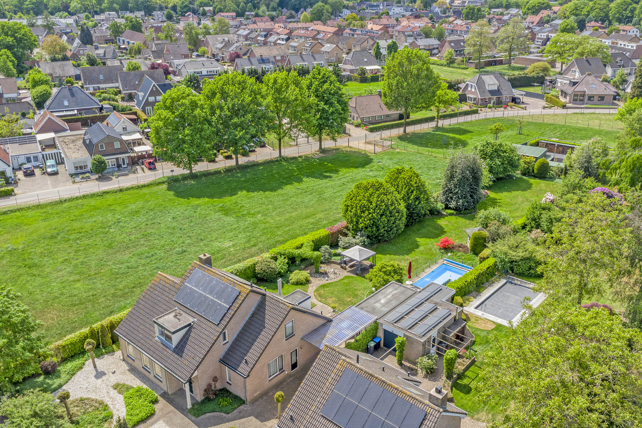 Rondom de woning ligt een fraai aangelegde tuin met diverse terrassen, volop privacy én een eigen verwarmd zwembad (warmtepomp) – een vakantiegevoel in je eigen achtertuin. De ruime oprit met carport biedt plek aan meerdere auto’s en is ideaal voor het stallen van een caravan of camper. De vrijstaande stenen garage (met elektra) en houten tuinhuis maken het geheel compleet.