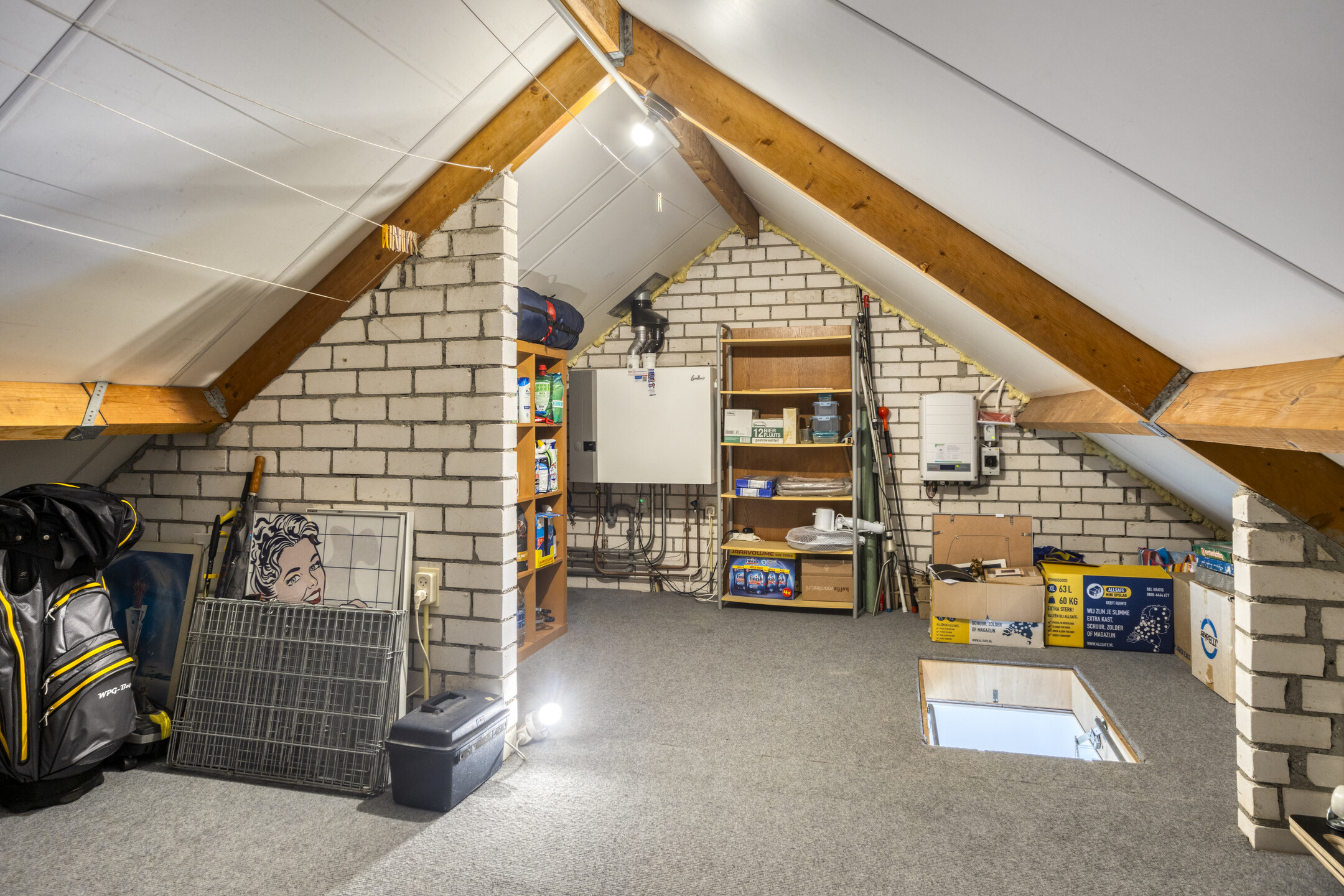 Via een vlizotrap bereik je de ruime vliering (stahoogte) met volop bergruimte. Tevens bevindt zich hier de cv-ketel (Nefit, 2007).