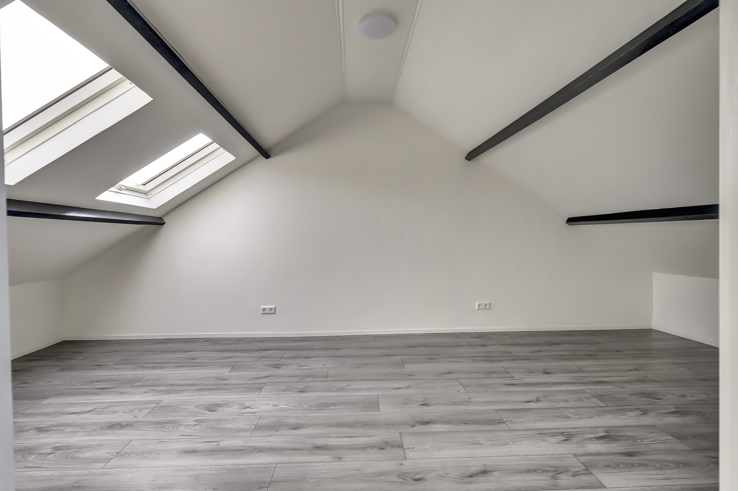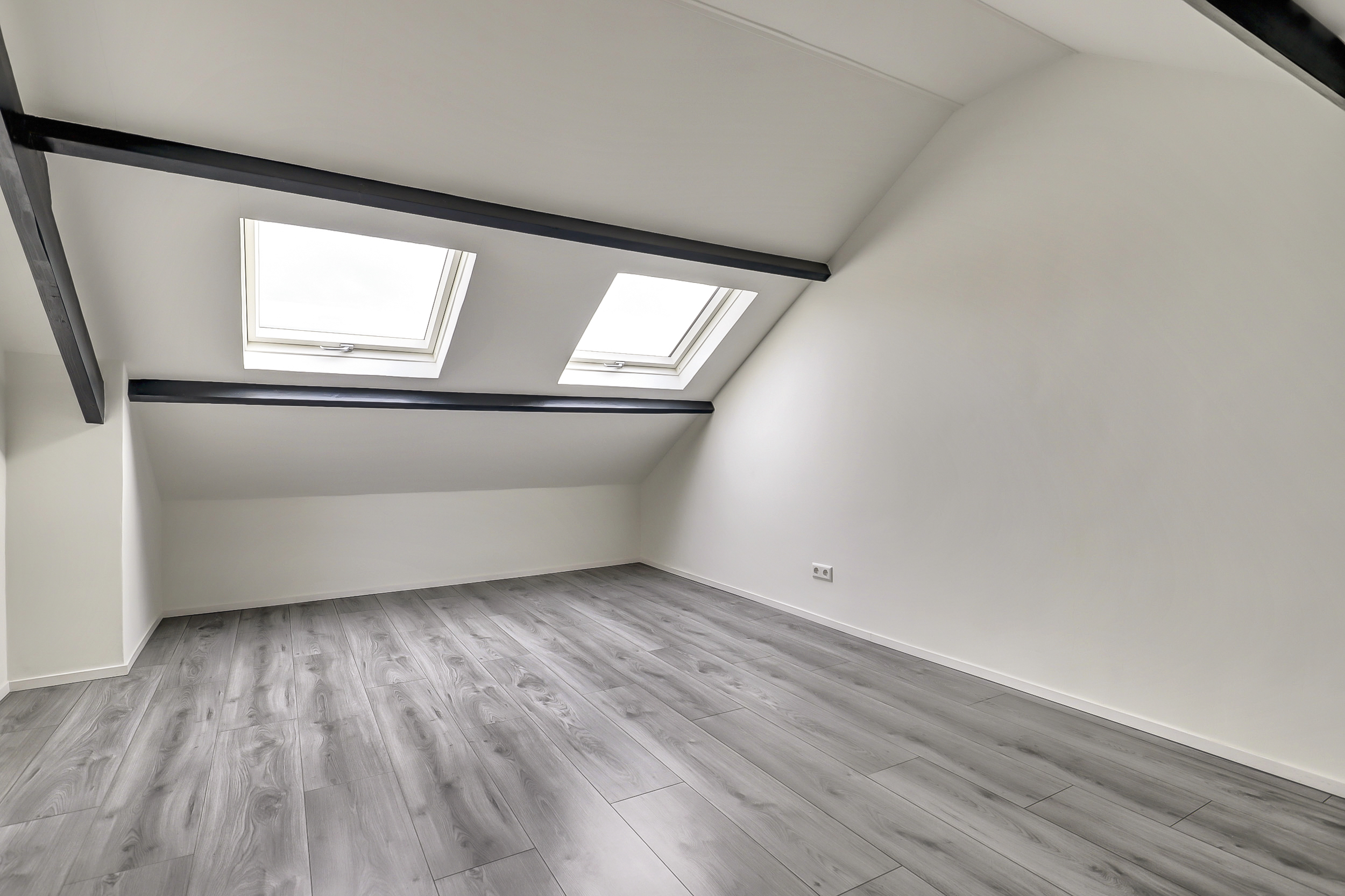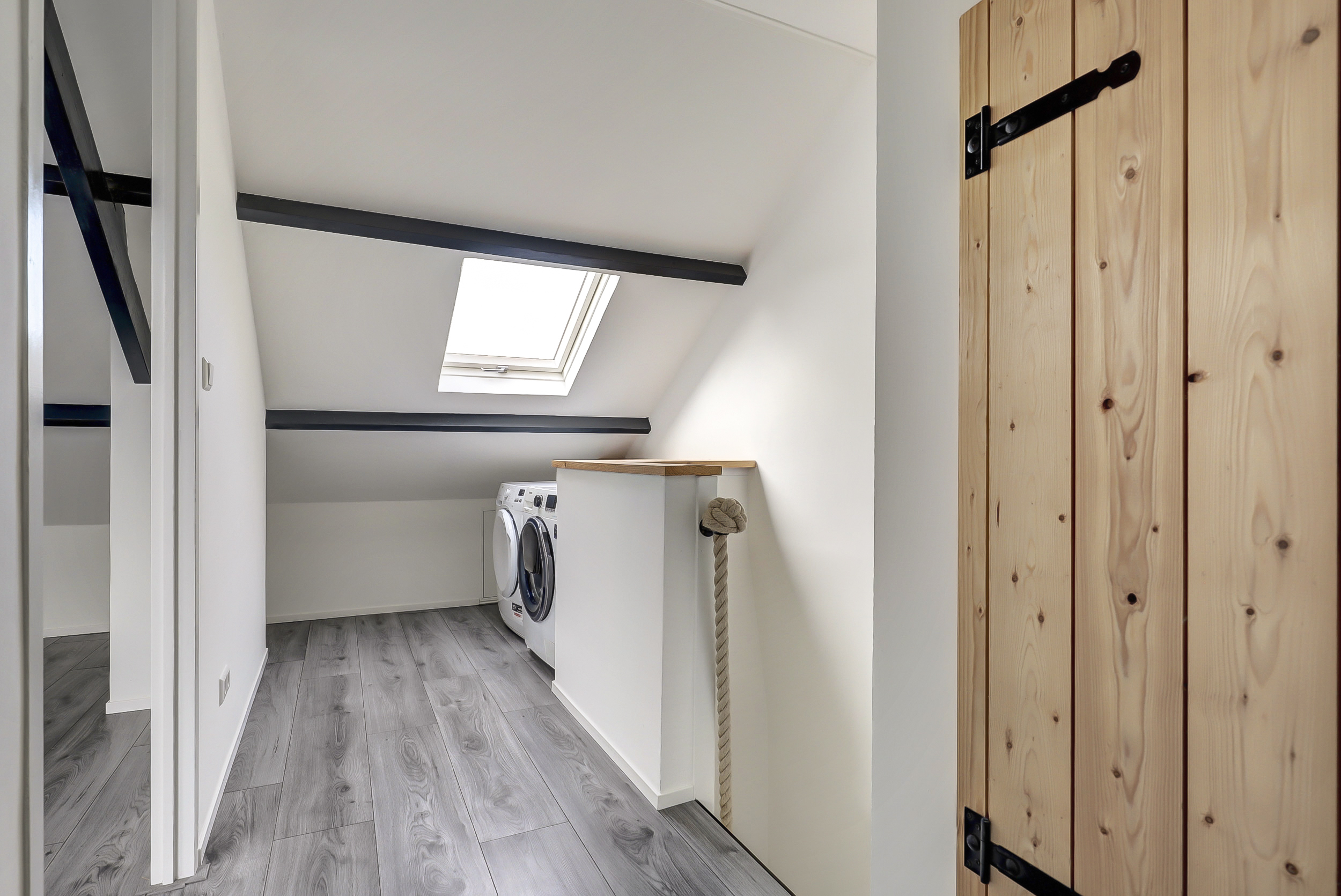 Via een vaste trap bereik je de tweede verdieping. Op de voorzolder vind je de cv-opstelling, dakraam en de aansluitingen voor wasmachine en droger. Daarnaast is hier een volwaardige extra kamer gerealiseerd met 2 dakramen, perfect als vierde slaapkamer, werkruimte of hobbykamer.