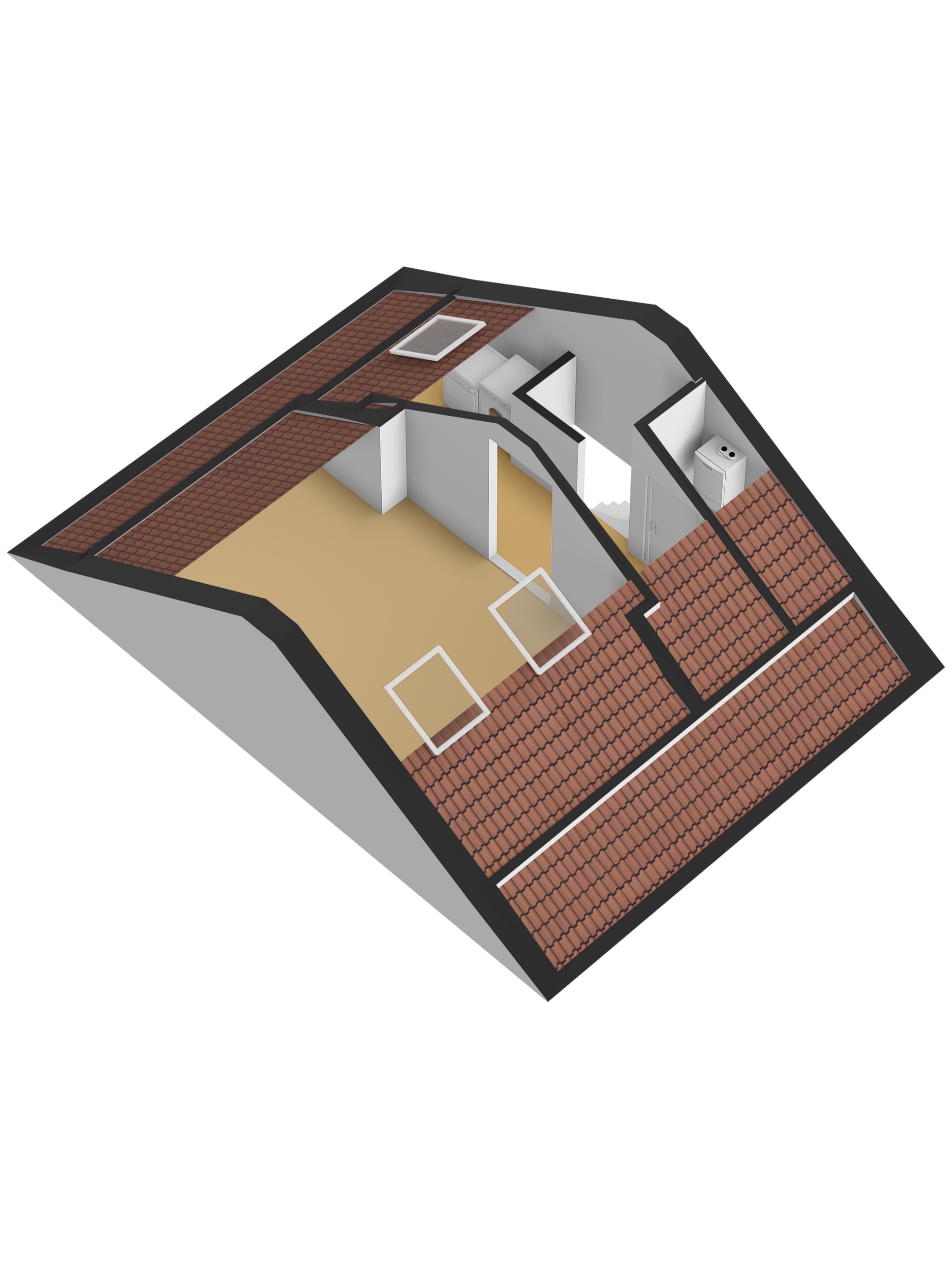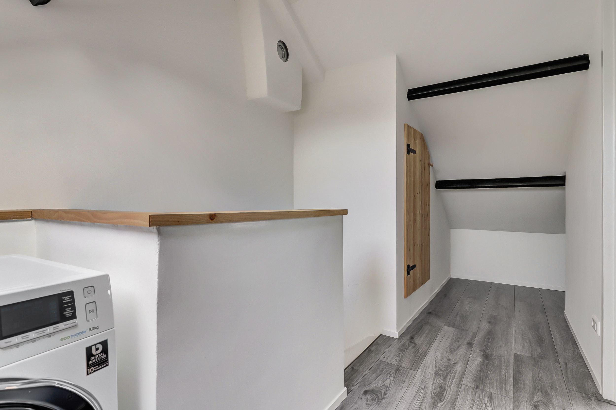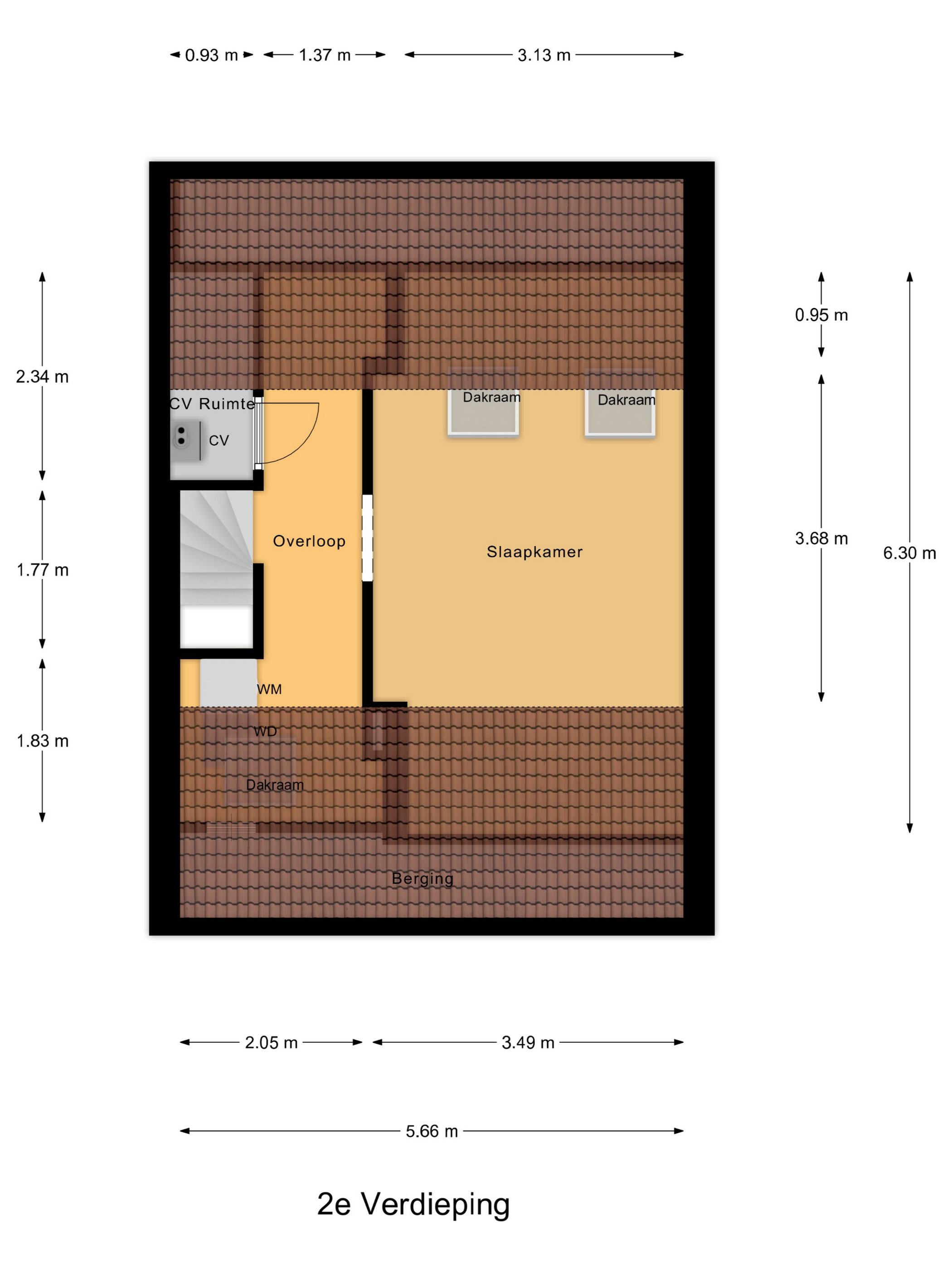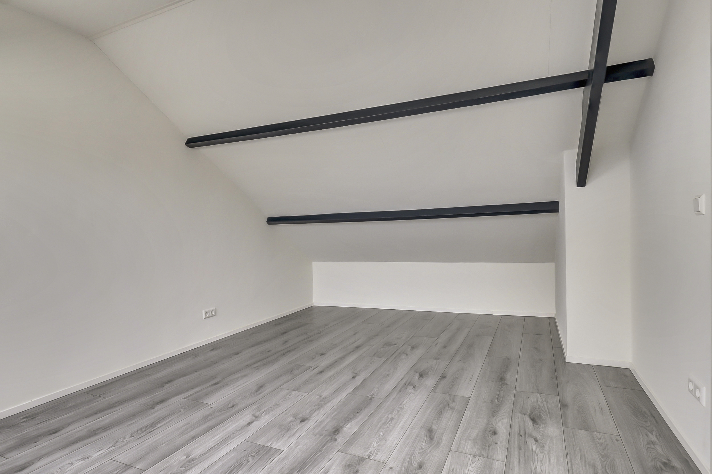 Via een vaste trap bereik je de tweede verdieping. Op de voorzolder vind je de cv-opstelling, dakraam en de aansluitingen voor wasmachine en droger. Daarnaast is hier een volwaardige extra kamer gerealiseerd met 2 dakramen, perfect als vierde slaapkamer, werkruimte of hobbykamer.
