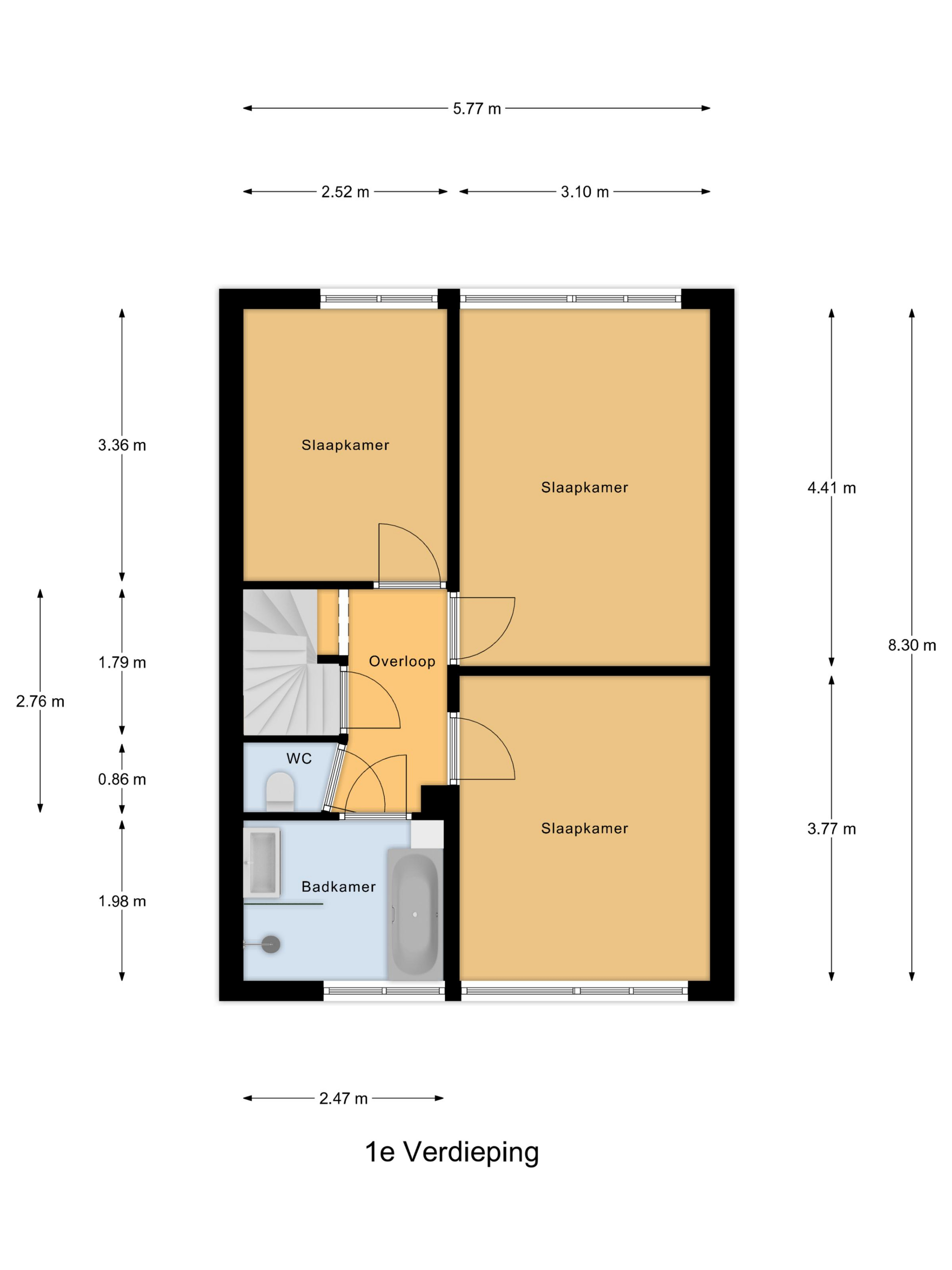 Op de eerste verdieping bevinden zich drie slaapkamers. De ruime slaapkamer aan de achterzijde is voorzien van airconditioning. De badkamer (2018) is modern uitgevoerd en beschikt over een ligbad, inloopdouche en wastafelmeubel. Extra comfortabel: een separaat toilet op deze verdieping.