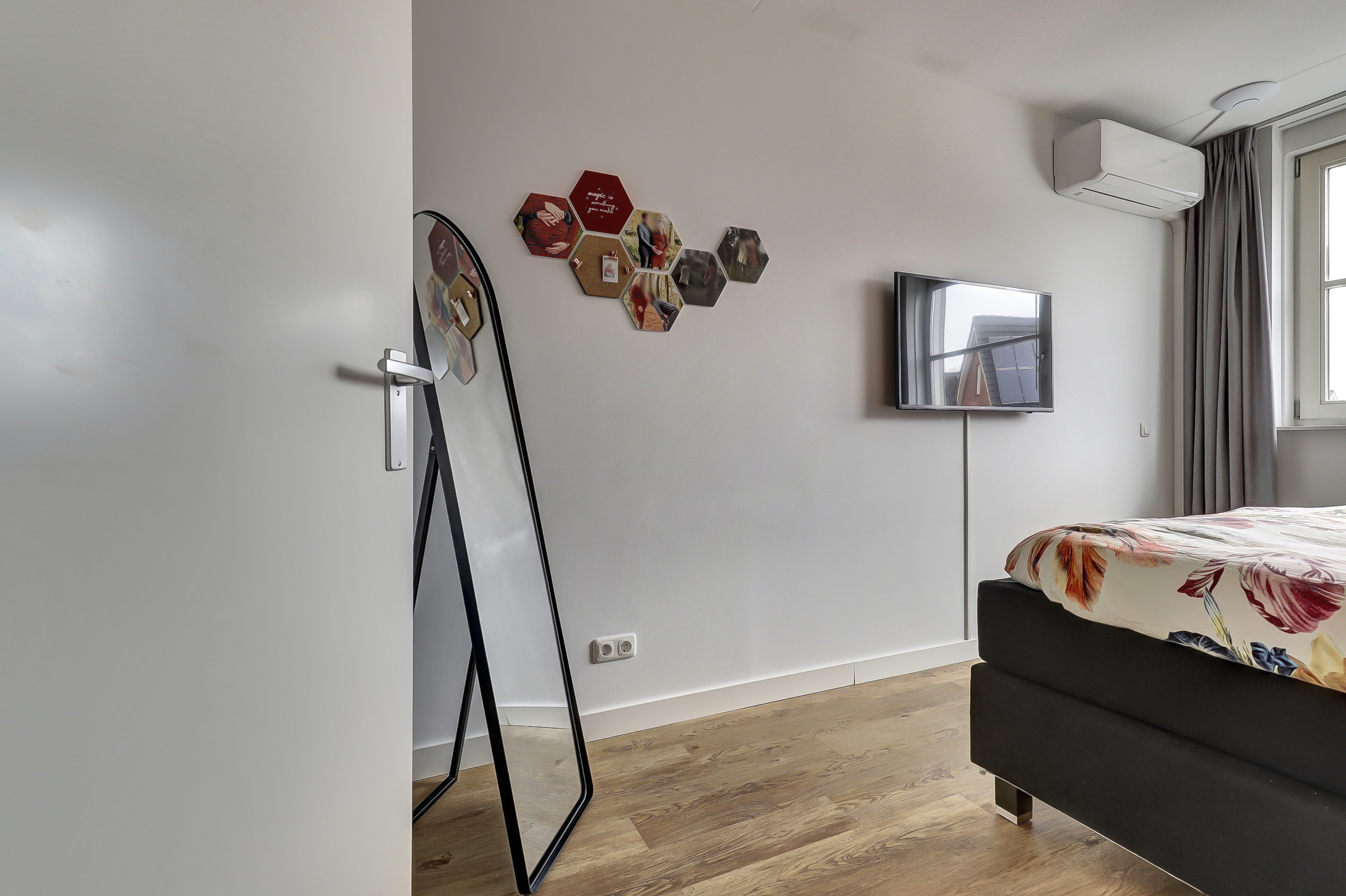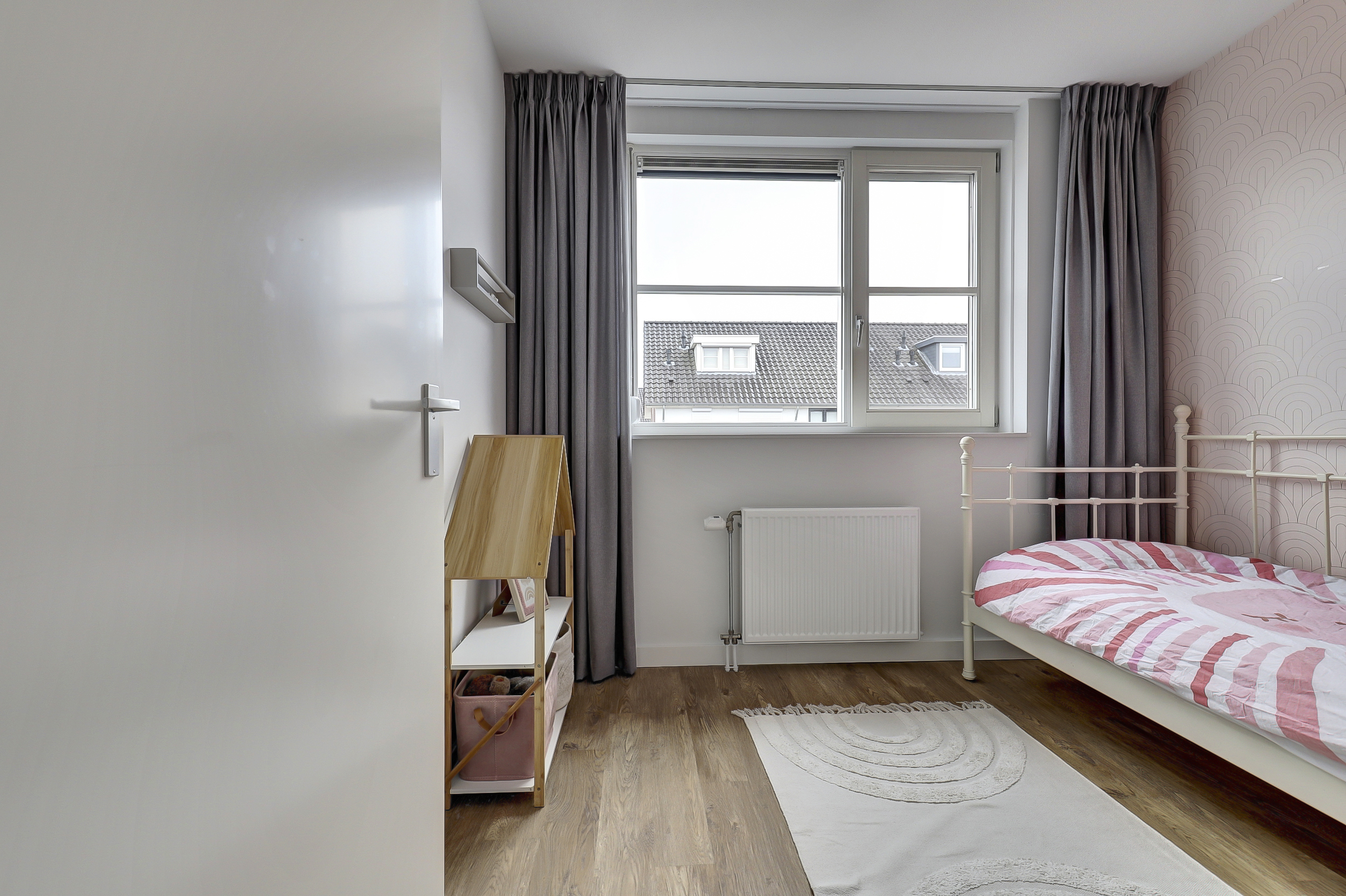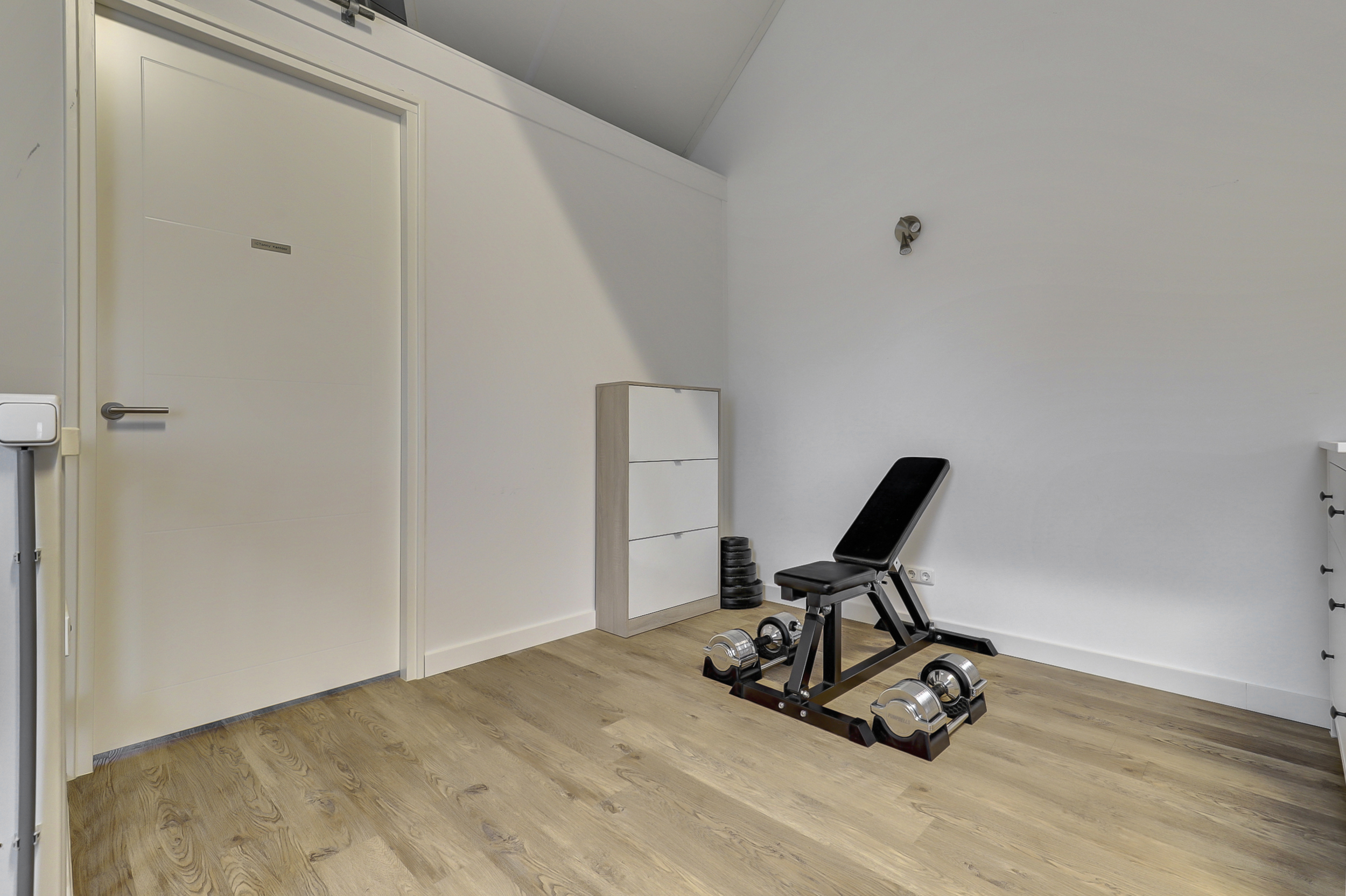 Zeer royale multifunctionele voorzolder en 4de slaapkamer. De voorzolder geeft veel mogelijkheden, heeft een mooie hoogte tot in de nok en is naar eigen wens nog verder in te delen/te gebruiken. Hier bevinden zich tevens de opstelplaats voor de Cv-ketel (Intergas HRE (2016), de mechanische ventilatie box en de zonneboiler), dakvenster met de verdonkeringsscherm en hor, luxe maatwerk kast met ruimte om de wasmachine en droger in te plaatsen en extra bergruimte op de vliering. De slaapkamer heeft een airco-unit, spotjes en dakvenster met de verdonkeringsscherm en hor. De gehele verdieping is voorzien van PVC-vloer, verwarming en houten draaikiepramen met horren.