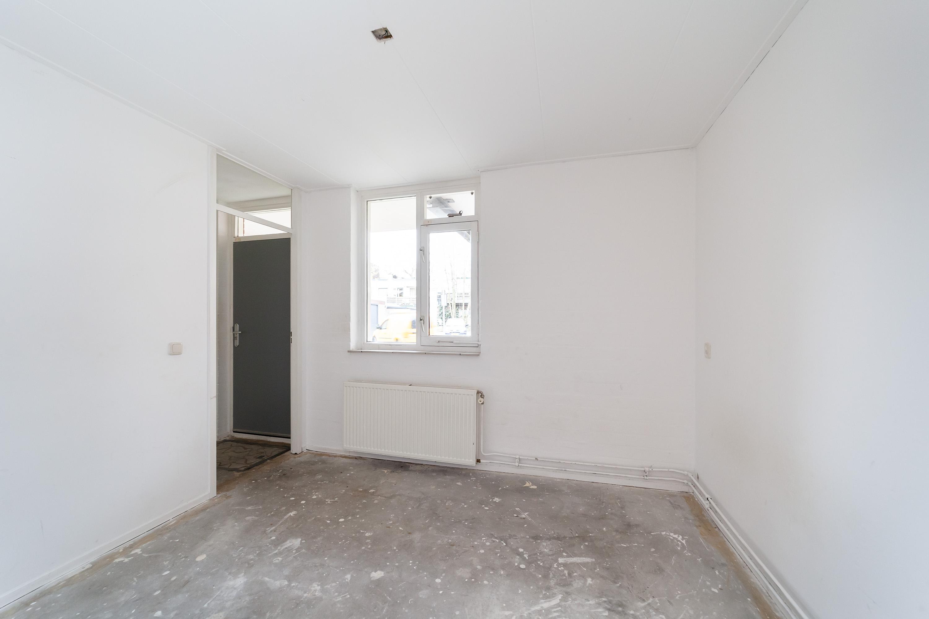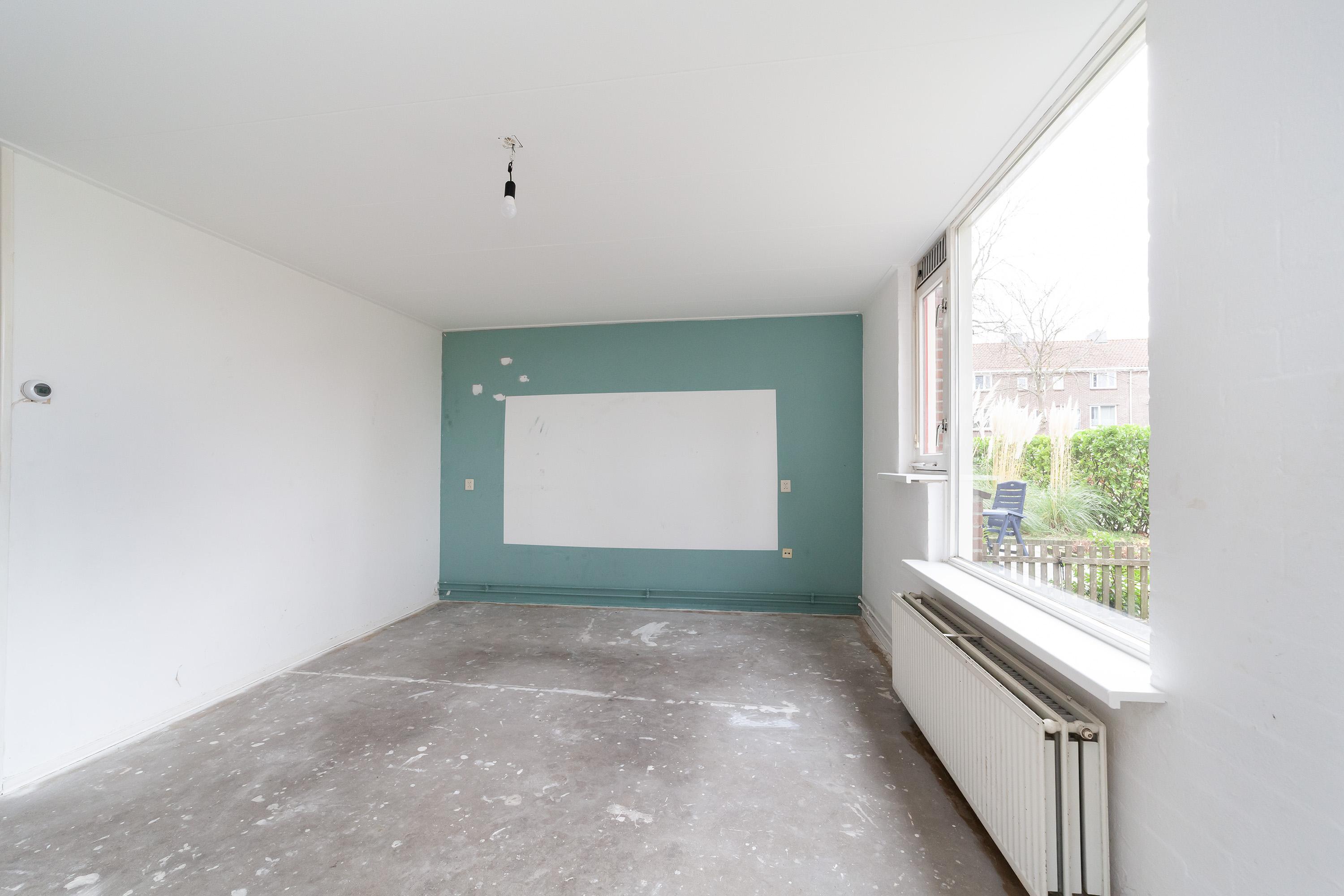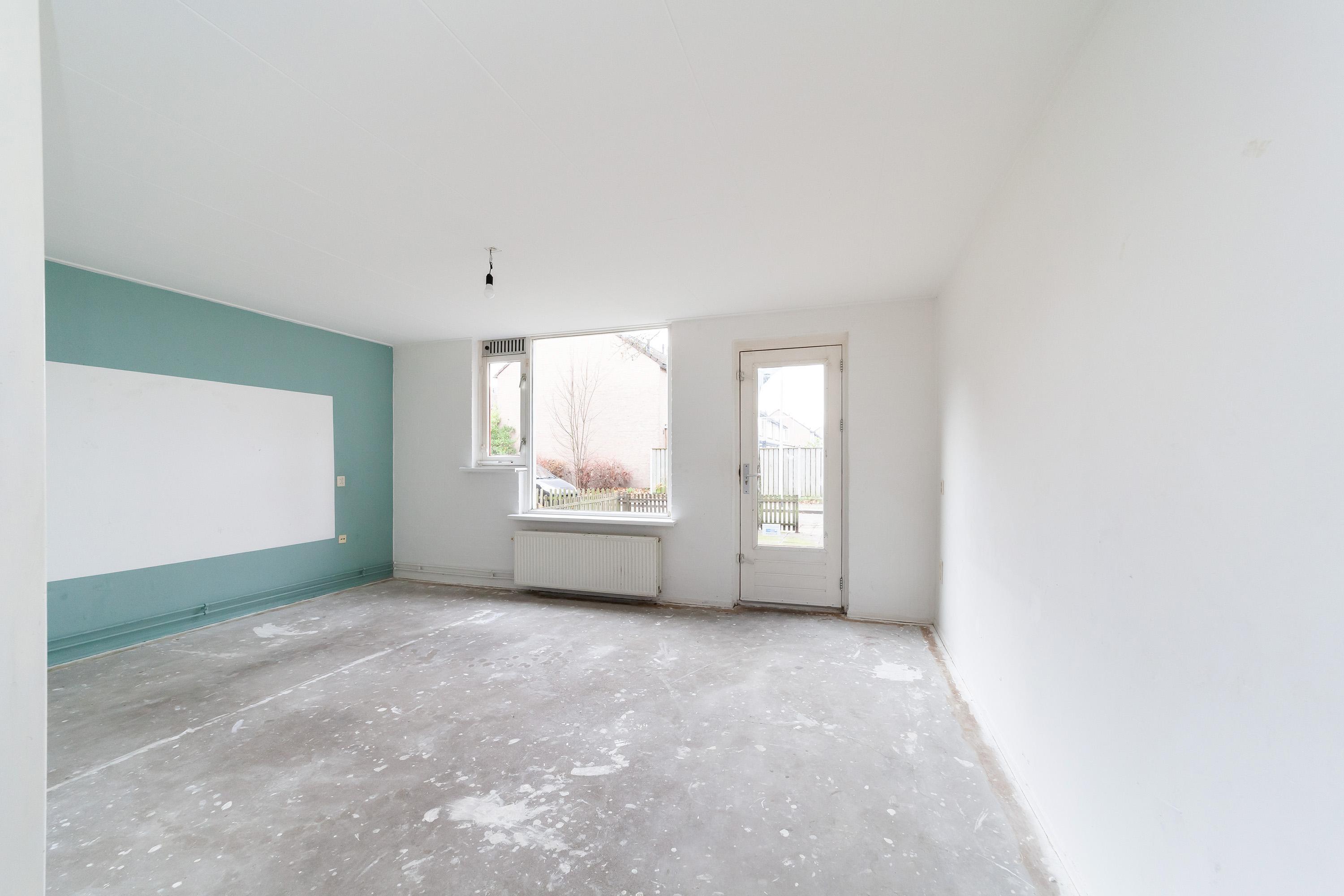 De woonkamer staat in open verbinding met de keuken en biedt genoeg ruimte voor een comfortabele hoekbank met tv-opstelling. Kies je voor een kleinere bank, dan kun je ook een fijne werkplek inrichten. Dankzij de grote ramen komt er veel daglicht binnen en via de loopdeur zet je eenvoudig de deur open om lekker naar de fijne tuin te gaan waar je uitzicht hebt op de straat.