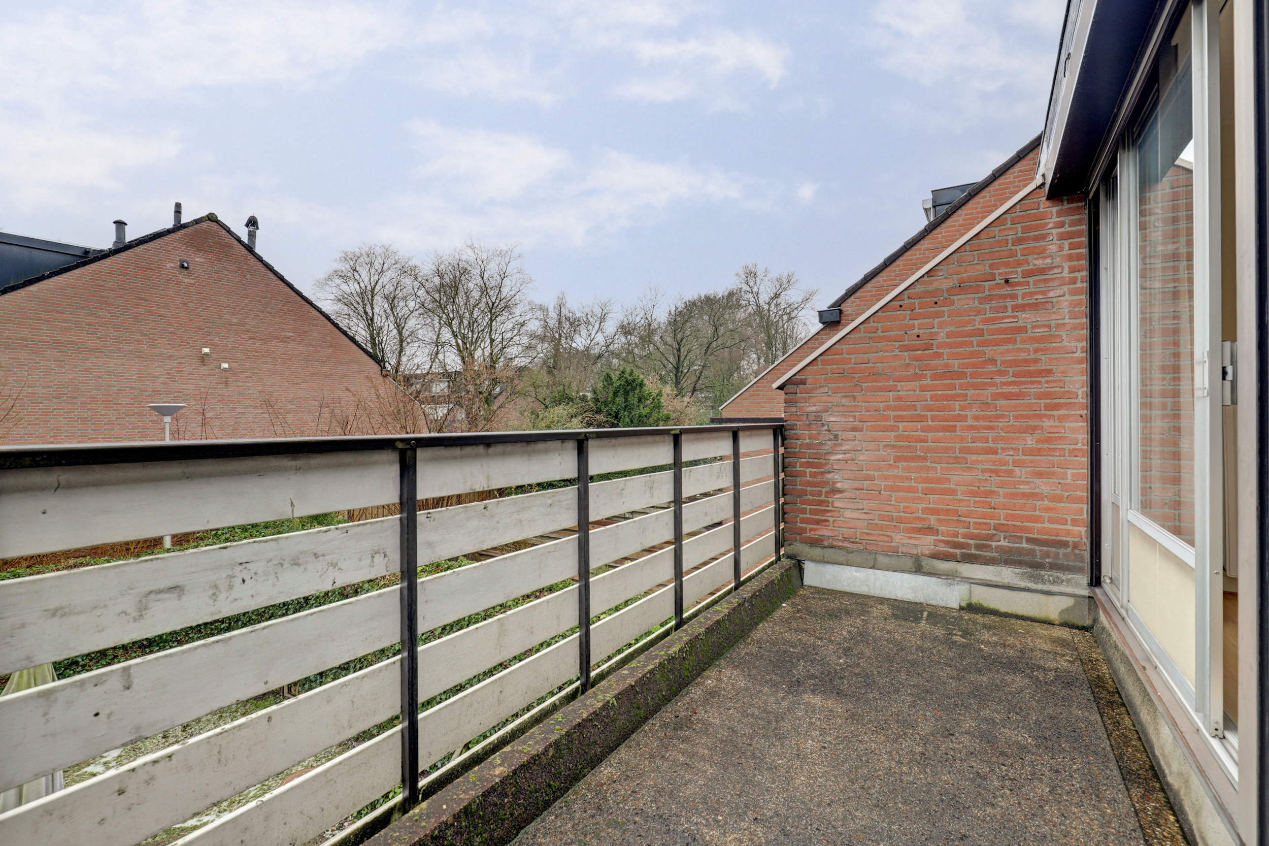 Op de eerste verdieping komen we uit op de overloop die toegang biedt tot 2 slaapkamers en de badkamer. De slaapkamers hebben een prettig formaat en zijn functioneel ingedeeld. De slaapkamer aan de achterzijde heeft toegang tot het balkon, gelegen op het zuiden. De badkamer is compleet uitgevoerd met een douche, ligbad, wastafel en toilet.