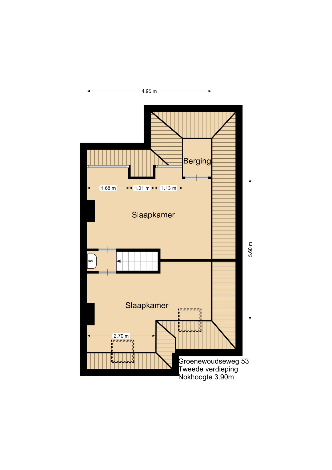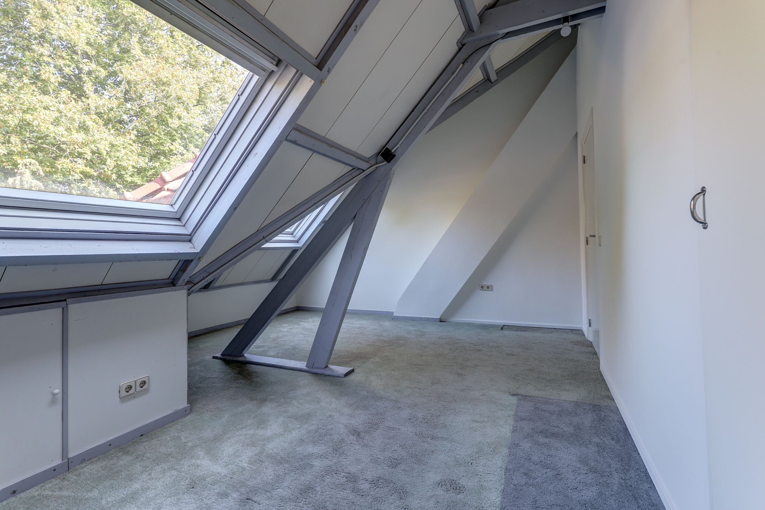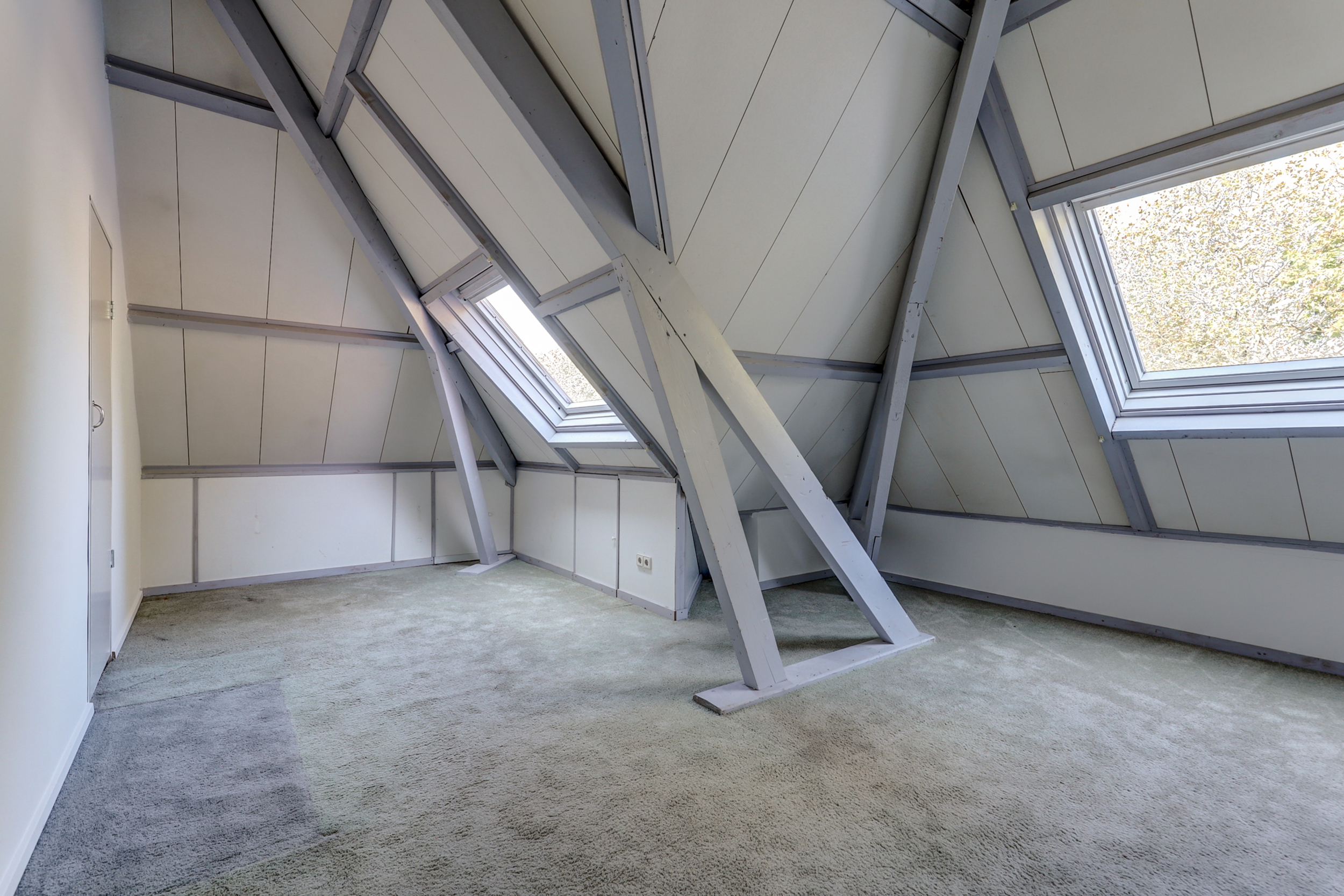 Een vaste trap leidt naar nog eens twee slaapkamers, met aan de voorzijde dakramen en aan de achterzijde dakkapellen.
