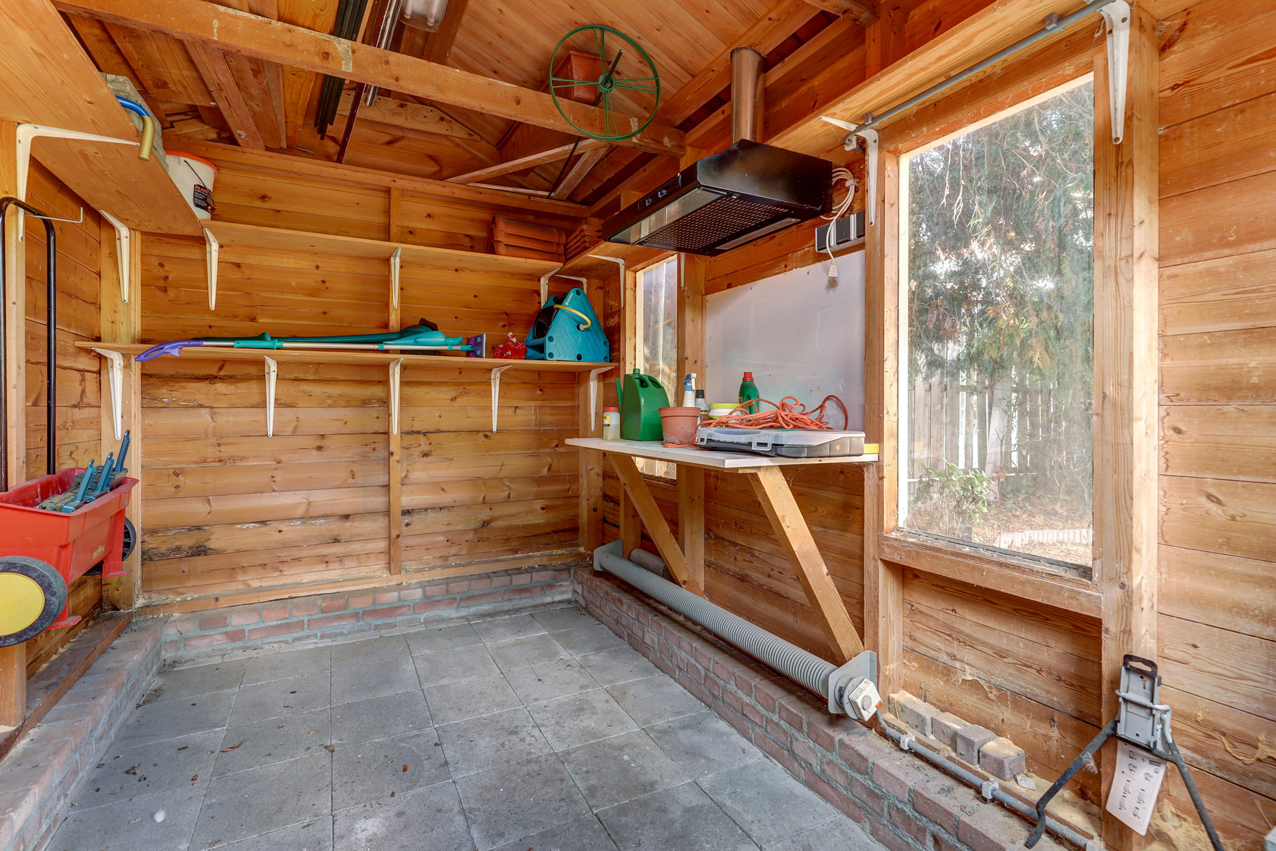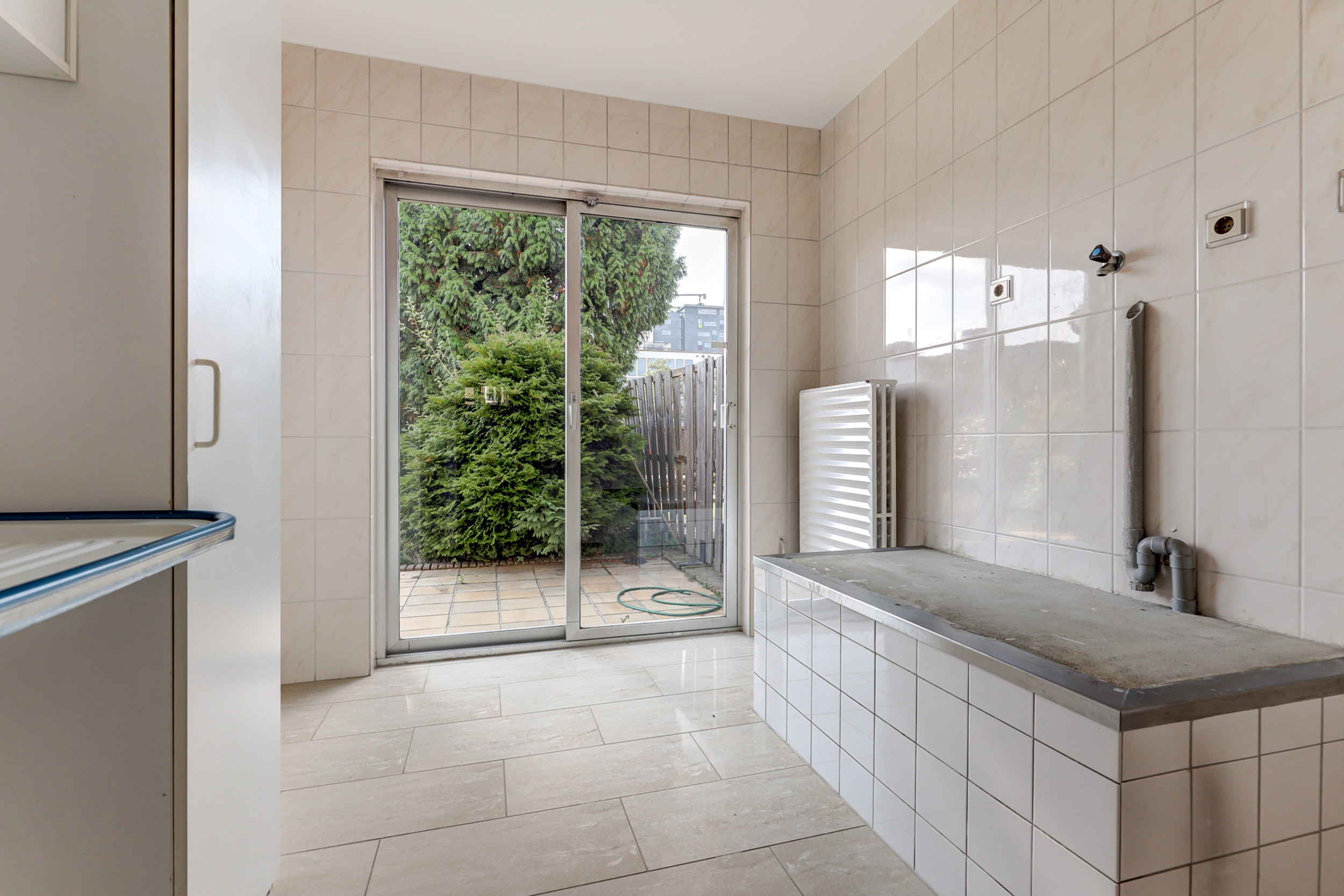 De tuin is een echte troef: diep, zonnig en gelegen op het zuiden. Hier zit je beschut en rustig, terwijl je binnen enkele minuten in het centrum bent. De tuin is keurig aangelegd, beschikt over een houten schuur en een achterom.
