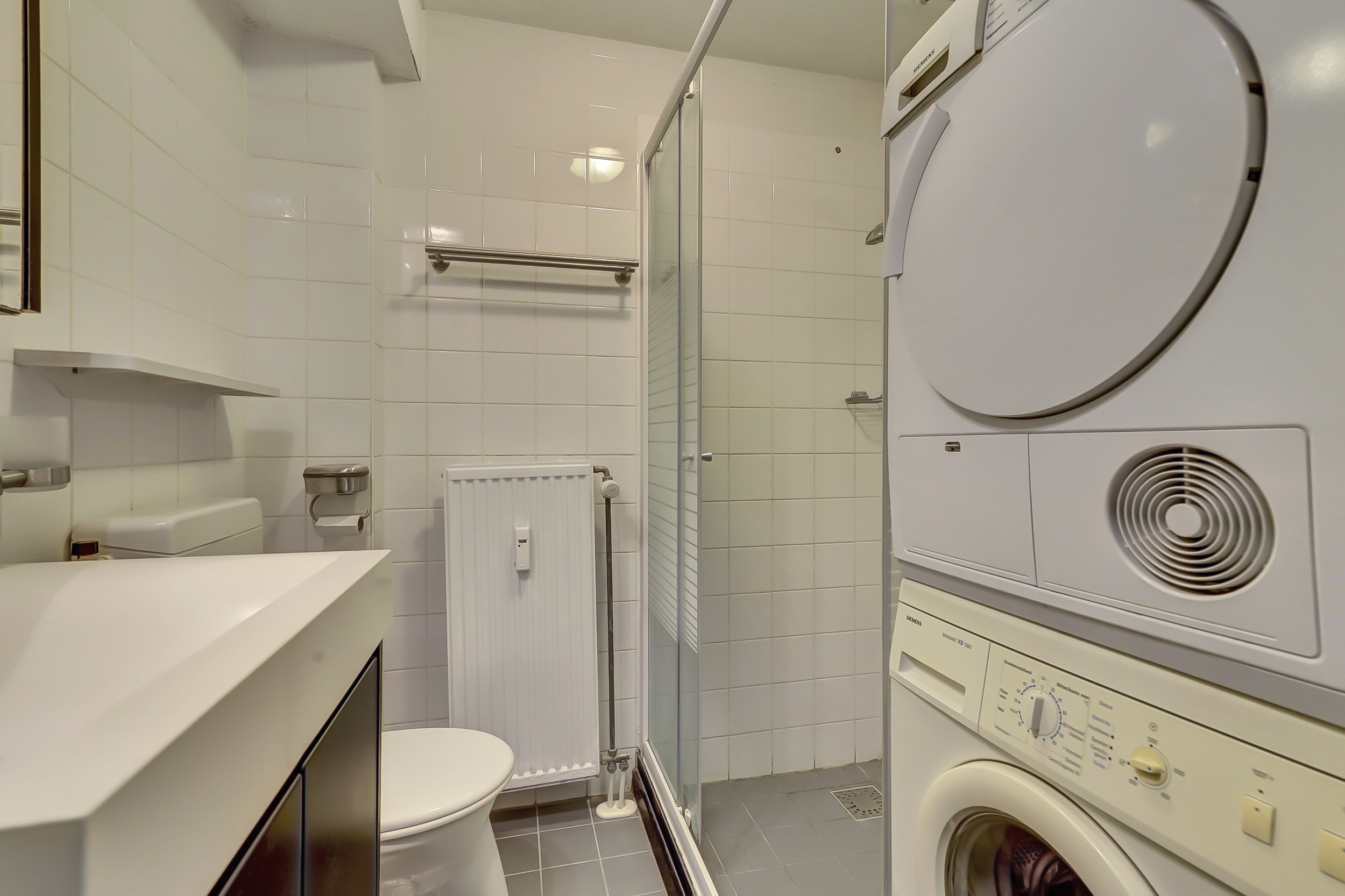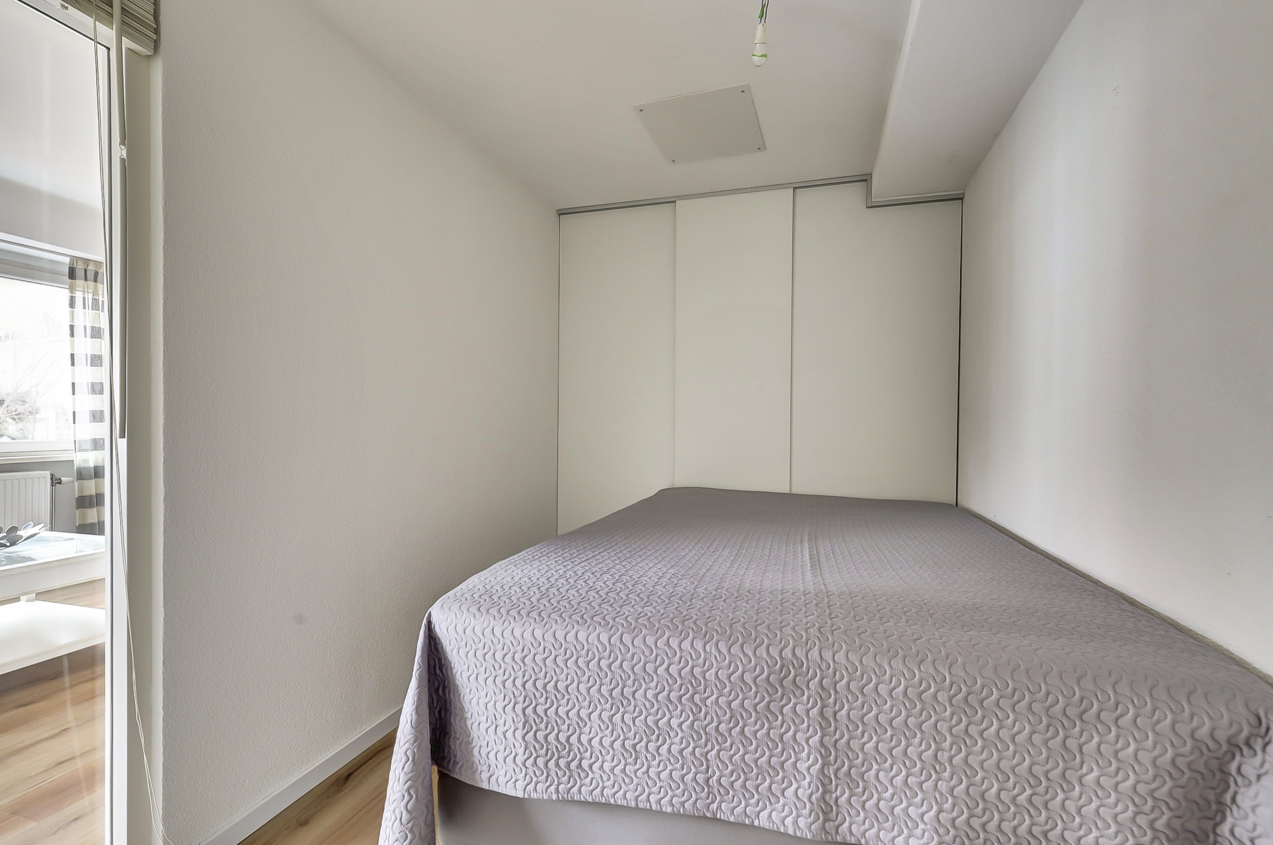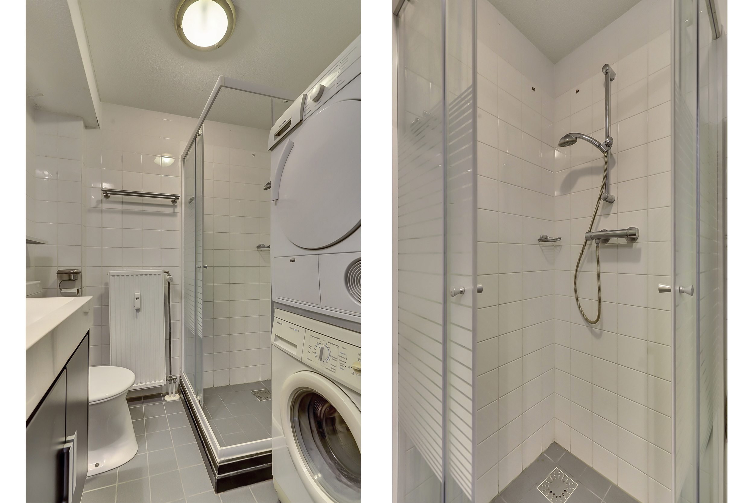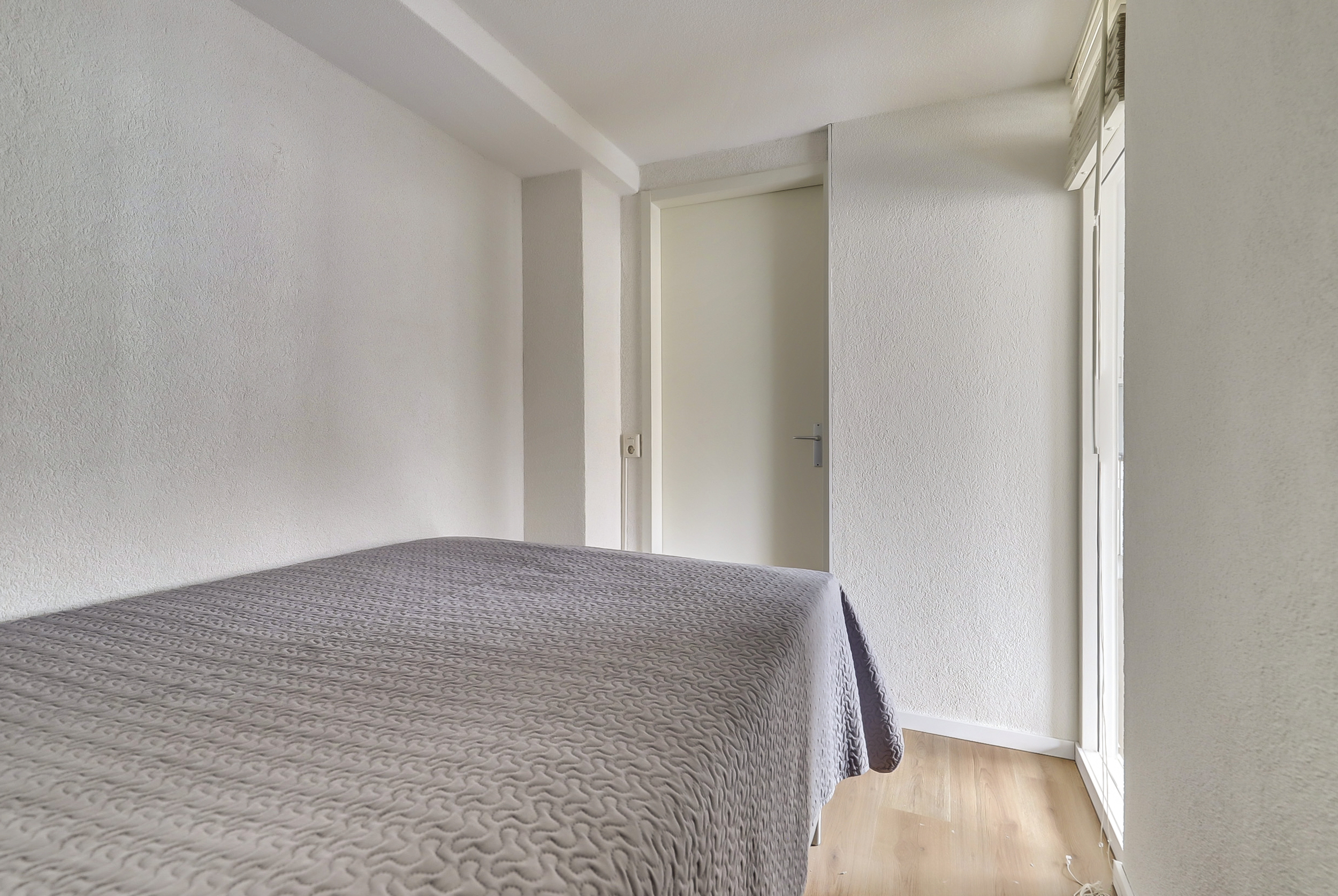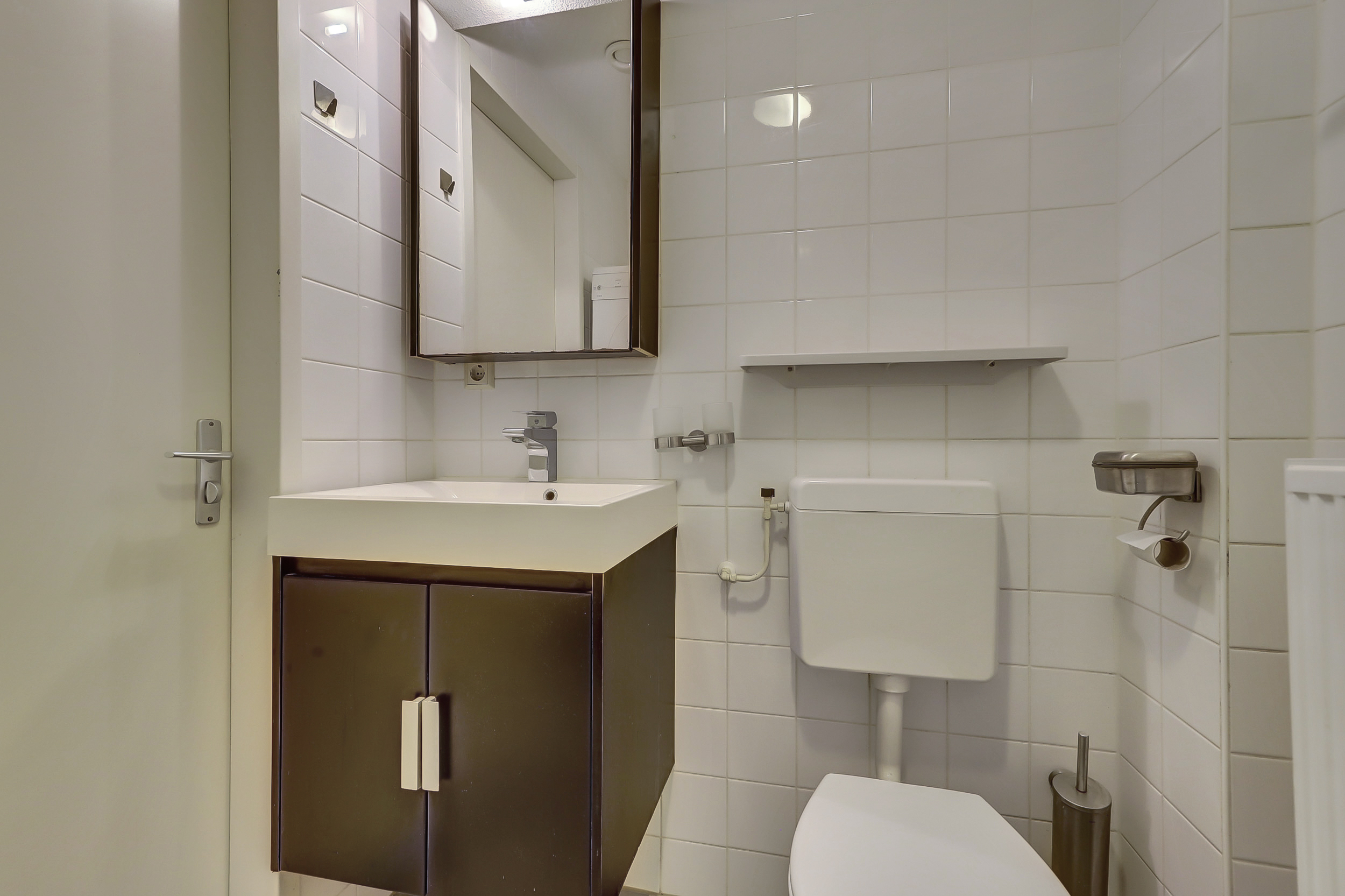 De slaapkamer biedt ruimte voor een volwaardig bed en kastruimte, en grenst aan de rustige kant van het gebouw. Badkamer en toilet zijn gescheiden en compact uitgevoerd. Verder beschik je over een gedeeld inpandige berging op de tweede verdieping.