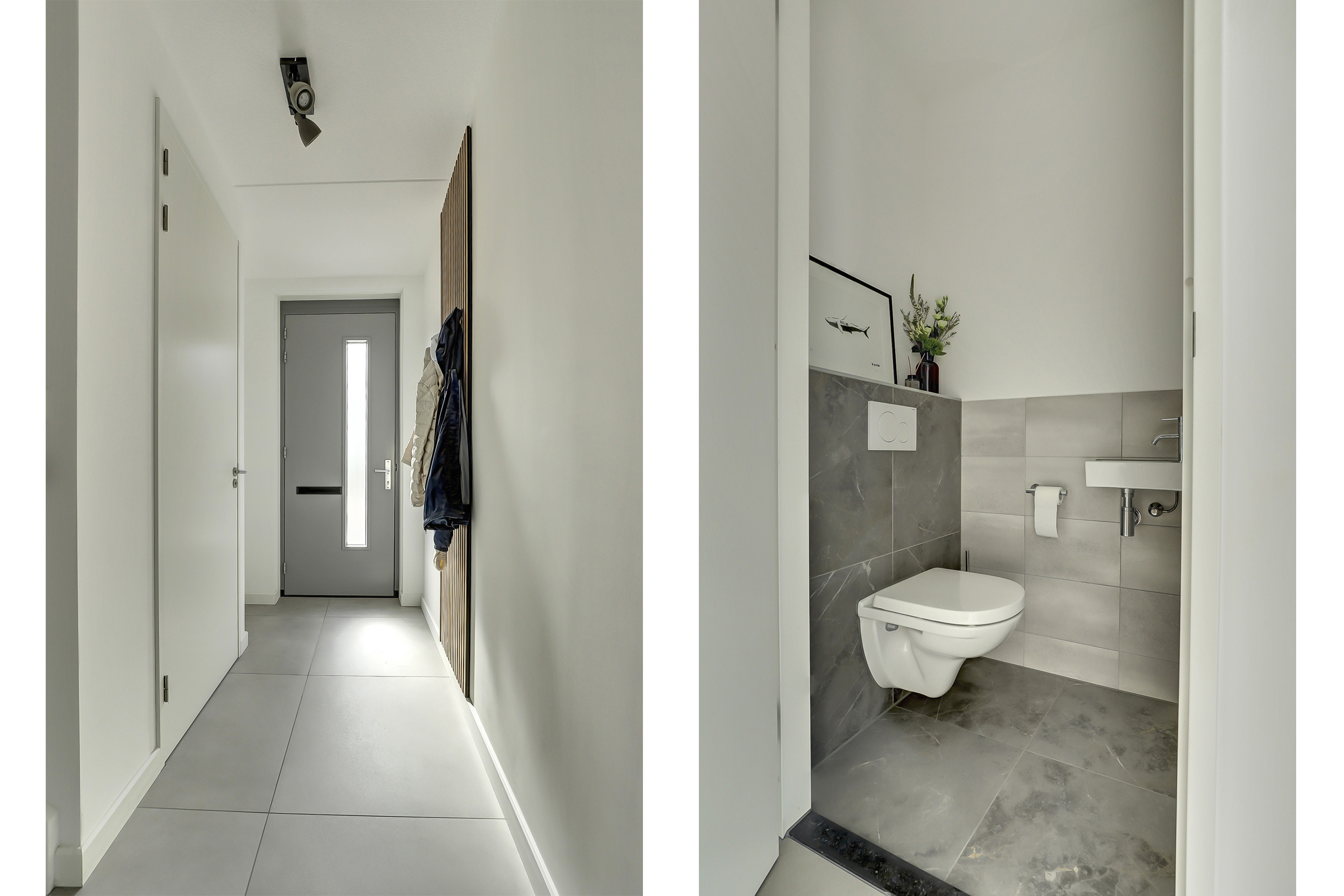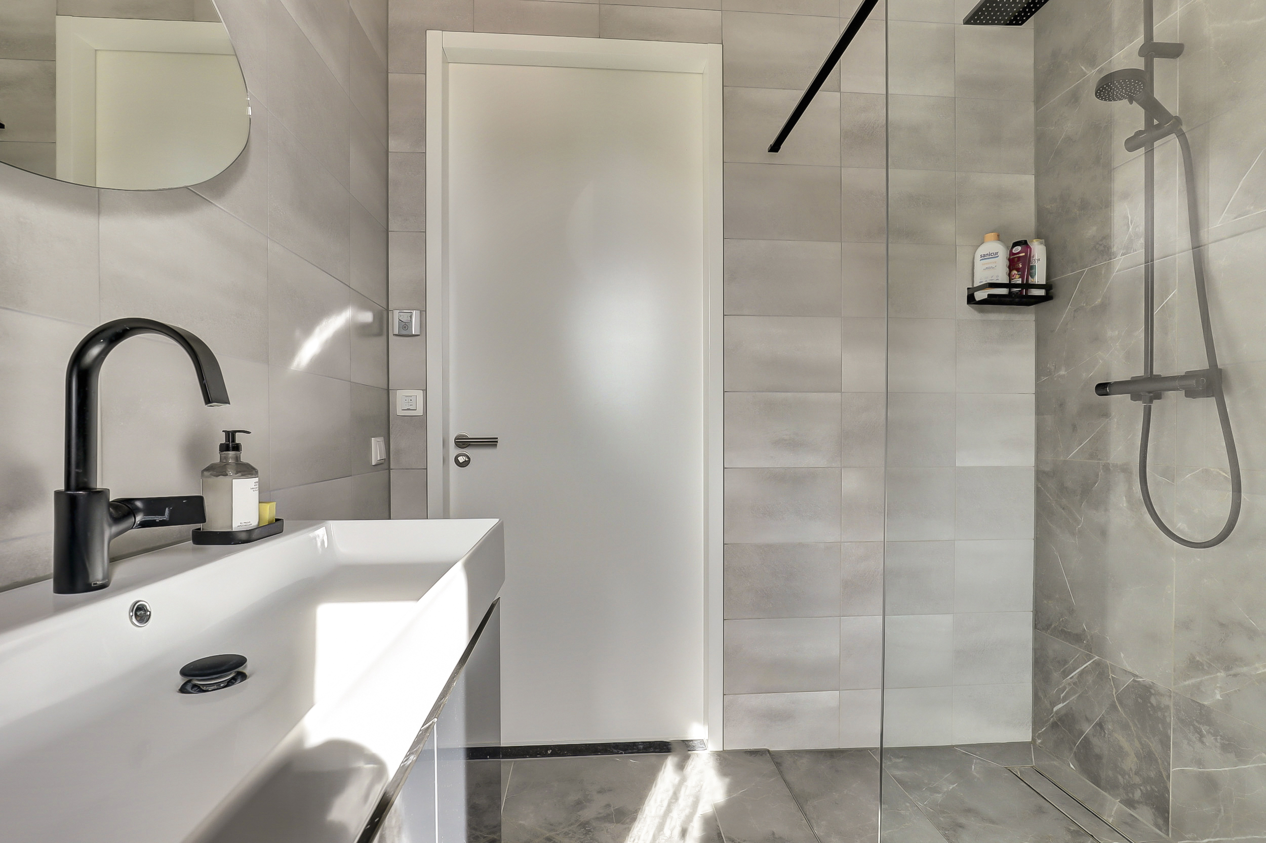 Op de eerste verdieping vind je twee ruime slaapkamers en een strakke badkamer met inloopdouche, wastafelmeubel en toilet. Wil je meer ruimte? Het realiseren van een derde slaapkamer is eenvoudig mogelijk.