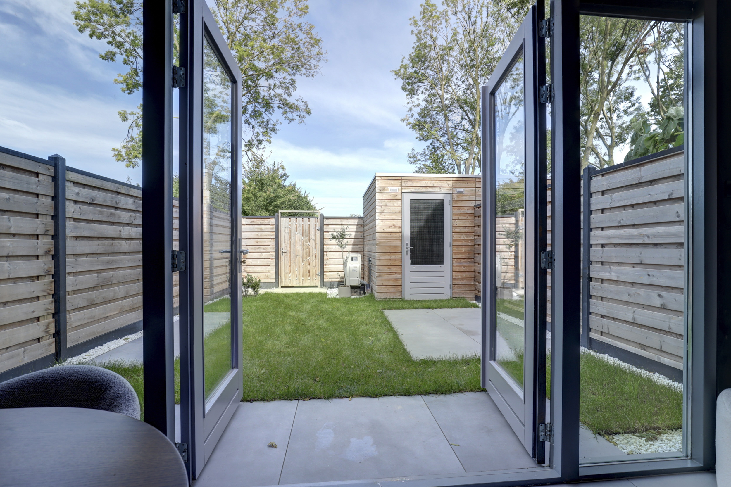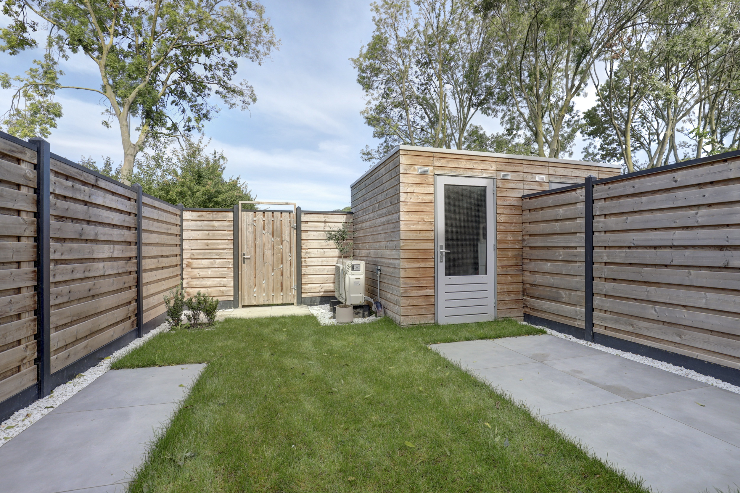 De achtertuin is fraai aangelegd en praktisch ingericht, met een zonnige ligging en veel privacy doordat je geen directe achterburen hebt. Met een terras, groen en een vrijstaande houten berging met elektra is dit een heerlijke plek om buiten te genieten. Er is bovendien een achterom aanwezig.