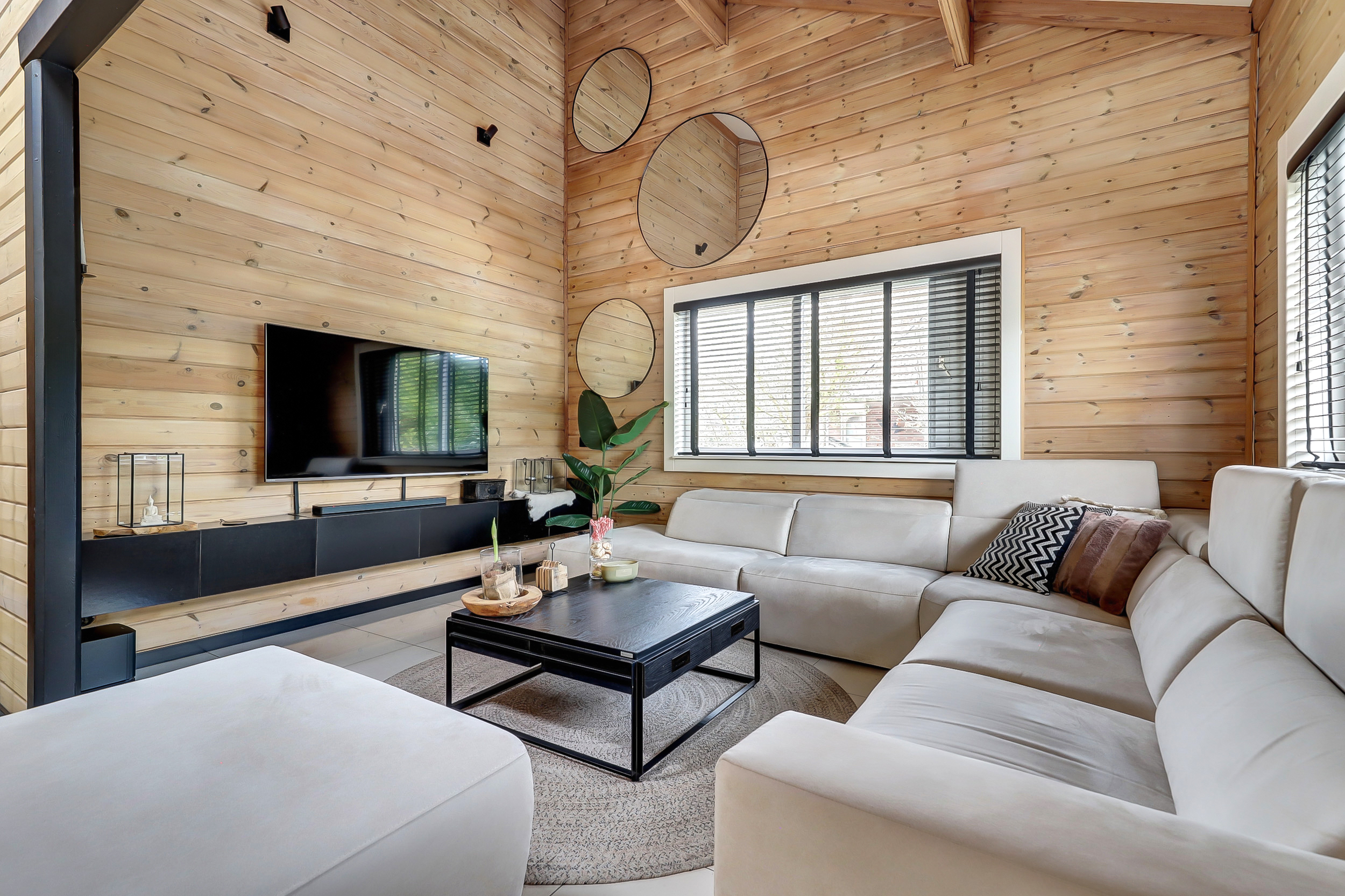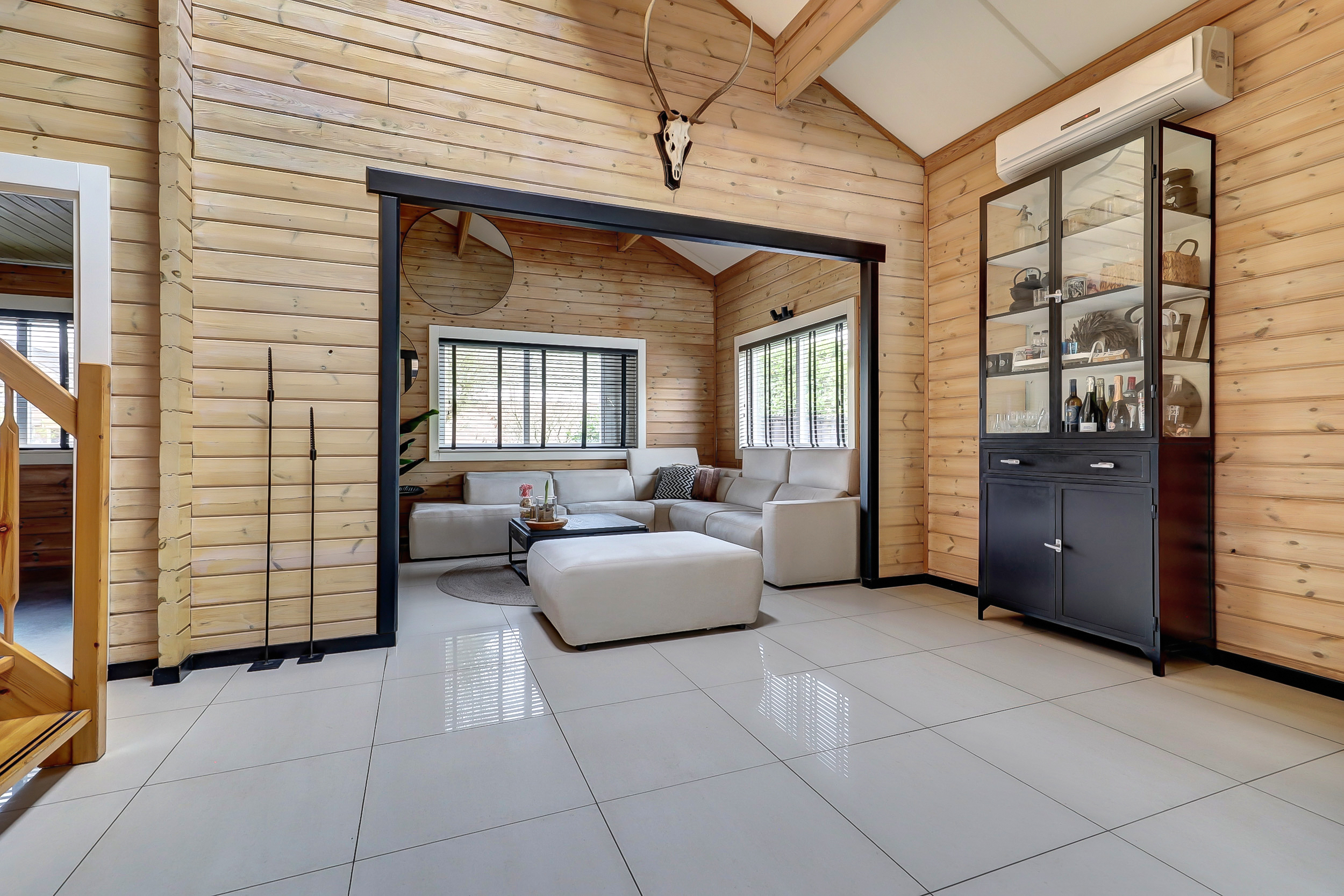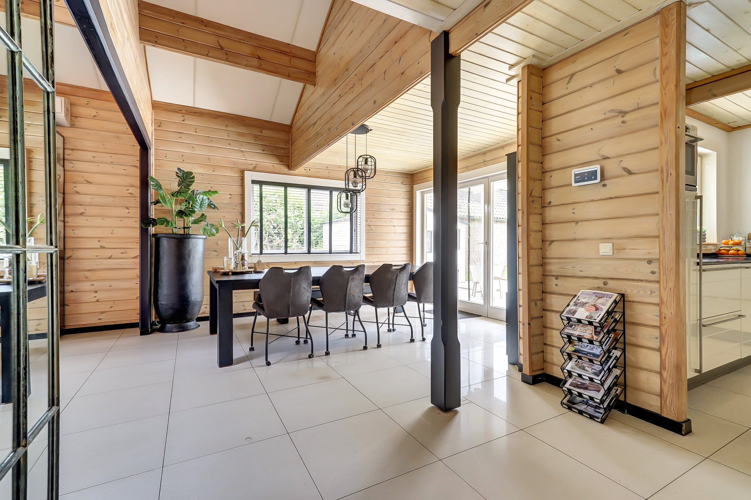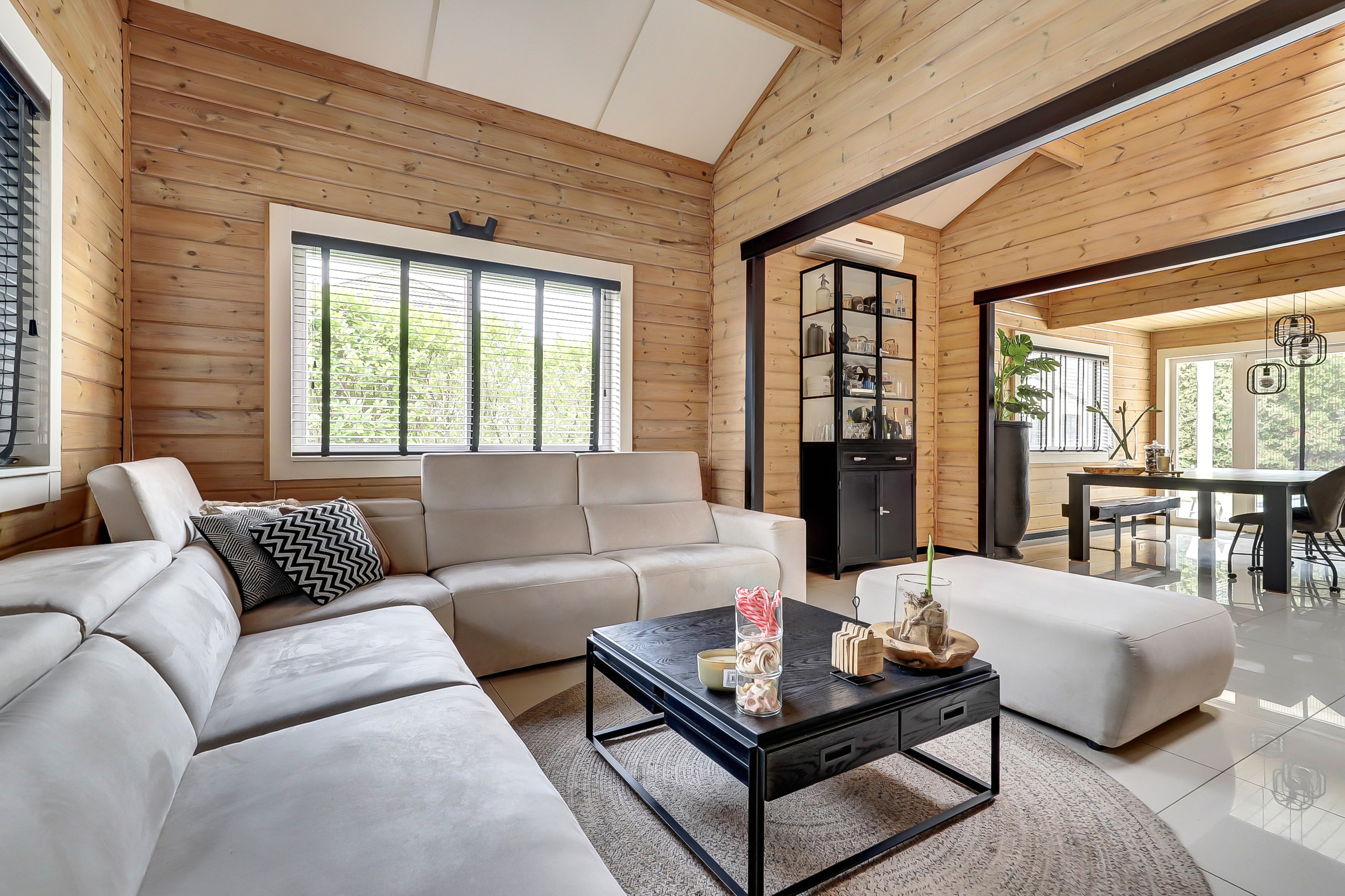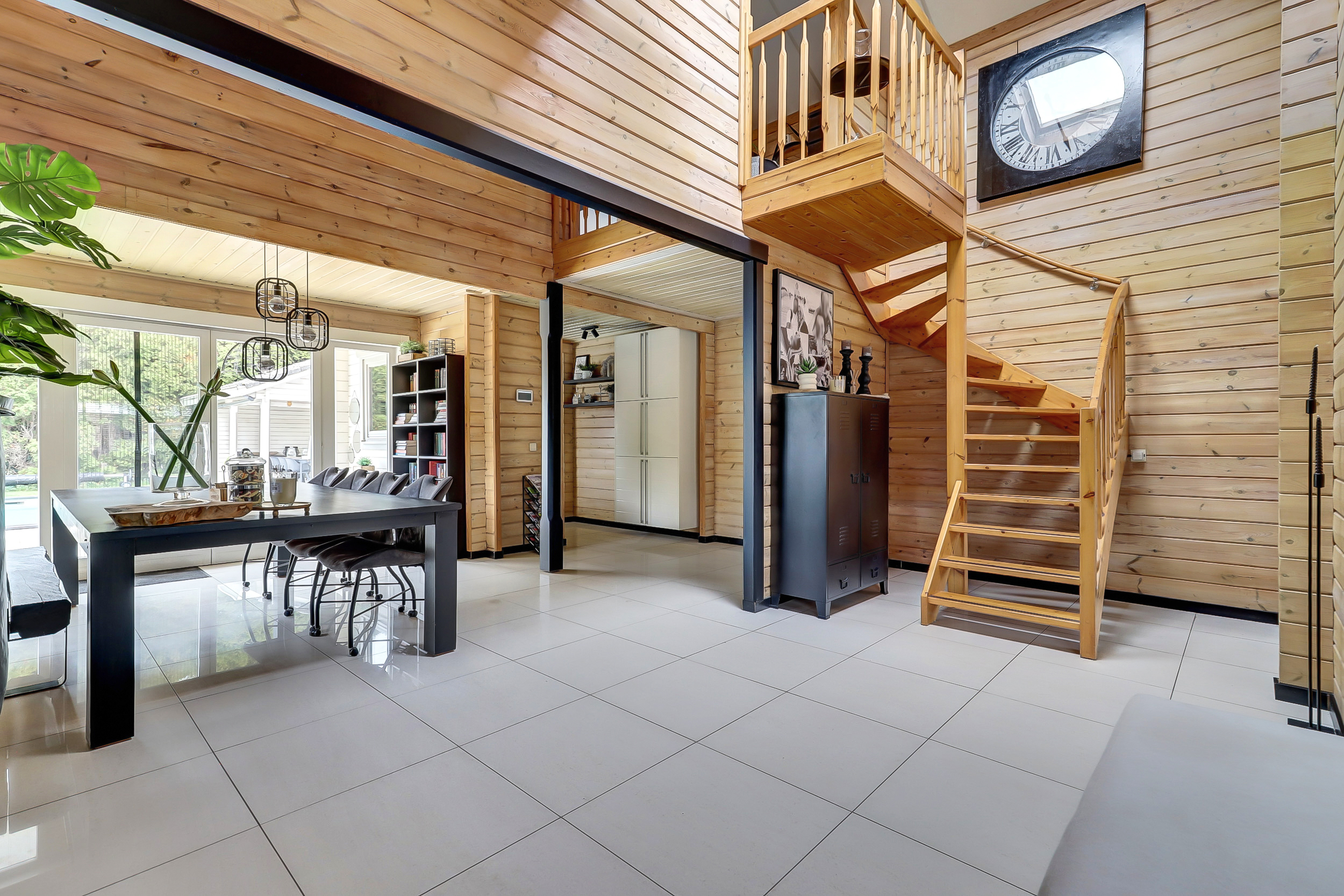 + Finnhouse met massief grenenhouten balken, in Finland milieuvriendelijk kleurloos geïmpregneerd (duurzaamheid/brandveiligheid);