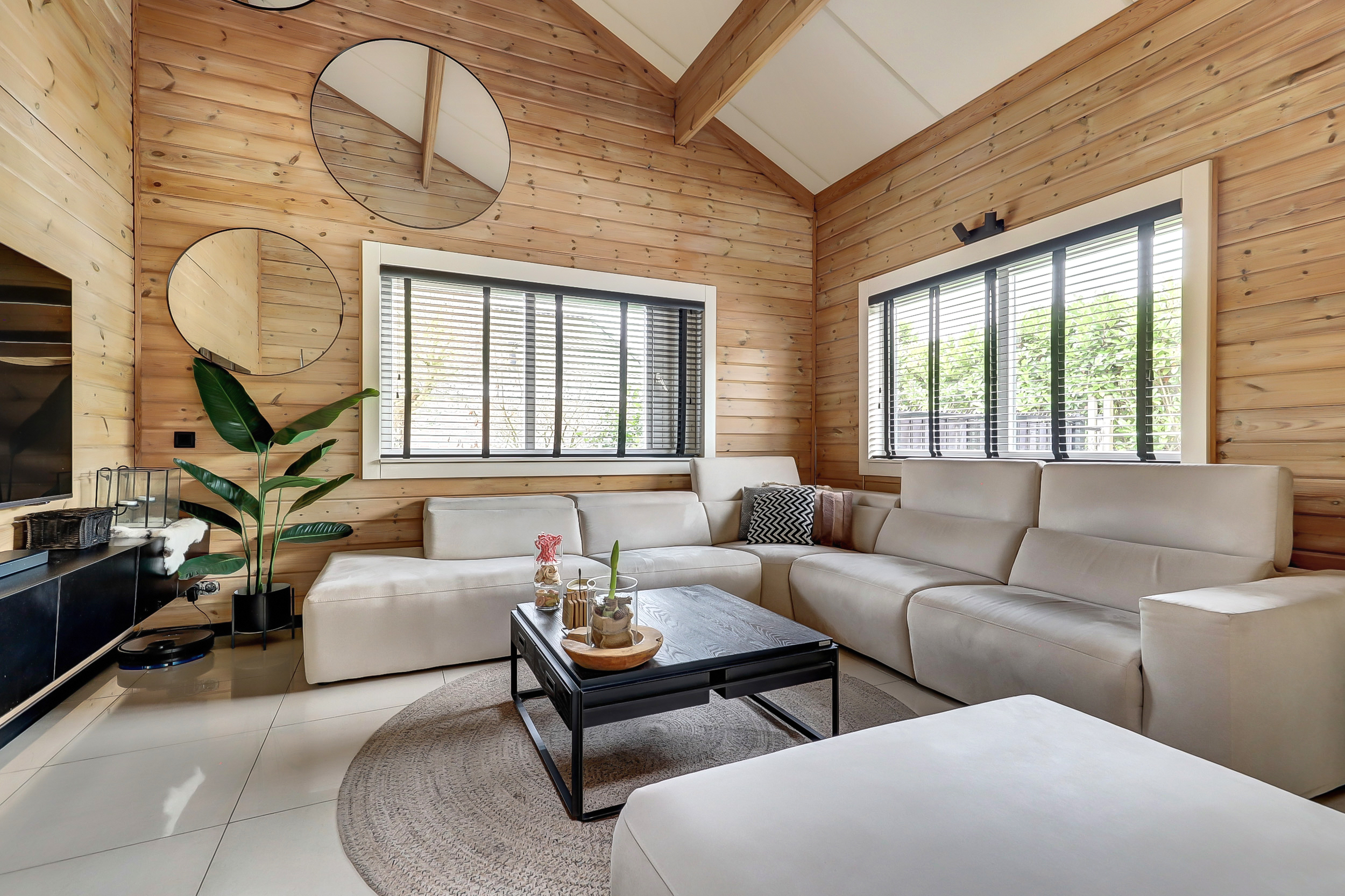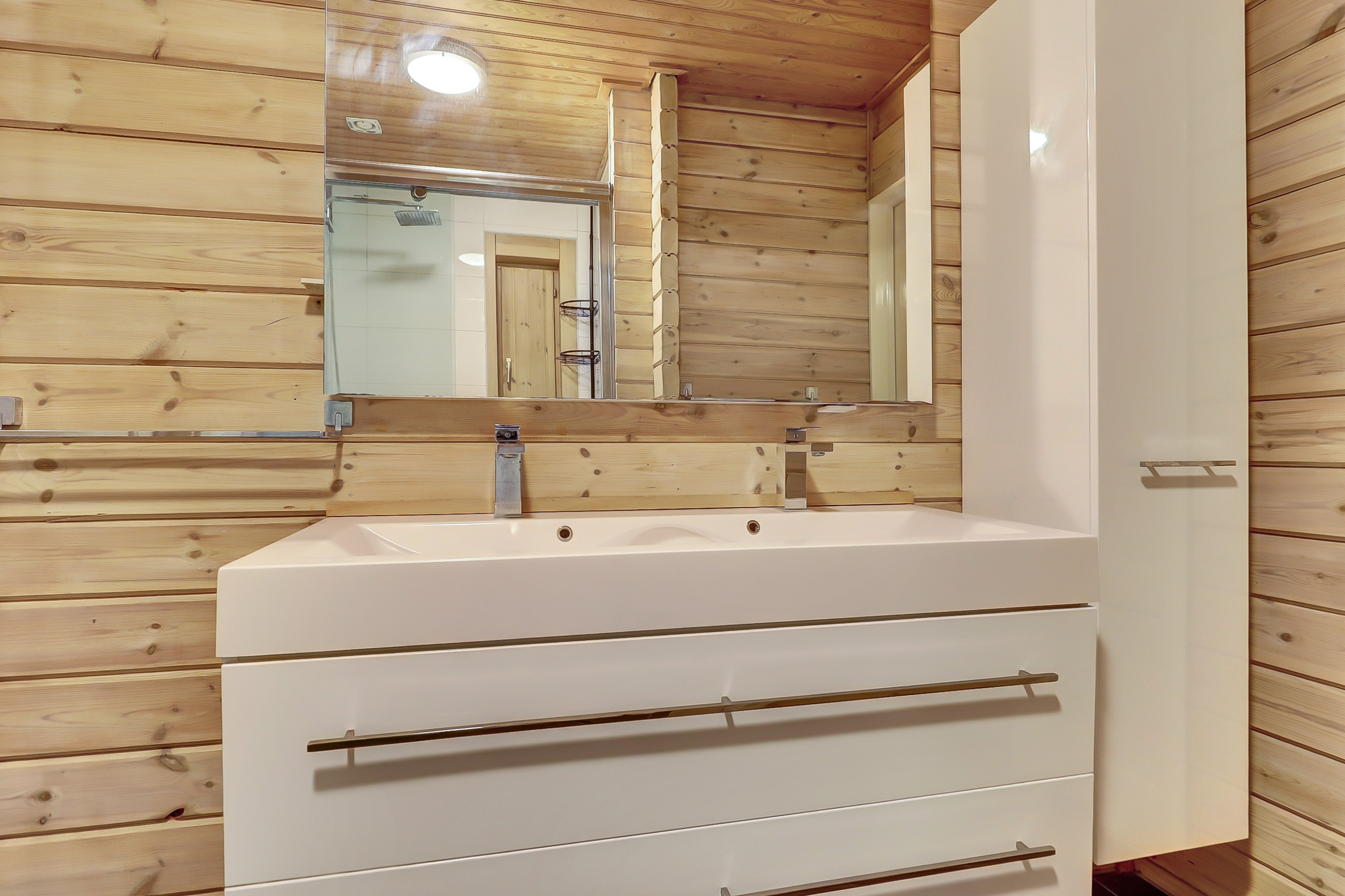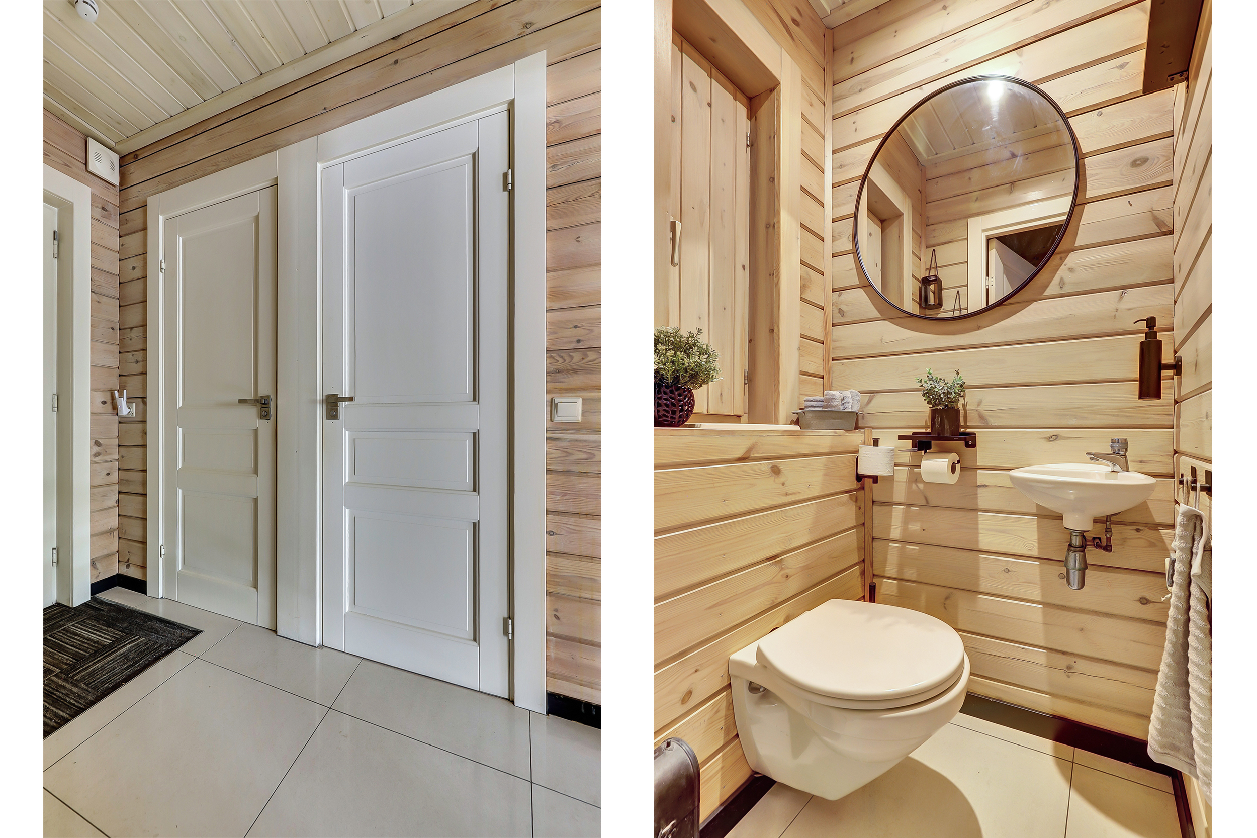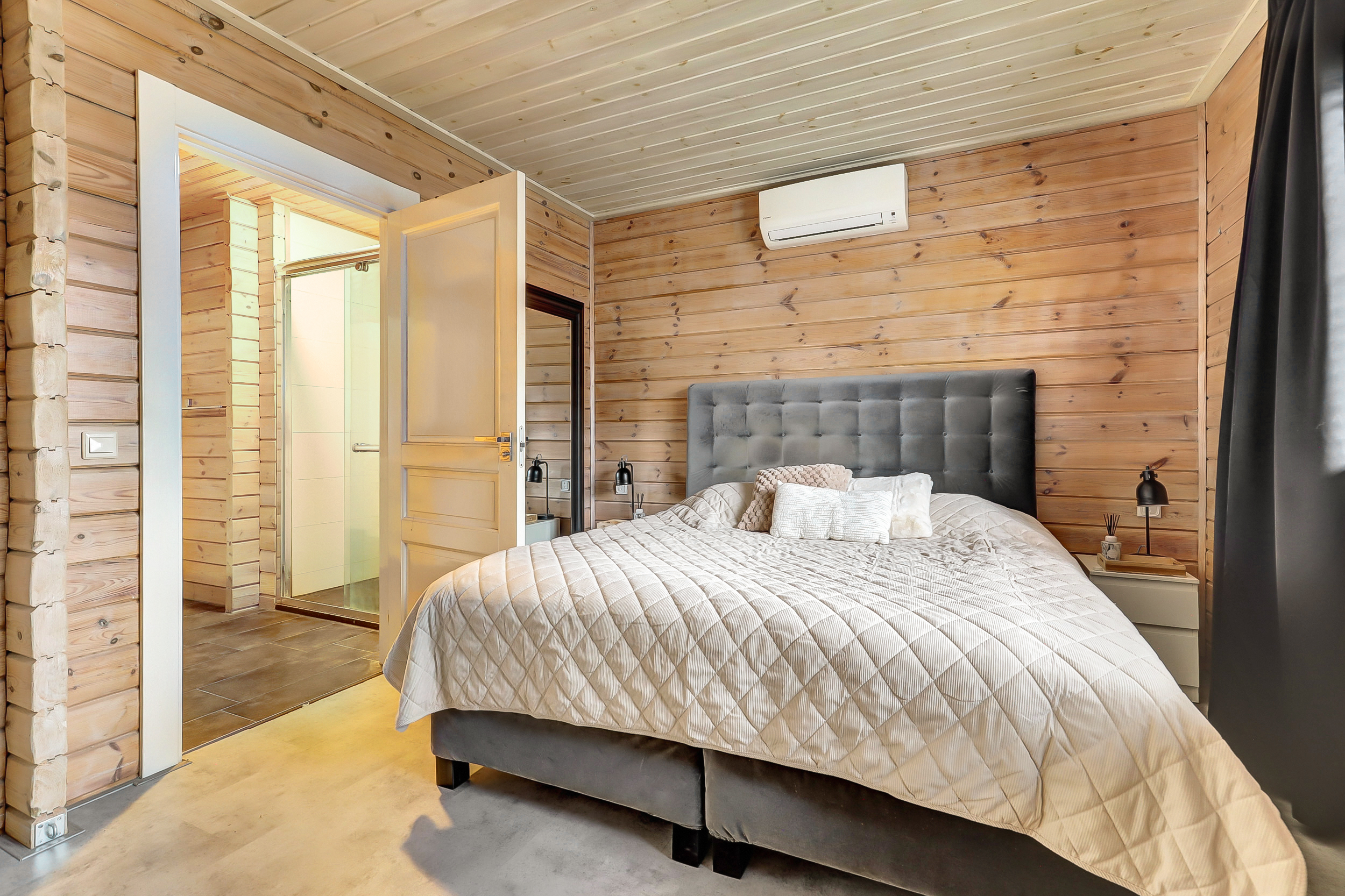 + Finnhouse met massief grenenhouten balken, in Finland milieuvriendelijk kleurloos geïmpregneerd (duurzaamheid/brandveiligheid);