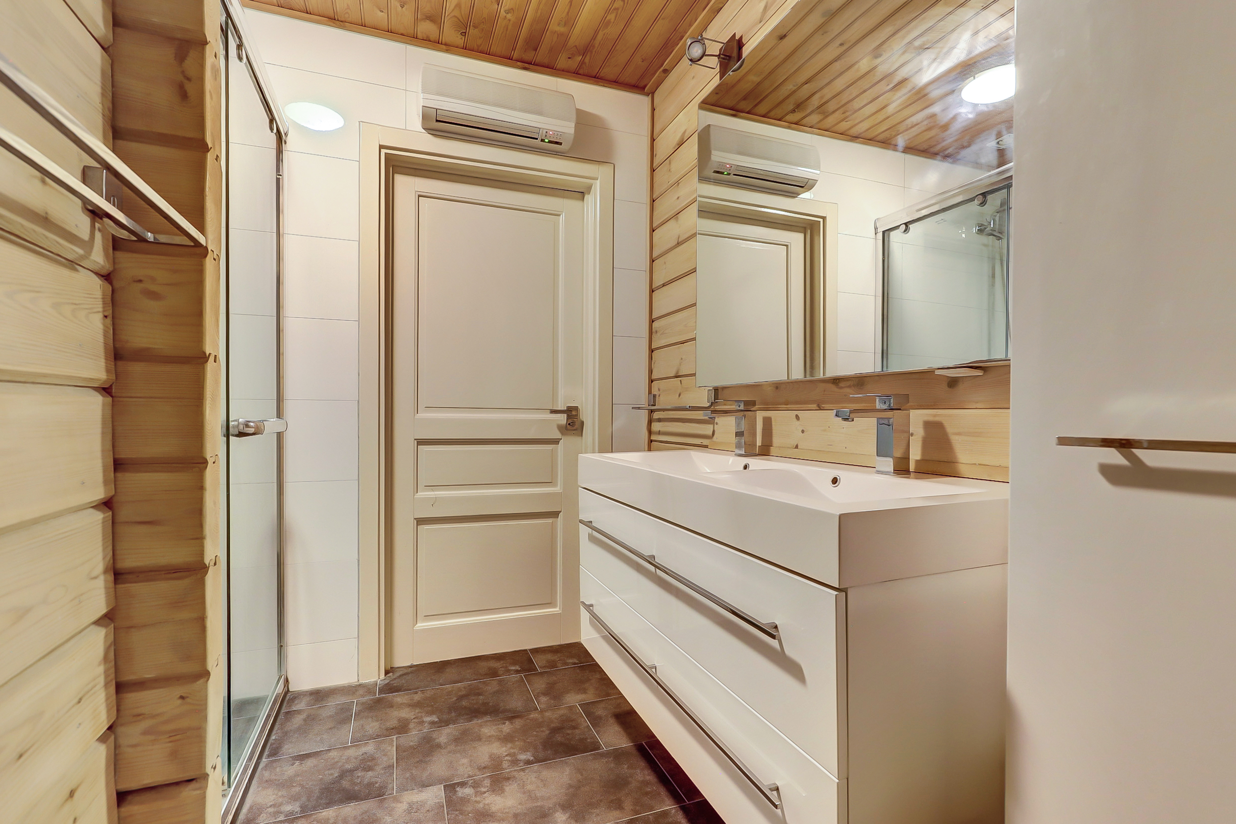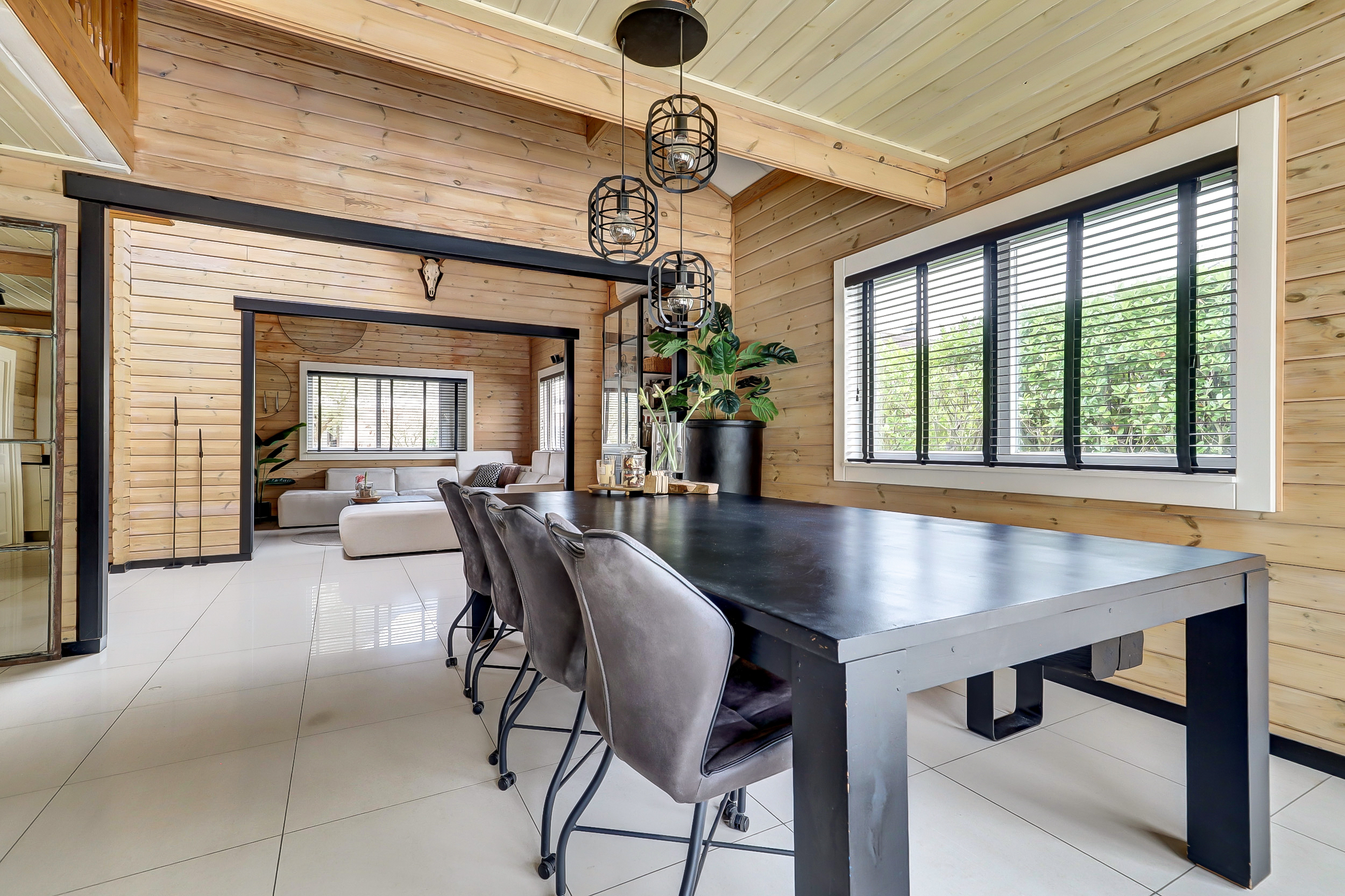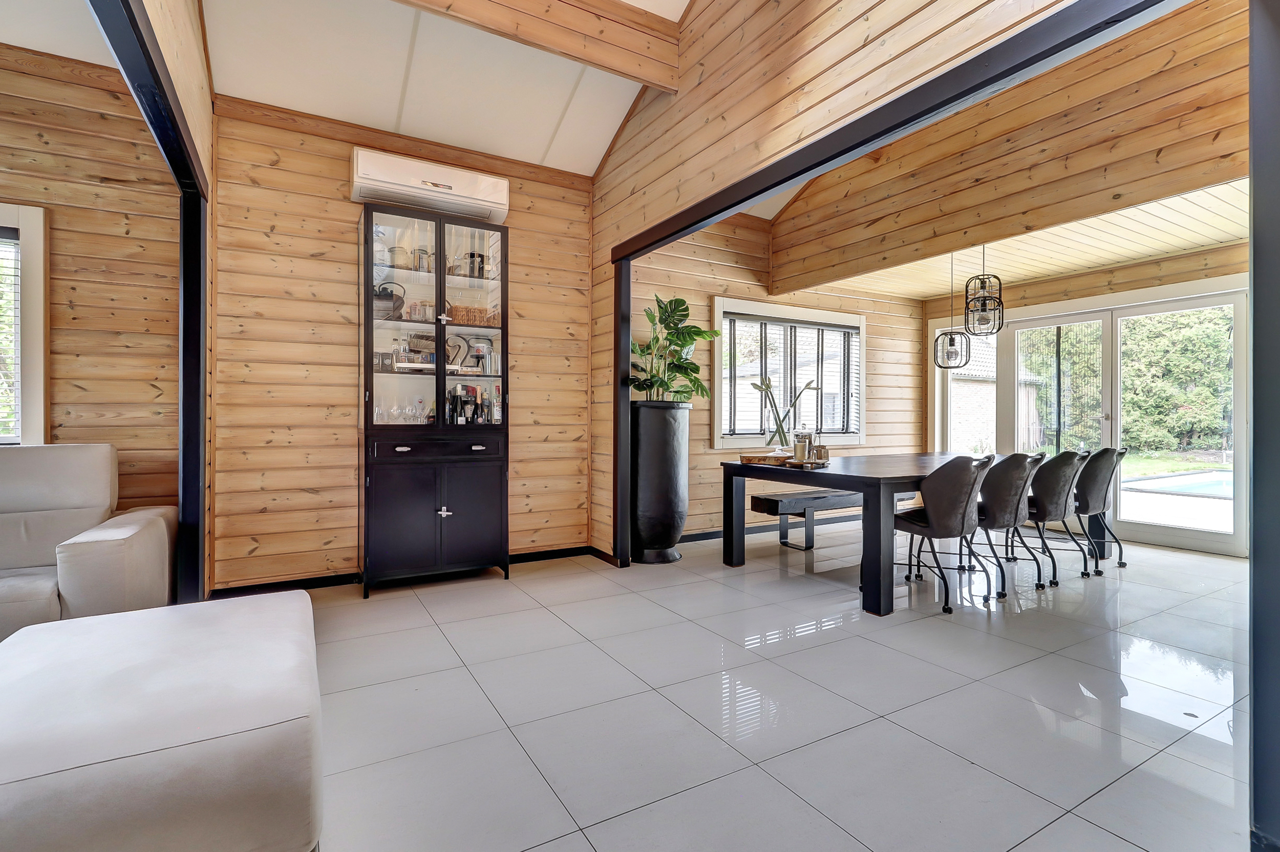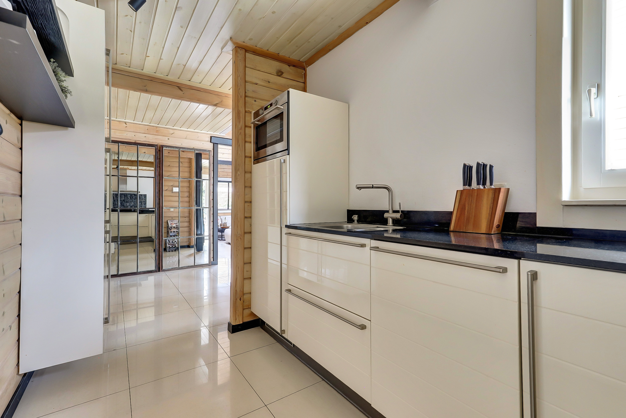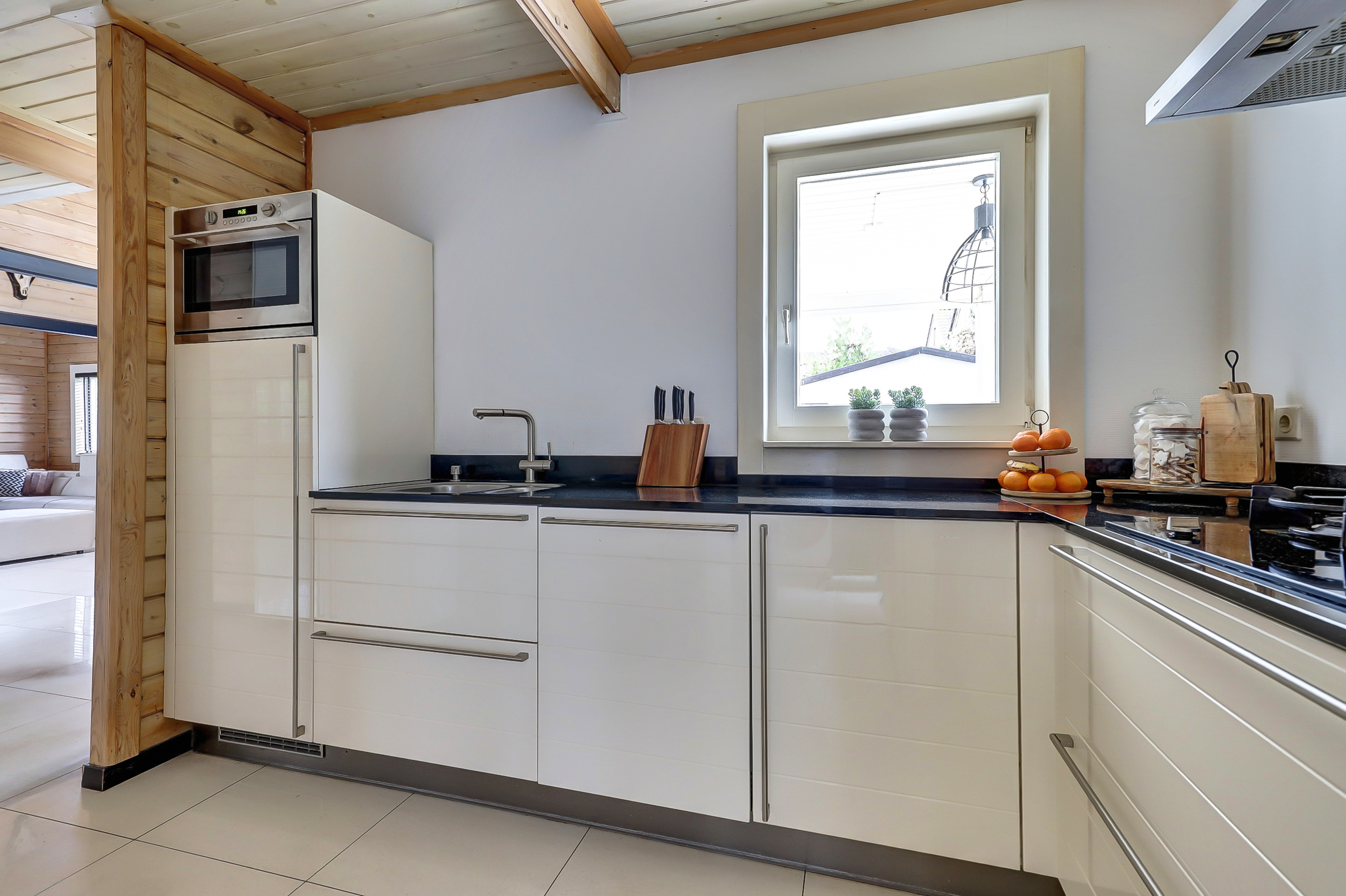 + Finnhouse met massief grenenhouten balken, in Finland milieuvriendelijk kleurloos geïmpregneerd (duurzaamheid/brandveiligheid);