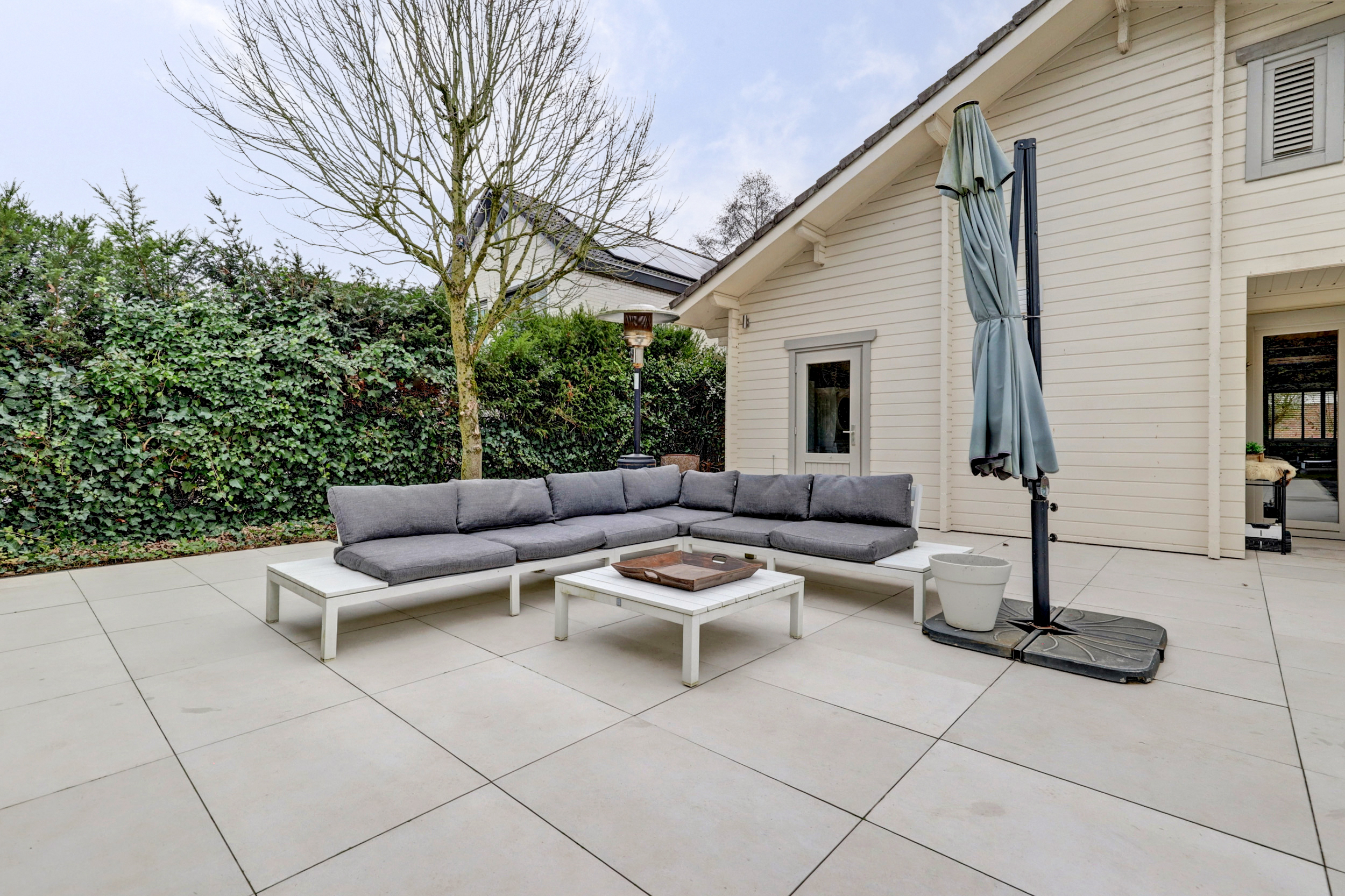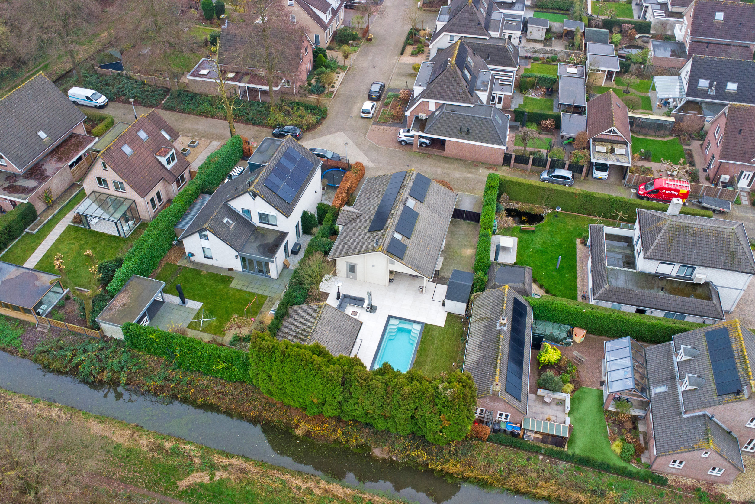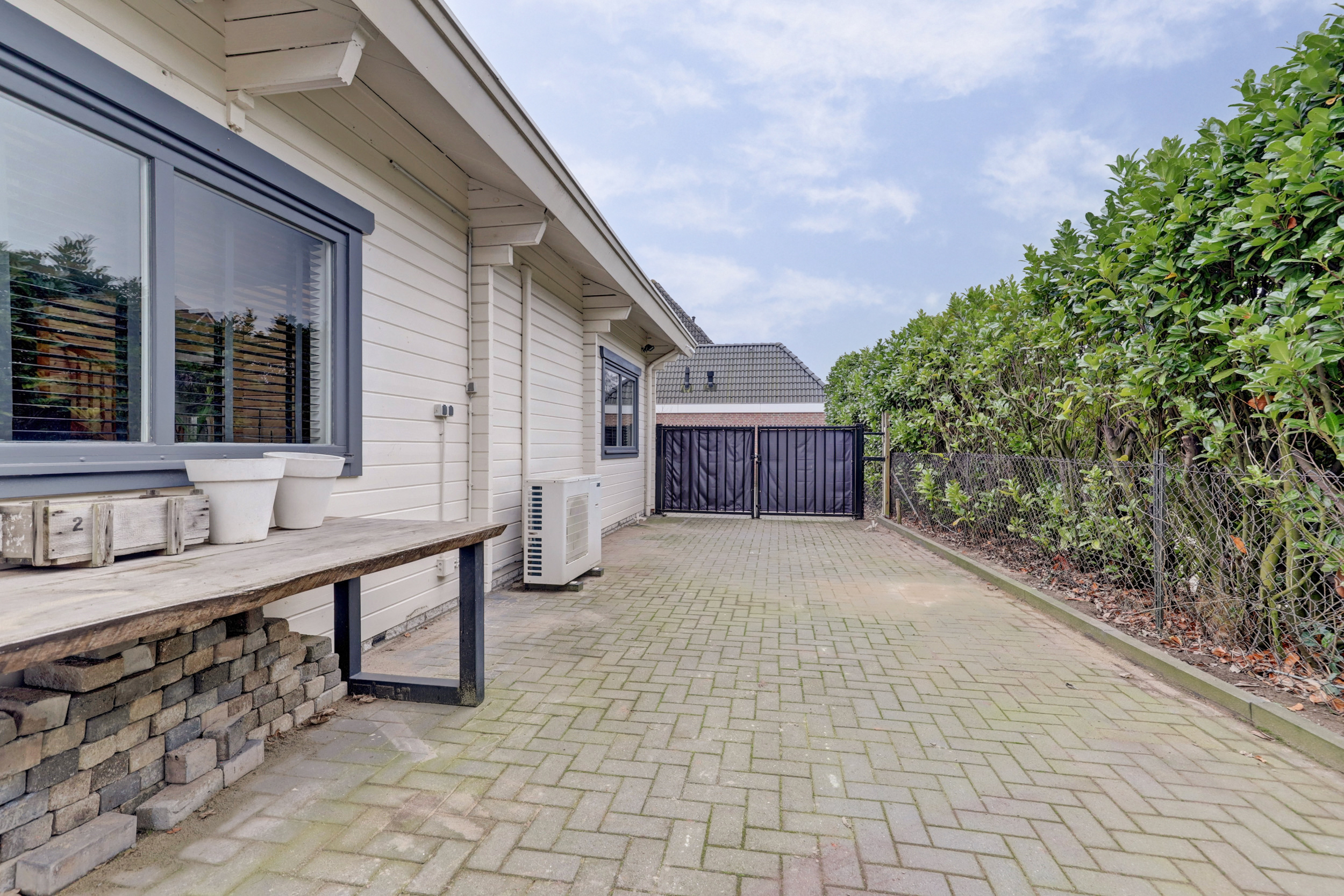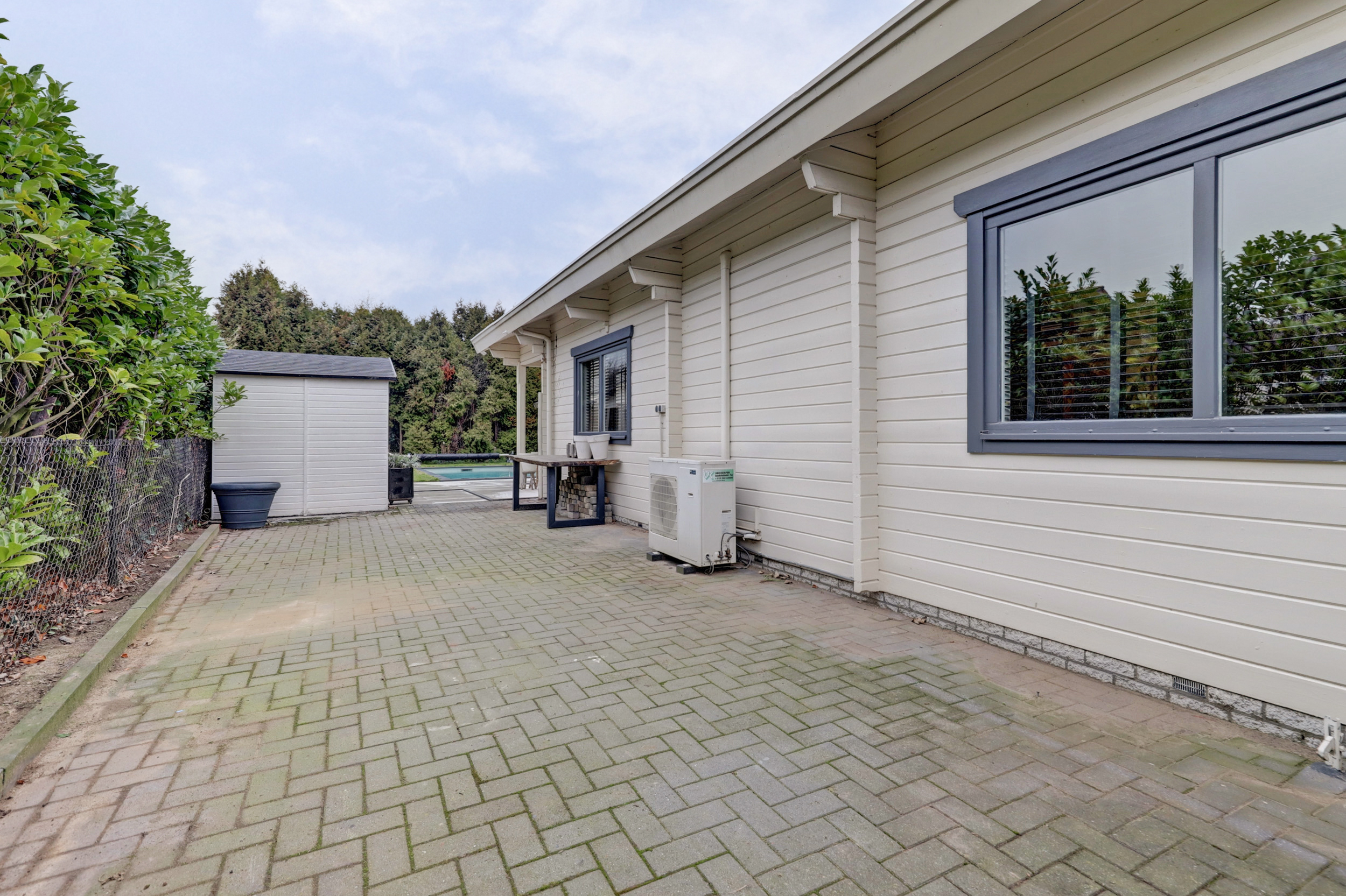 De achtertuin is verzorgd aangelegd en biedt volop ruimte om te ontspannen en te genieten van de zon of de schaduw. Door de ligging heb je veel vrijheid en privacy. De ruime achtertuin heeft meerdere terrassen, een heerlijk zwembad (ca. 1,50 m diep en in 2024 aangelegd), een houten tuinhuis met overkapping, houten berging, elektrapunten, buitenkraan en achterom via dubbele ijzeren poort maken de achtertuin een fijne plek om te genieten. In het tuinhuis van ca. 12,5 m² is een barretje met koelkast, een plek voor de kinderen of om vrienden te ontvangen en gezellige avonden door te brengen. Aan het tuinhuis zit de overkapping met zicht op het zwembad. De houten berging van ca. 8 m² met elektra en opstelplaats voor de pomp en het filter van het zwembad. Op de eigen opritten kun je met meerdere auto’s parkeren. De voortuin is netjes en onderhoudsvriendelijk aangelegd.