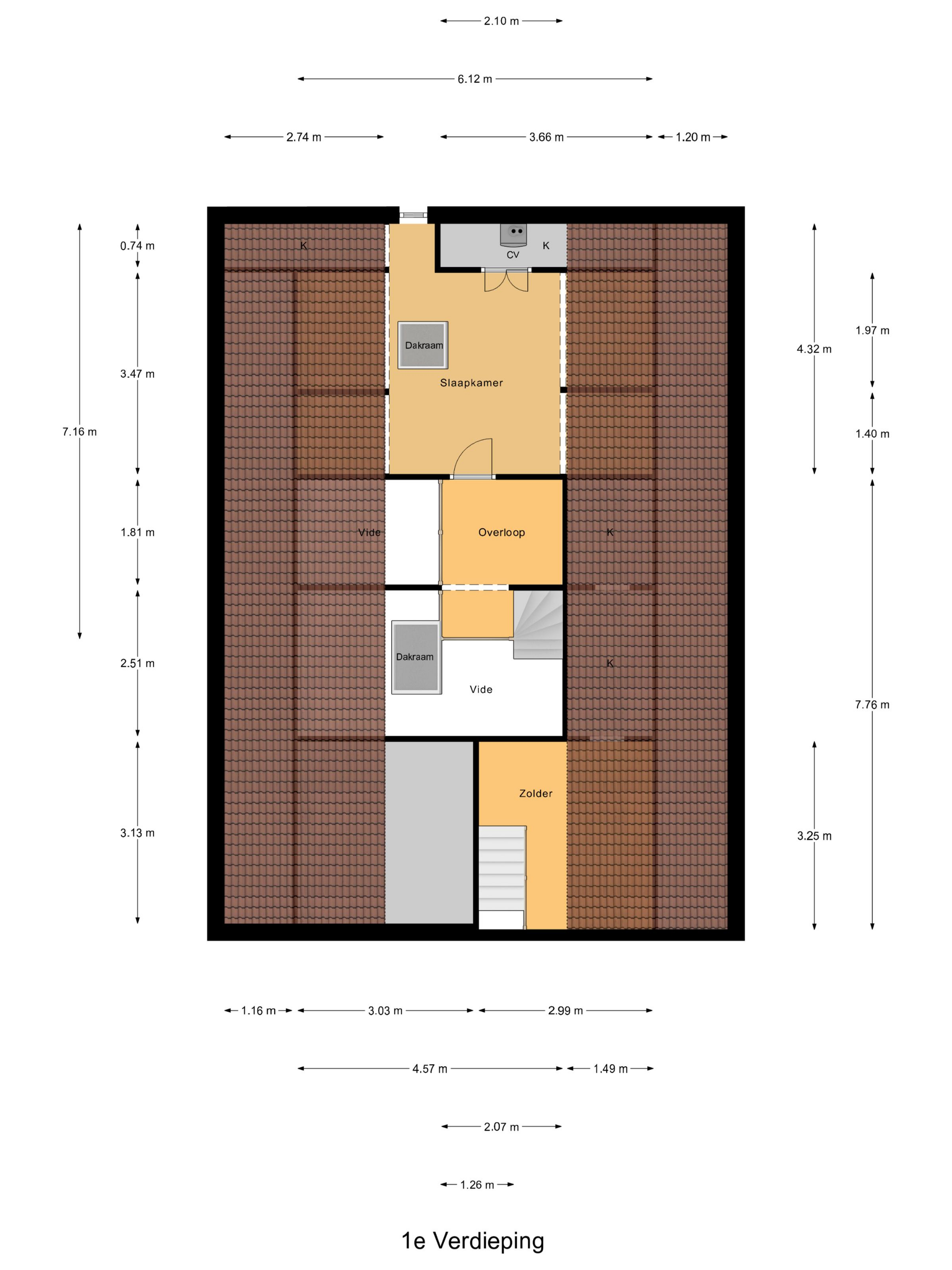Via de vaste trap bereik je de sfeervolle vide met zicht op de eetkamer en genoeg ruimte voor een werk- of studeerplek. De ruime derde slaapkamer is voorzien van dakvenster, bergruimte en vaste kast met opstelplaats voor de Cv-ketel (Intergas, 2012).
