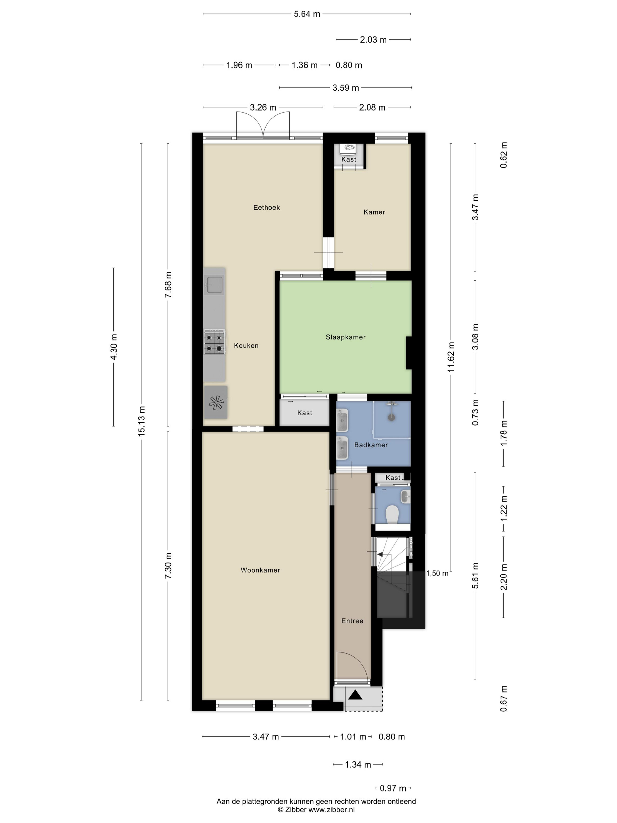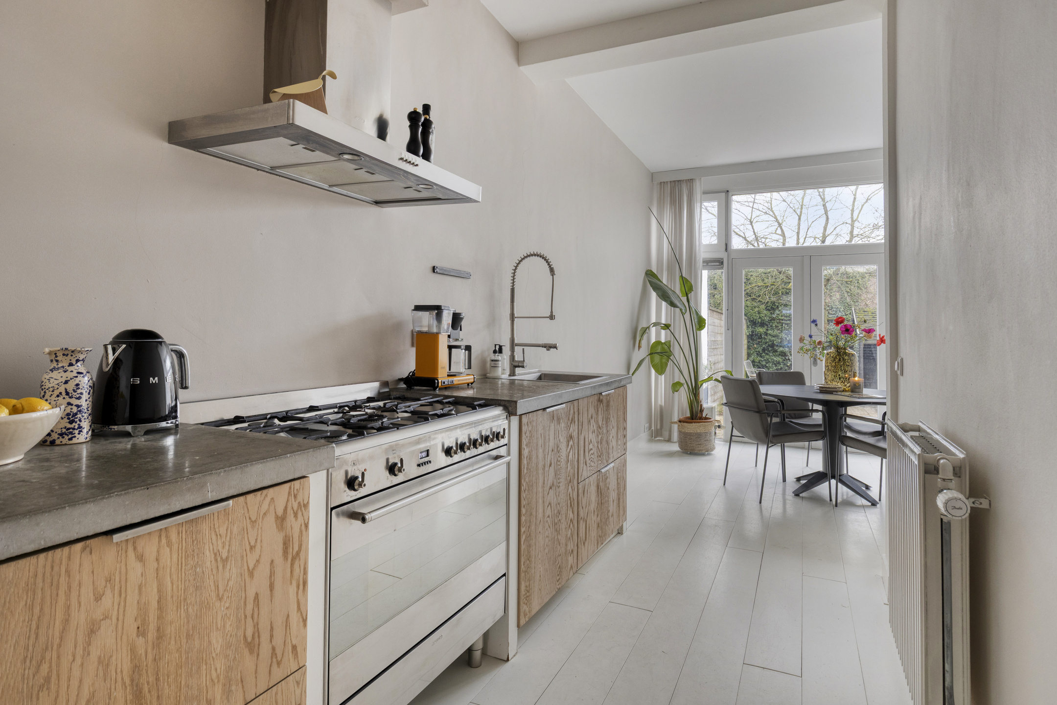 Via de eigen entree kom je in de hal die toegang geeft tot de verschillende vertrekken. De lichte woonkamer aan de voorzijde kijkt uit op de rustige straat. Aan de achterzijde bevindt zich de ruime woonkeuken, die via openslaande deuren direct in verbinding staat met de zonnige tuin.