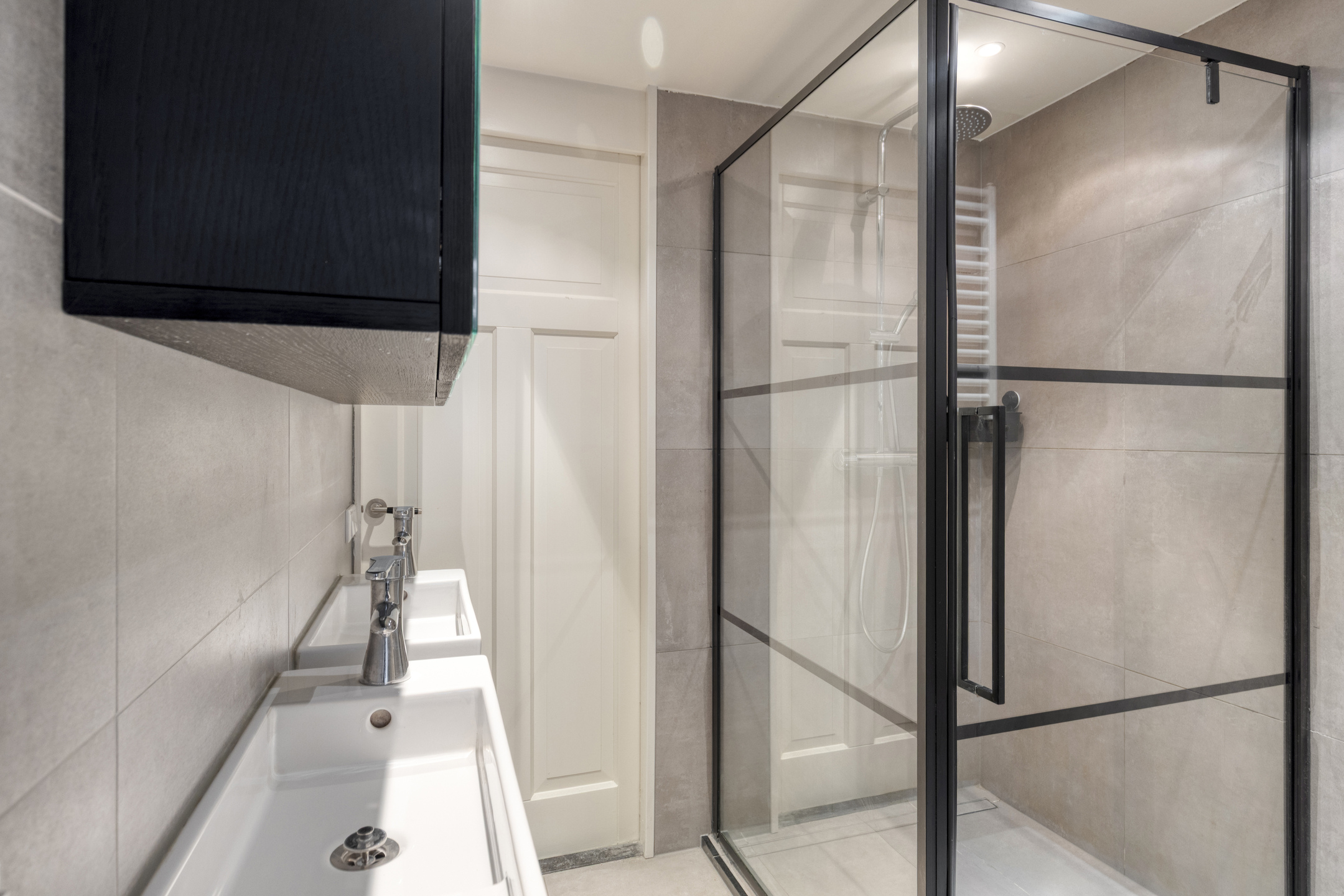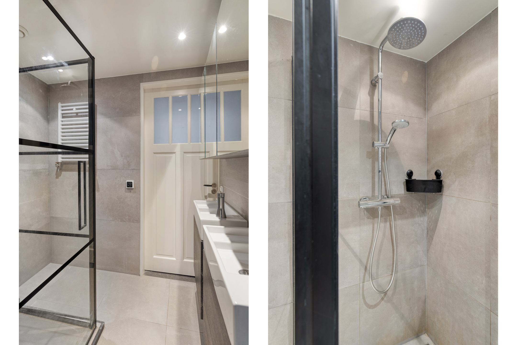 De moderne badkamer (2020) is voorzien van een ruime inloopdouche en een dubbele wastafel en is bereikbaar vanuit zowel de hal als de grootste slaapkamer. Daarnaast is er een separaat toilet in de hal.