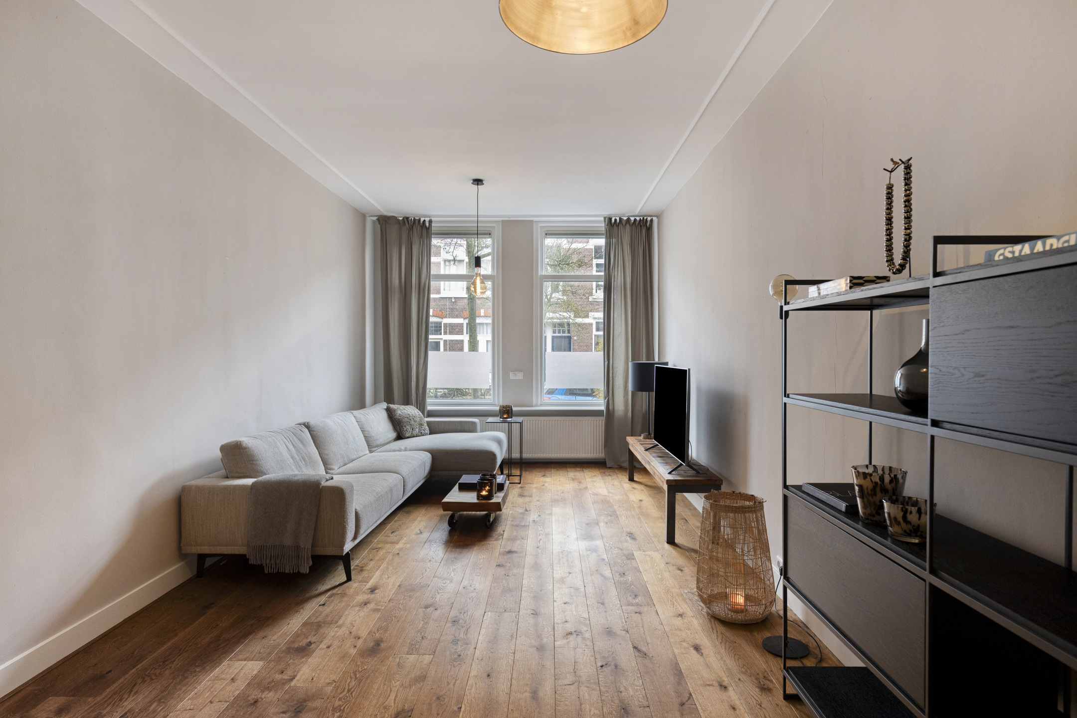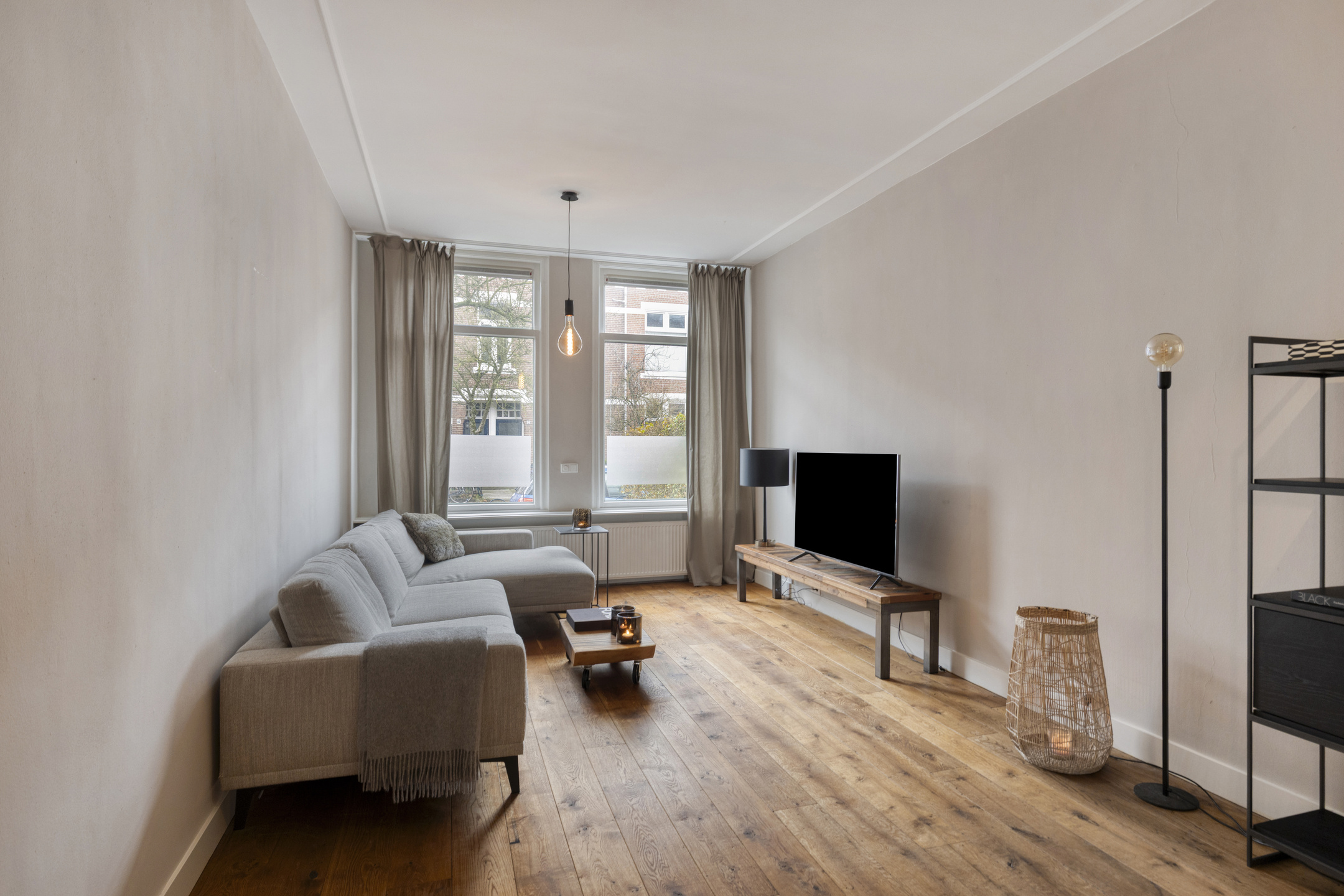 Deze goed onderhouden benedenwoning combineert het karakter van een woning uit 1905 met het comfort van nu. Bij binnenkomst ervaar je direct de prettige sfeer en het gevoel van ruimte, dankzij de hoge plafonds, brede eikenhouten vloer en grote raampartijen.