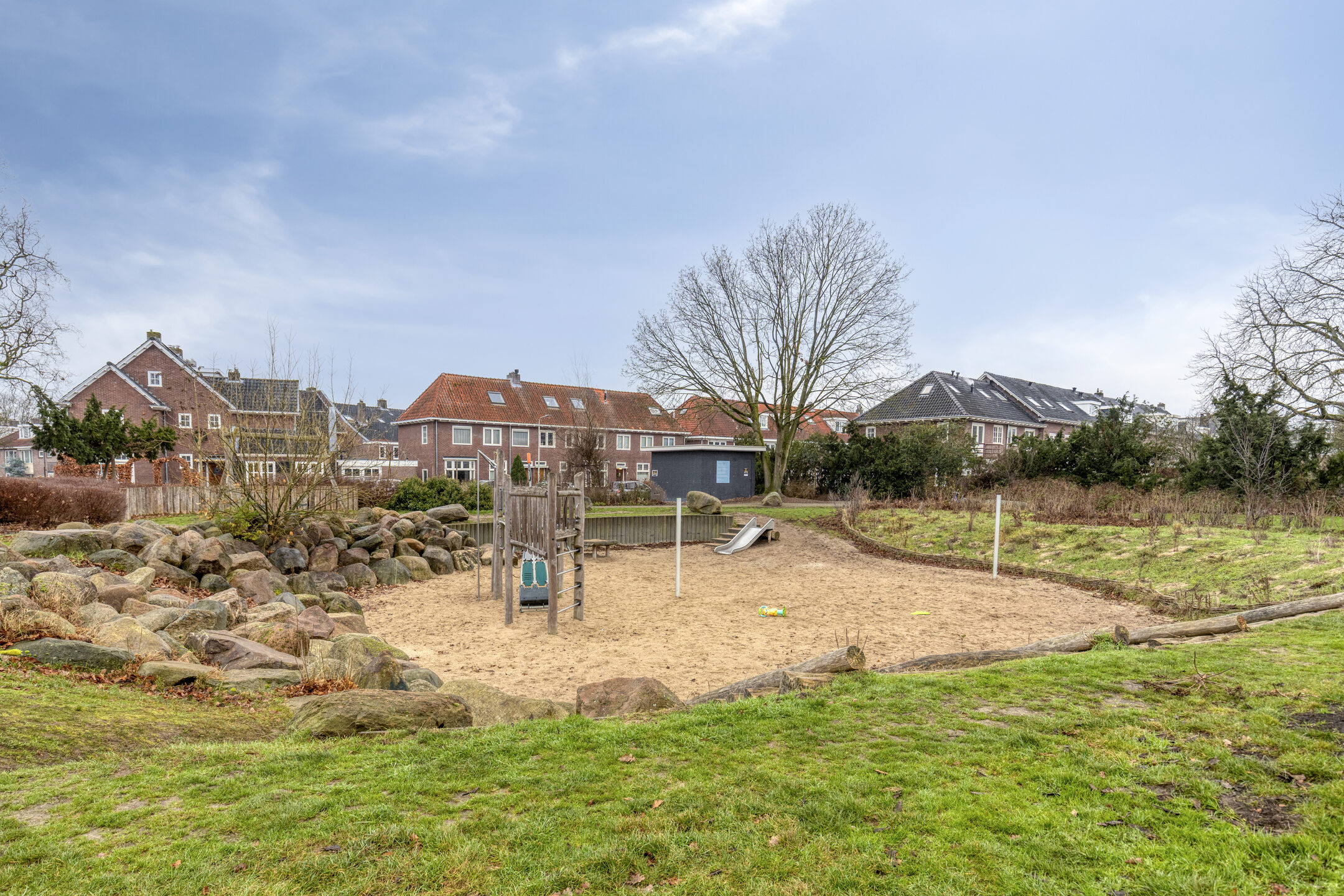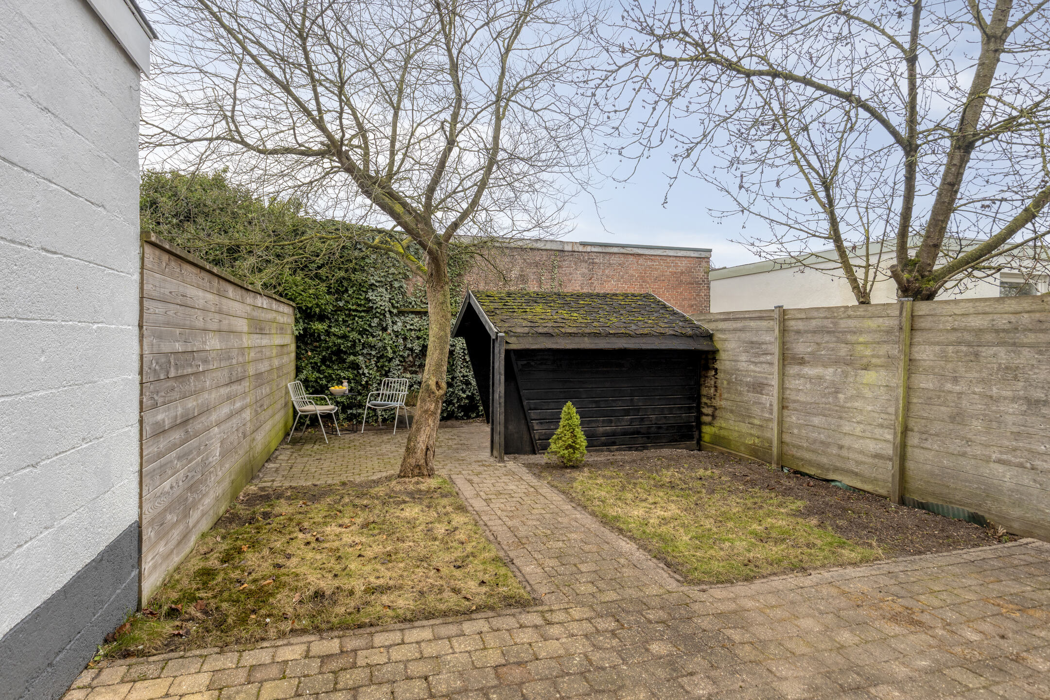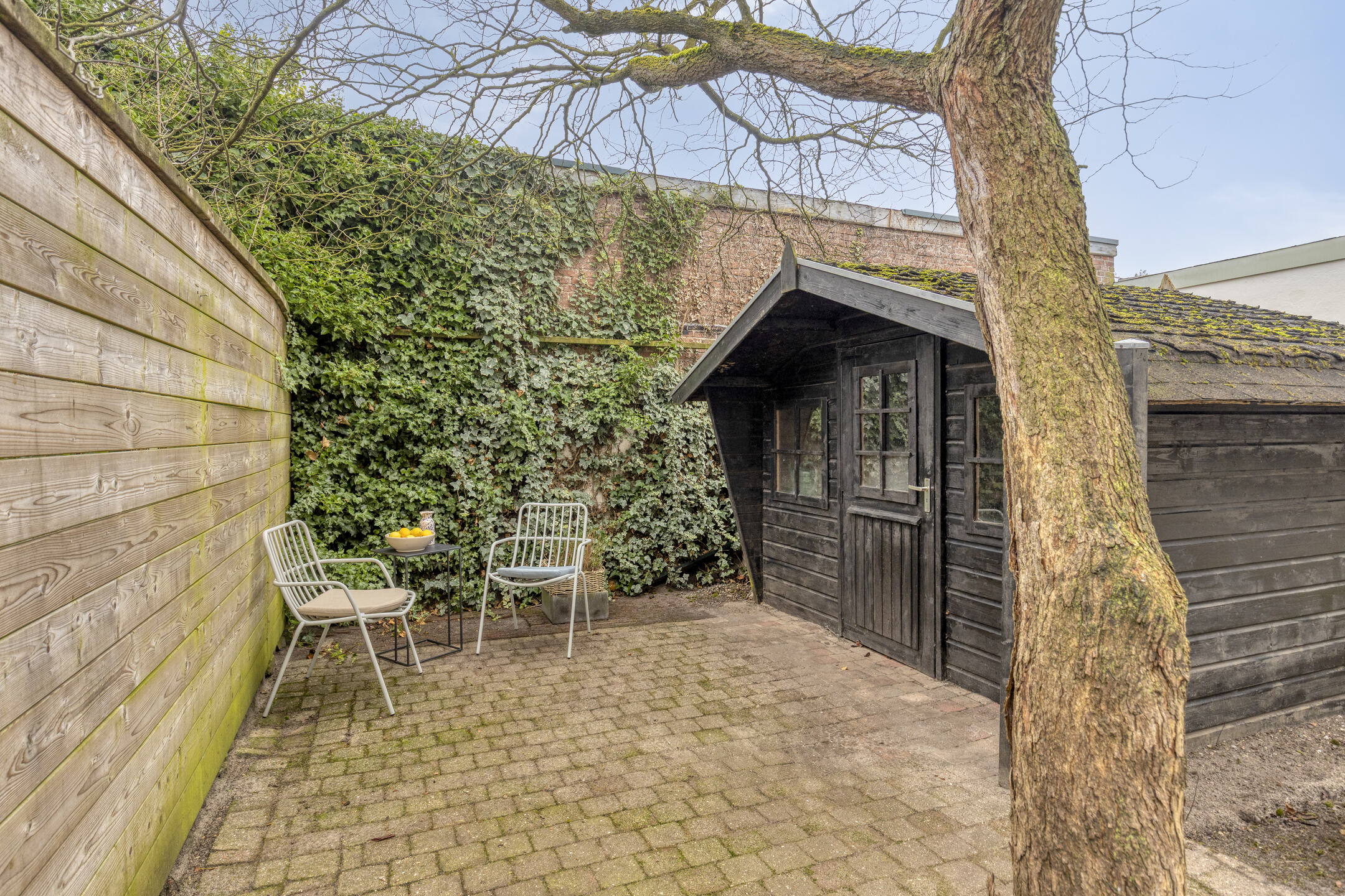 De tuin is opvallend breed en diep, ligt ideaal op het zuiden en biedt volop ruimte om te ontspannen, te tuinieren of gezellig buiten te eten. De vrijstaande houten berging met elektra biedt praktische ruimte voor fietsen, opslag of een hobbyplek.