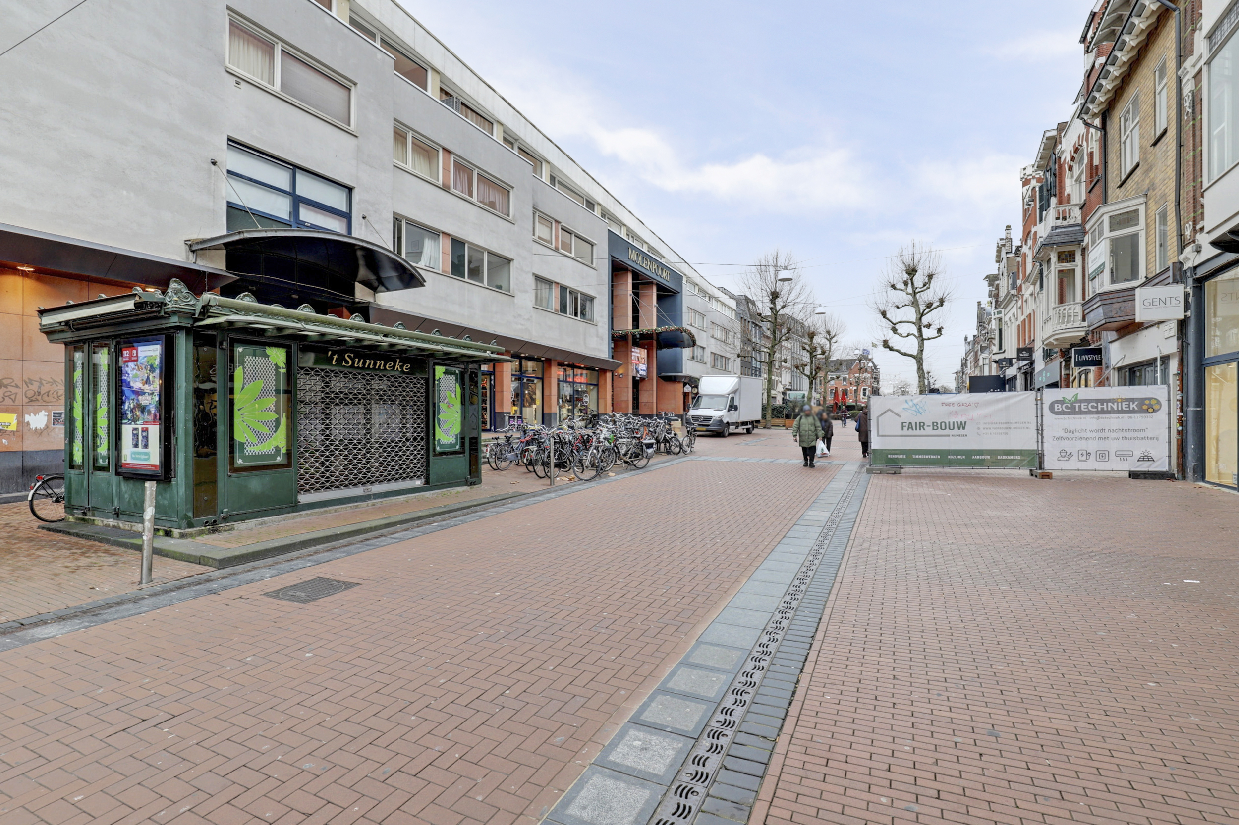 De ligging aan de Molenstraat betekent wonen in het historische en levendige centrum van Nijmegen, met winkels, horeca, openbaar vervoer en universiteit binnen handbereik. Tegelijkertijd biedt de studio zelf een rustige plek met uitzicht over het centrum.