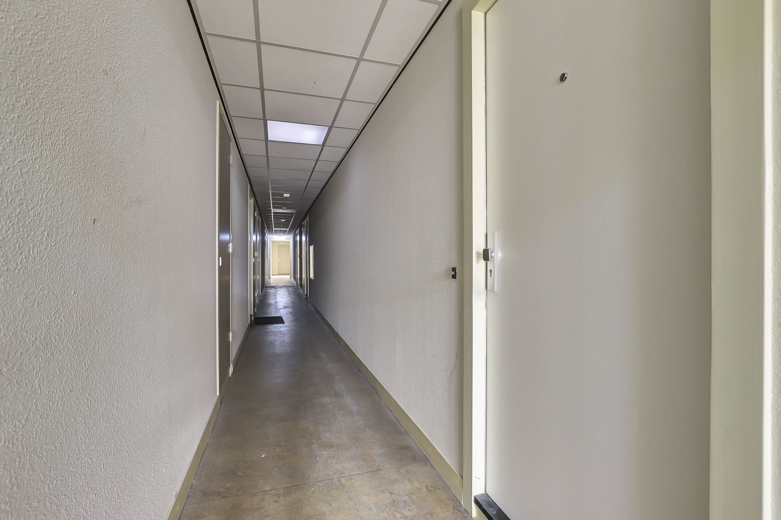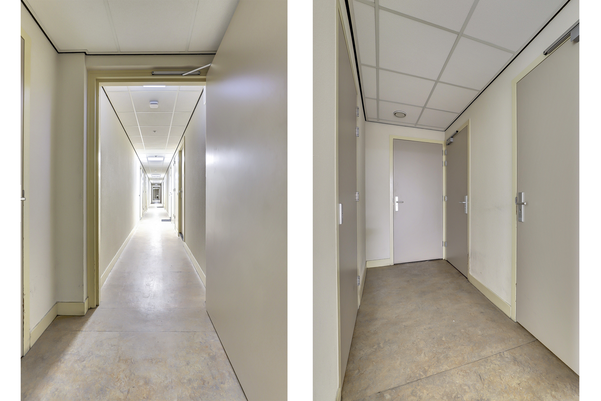 Via de centrale entree met brievenbussen, lift en trappenhuis bereik je de studio op de tweede verdieping. De studio is efficiënt ingedeeld en voelt licht en verzorgd aan dankzij de raampartijen over de volledige breedte.