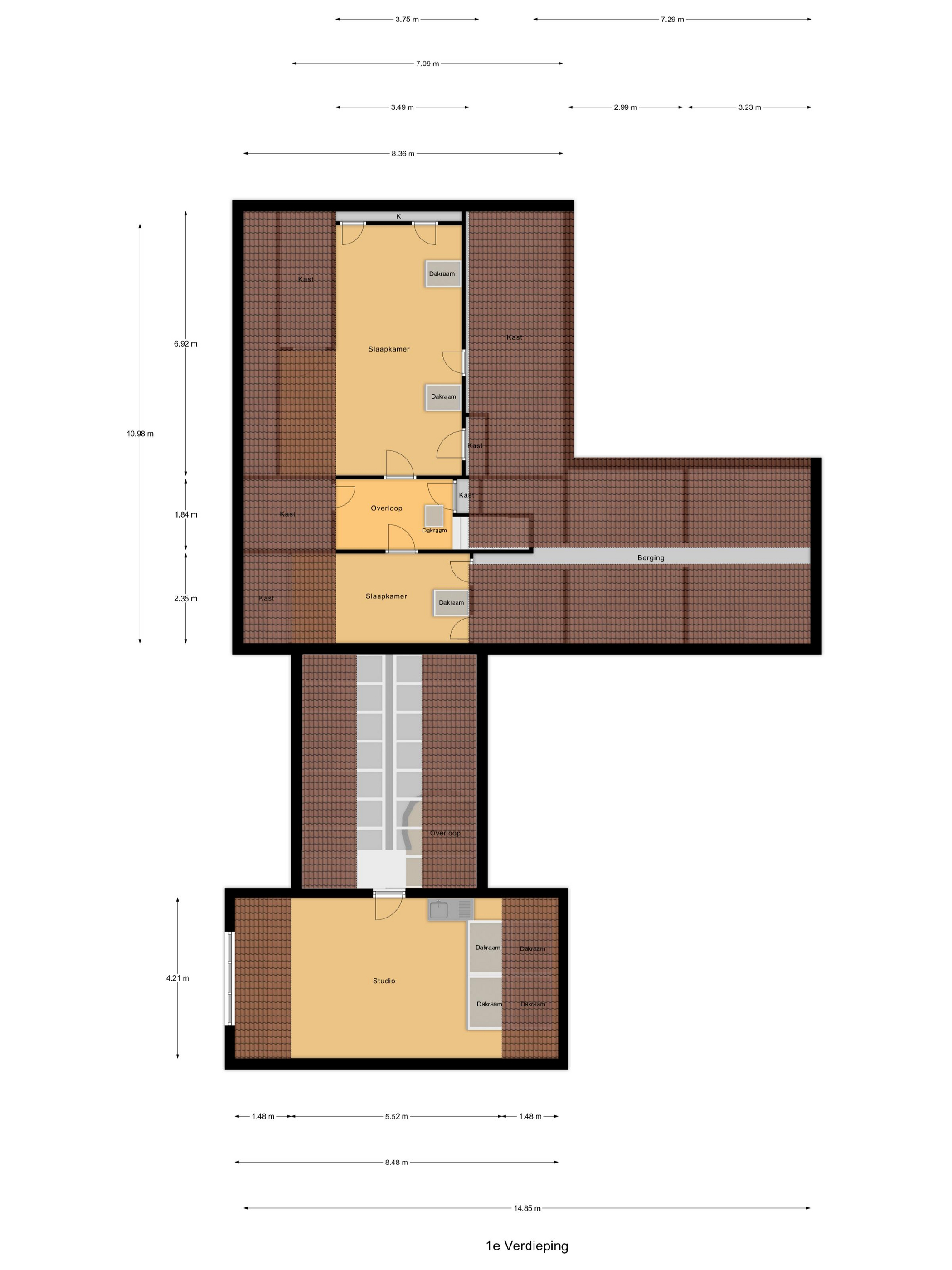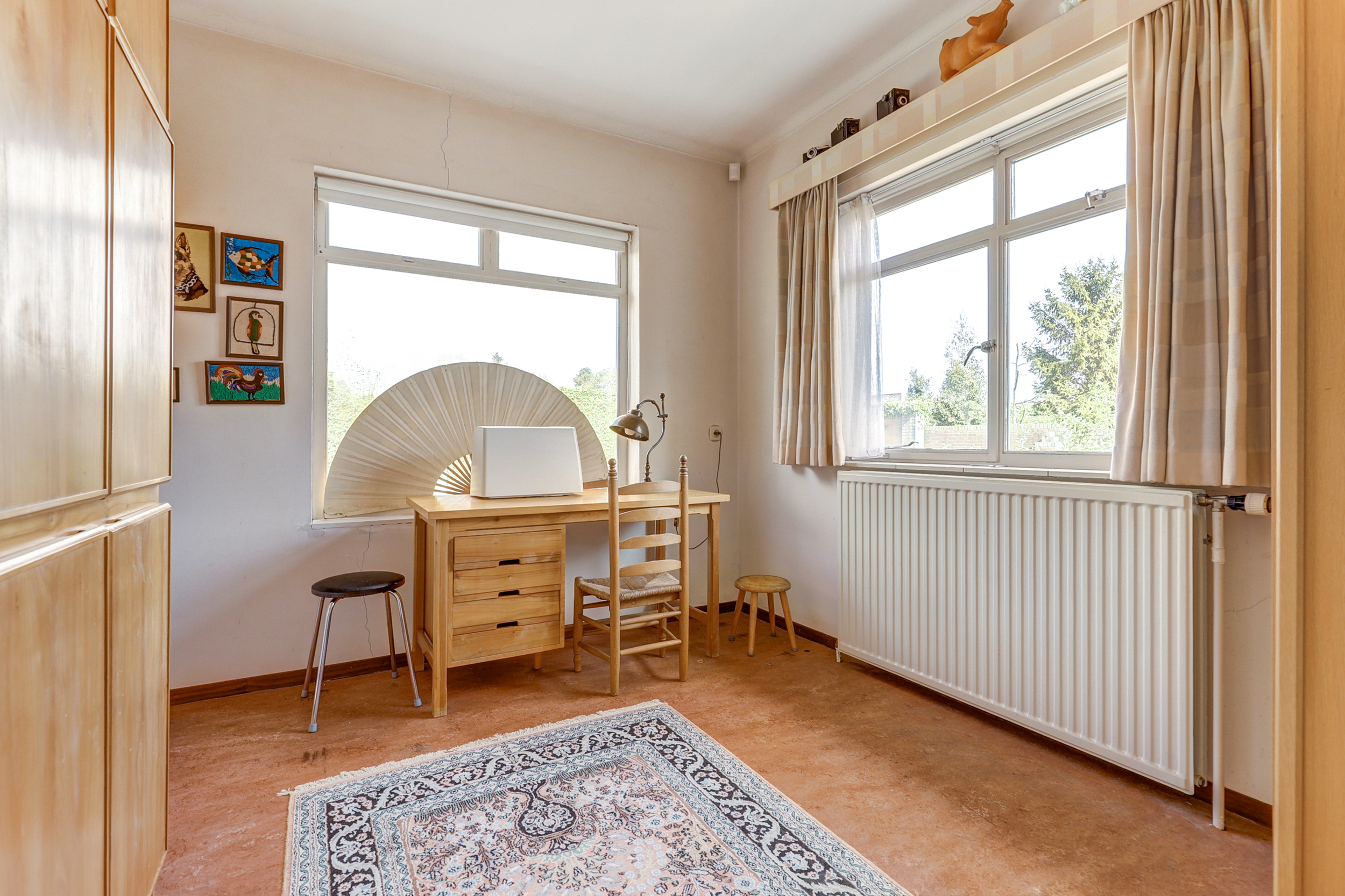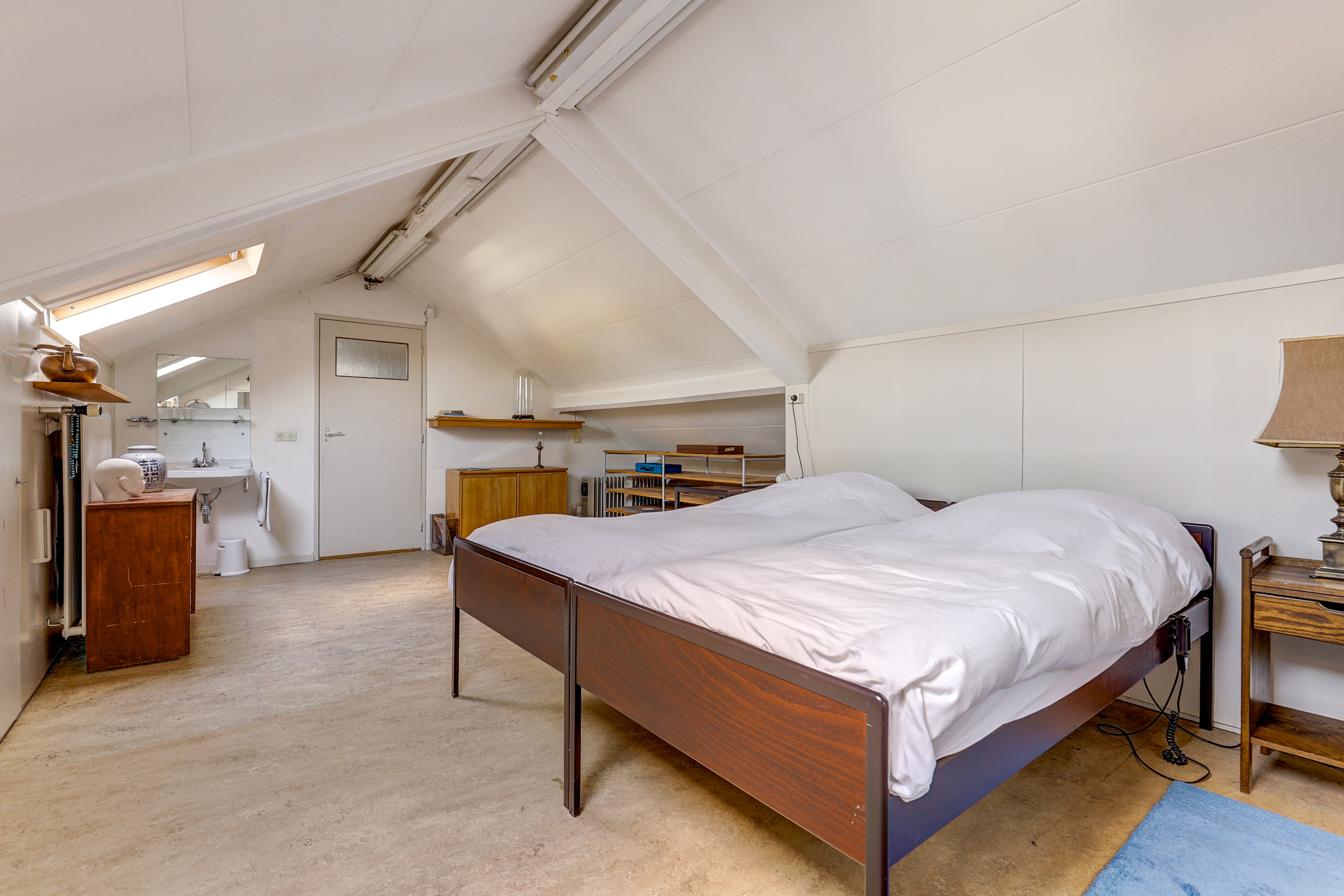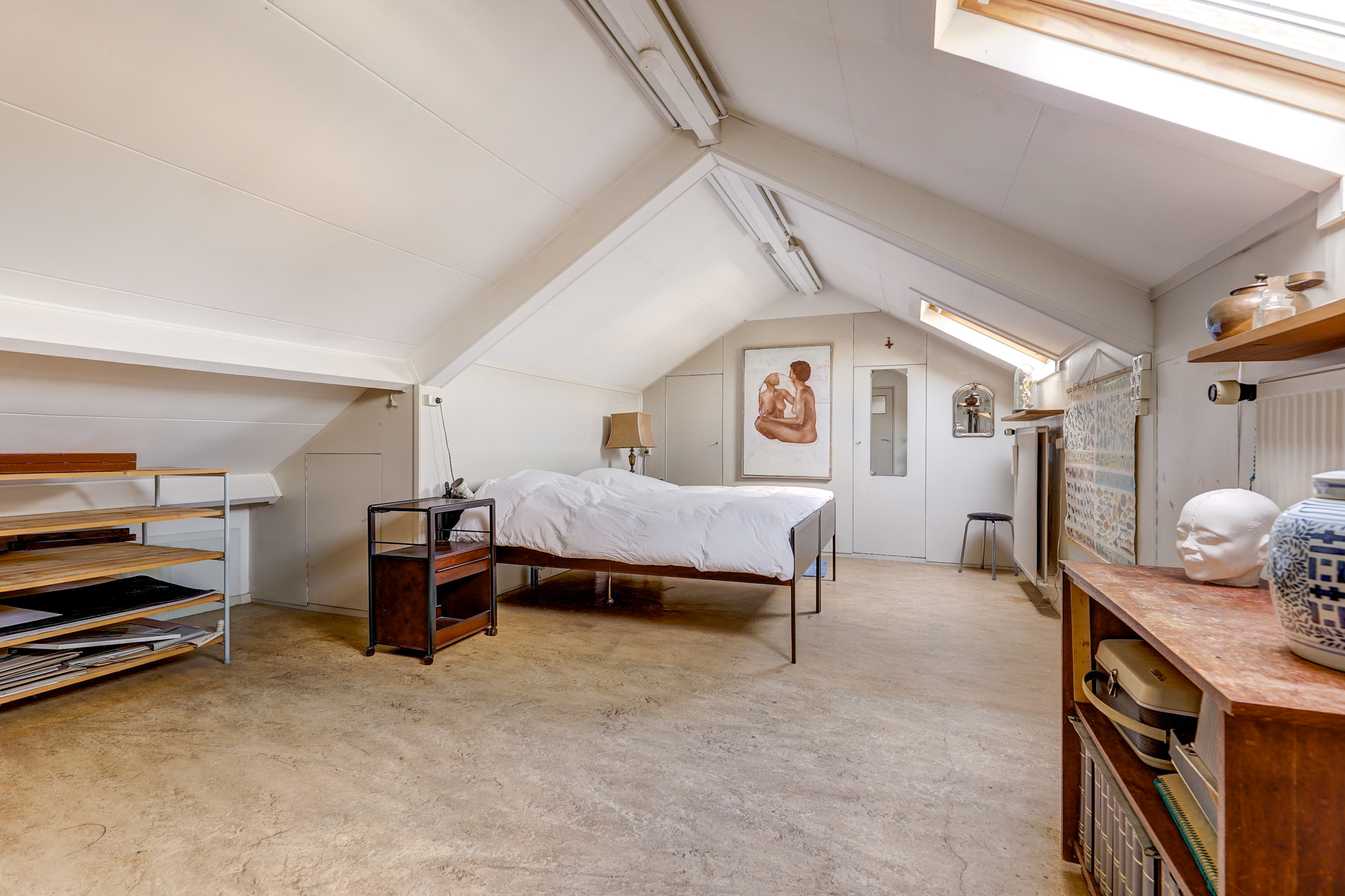 Daarnaast is er boven de inpandige garage nog een royale kamer, welke momenteel in gebruik is als atelier. Deze ruimte heeft prachtige lichtinval door de 4 dakvensters en heeft tevens een pantryblokje met koud en warm water en is voorzien van verwarming.