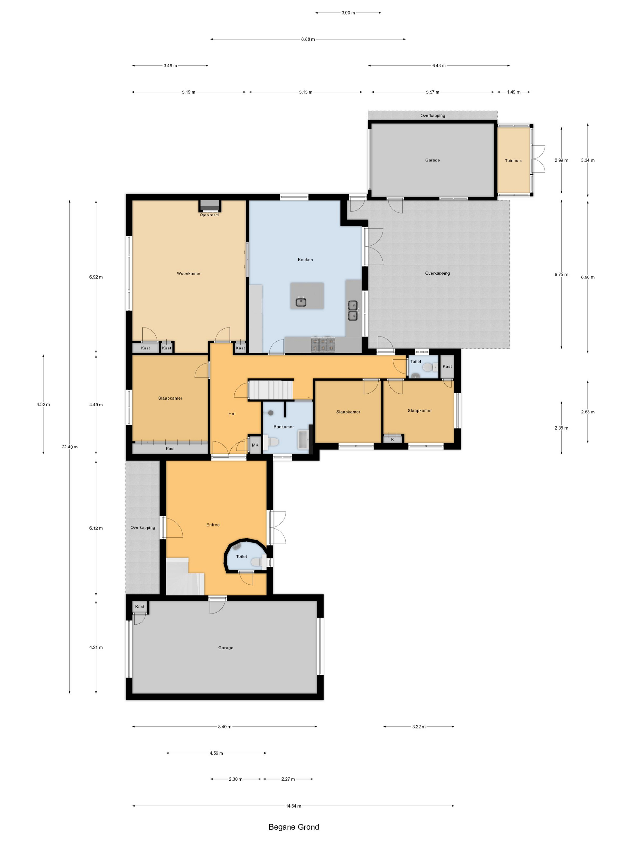 Bouwjaar: 1966. Inhoud ca. 1.427 m3. Woonoppervlakte ca. 315 m2 (excl. 2 garage van 35 en 24 m2 en de kelder van ca. 19 m2). Overkapping van ca. 44 m2. Perceeloppervlakte 988 m2.