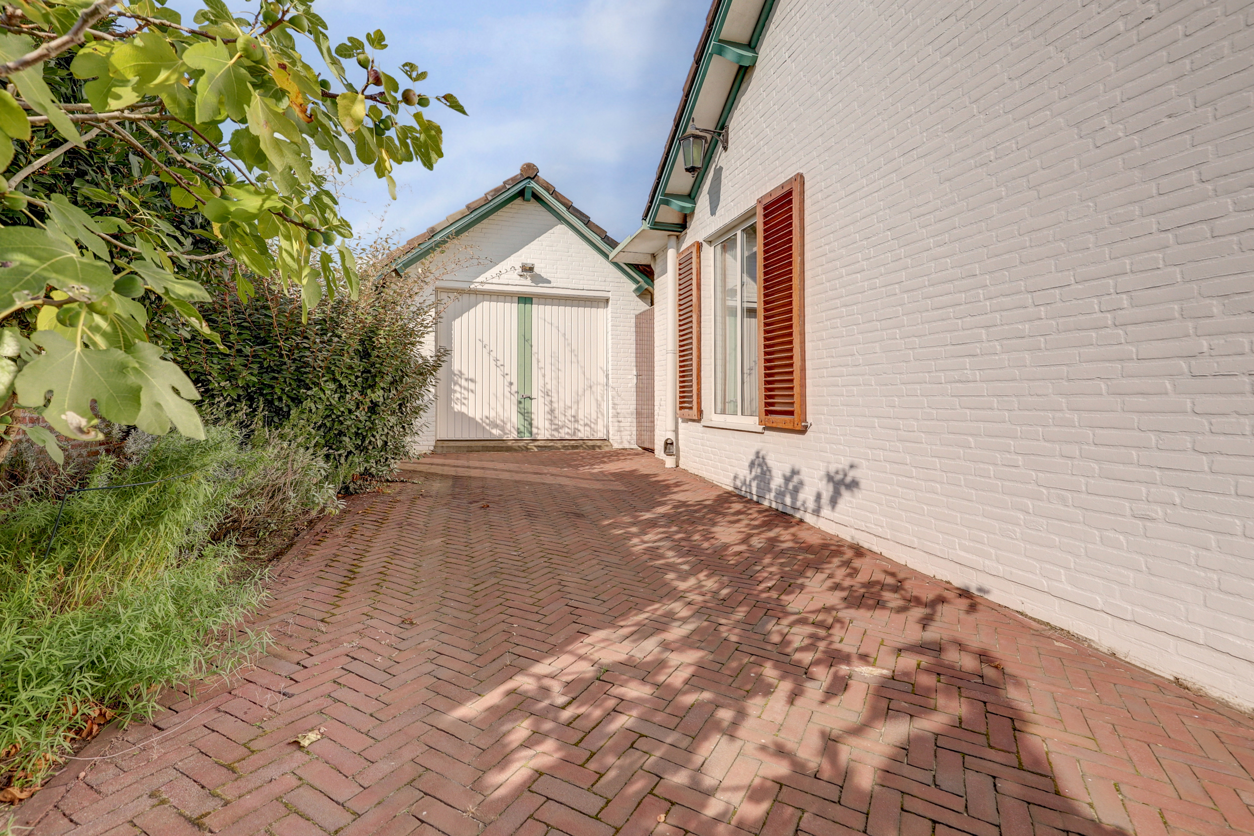 De zeer royale inpandige garage heeft een oppervlakte van ca. 35 m2 en is bereikbaar vanuit de entree en voorzien van elektrische segmentdeur naar de oprit en de achtertuin, opstelplaats voor de Cv-ketel (Nefit, 1991), verhoogde wasmachine en droger met aansluiting, wasbak met koud en warm water, verwarming en vaste kast.
