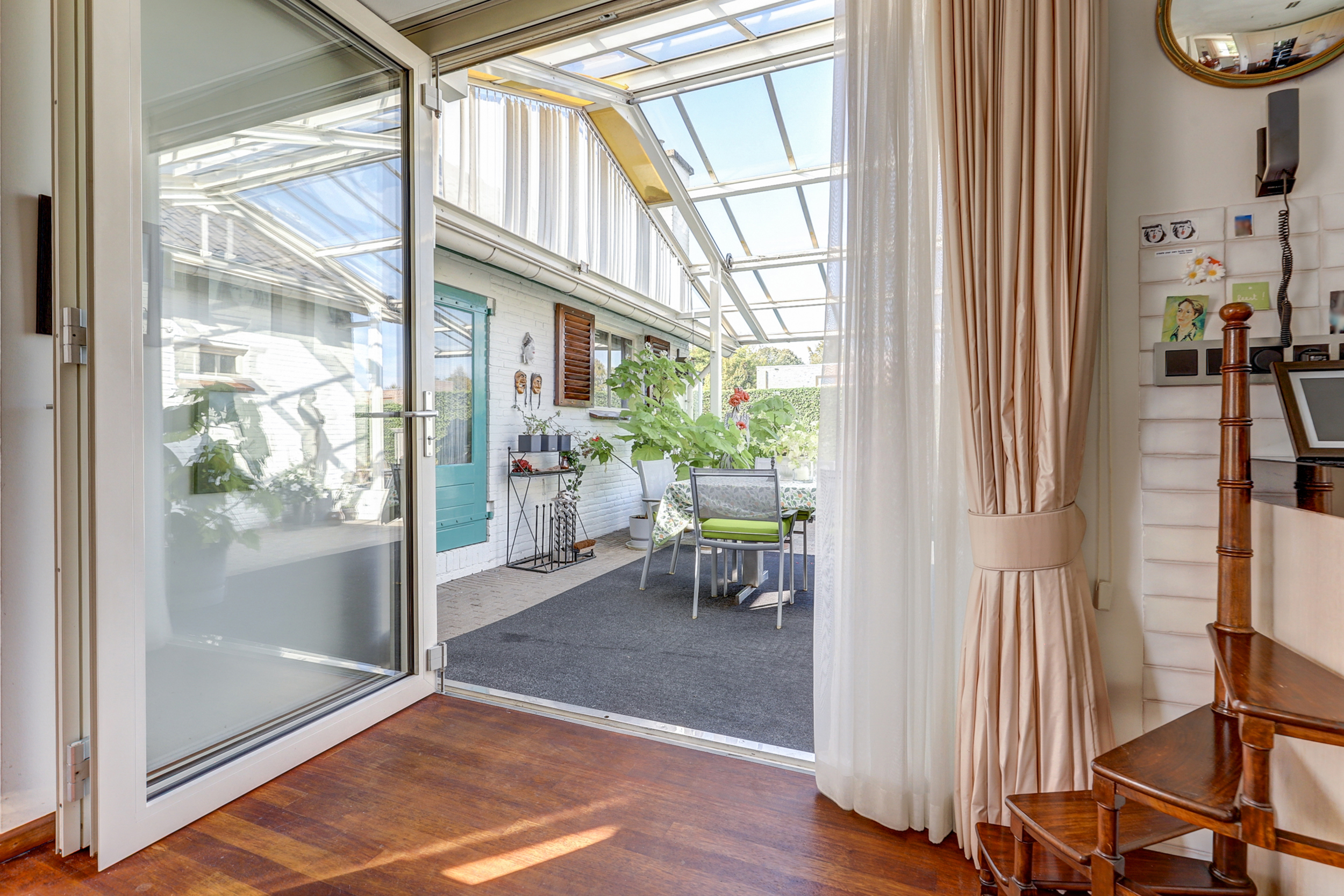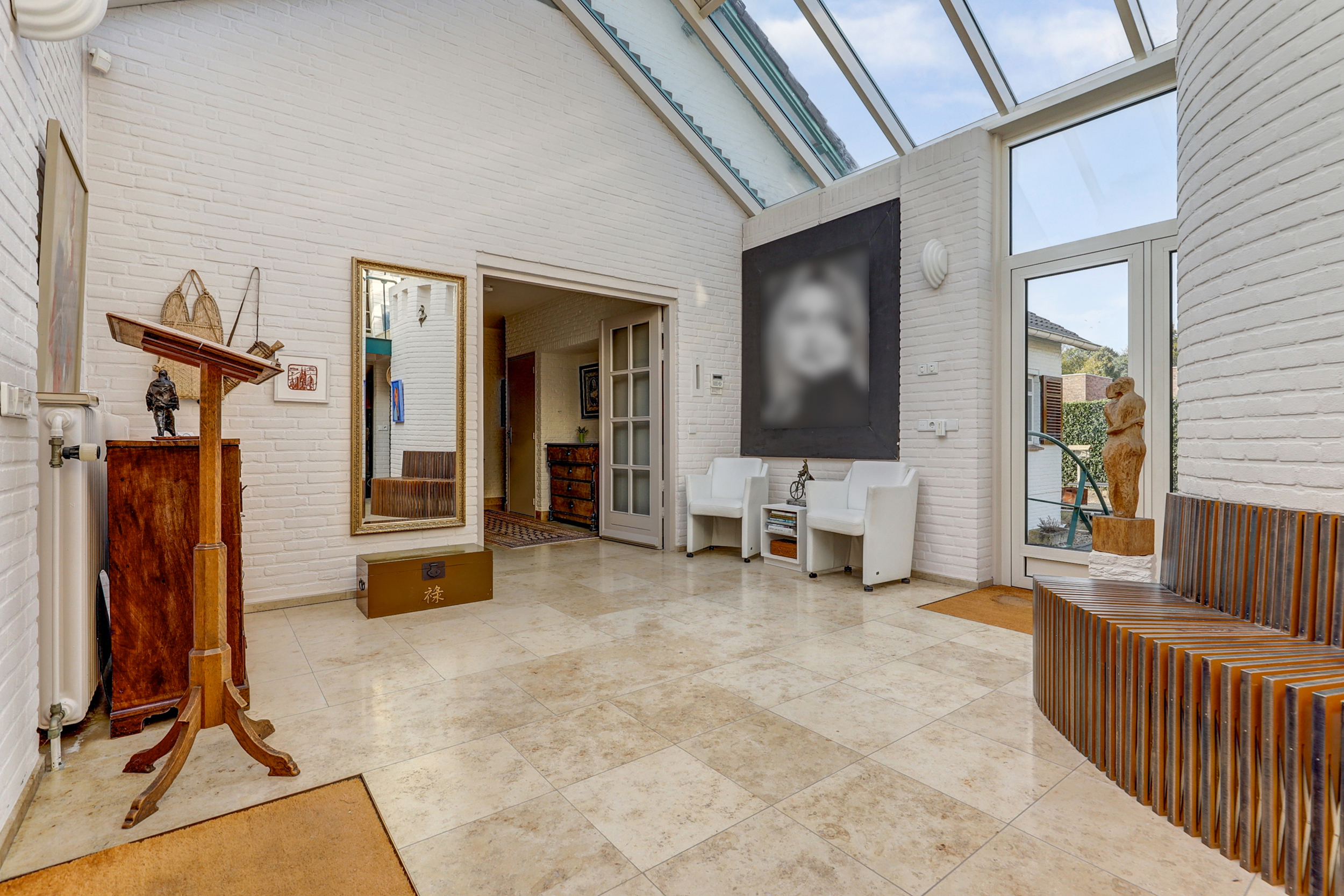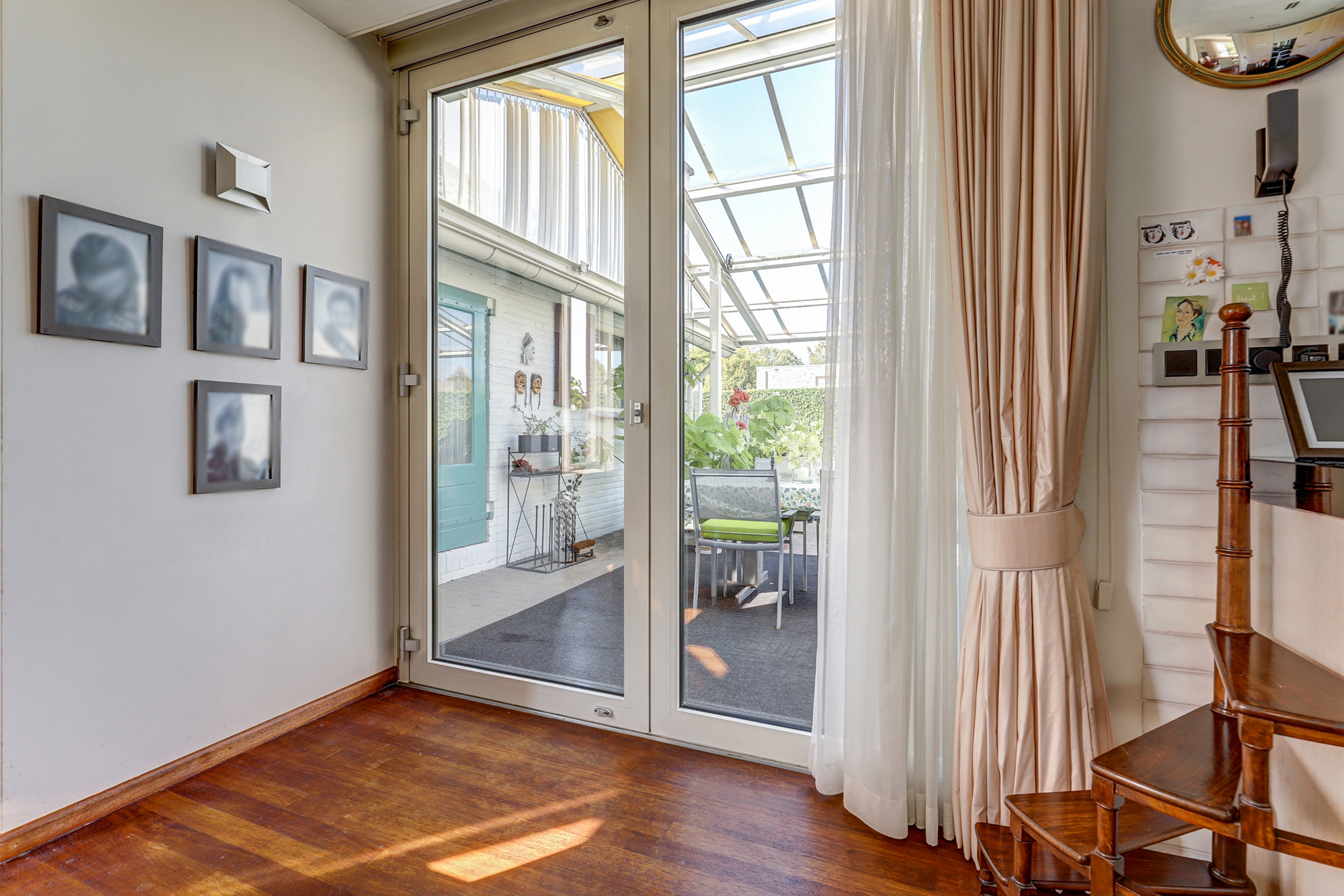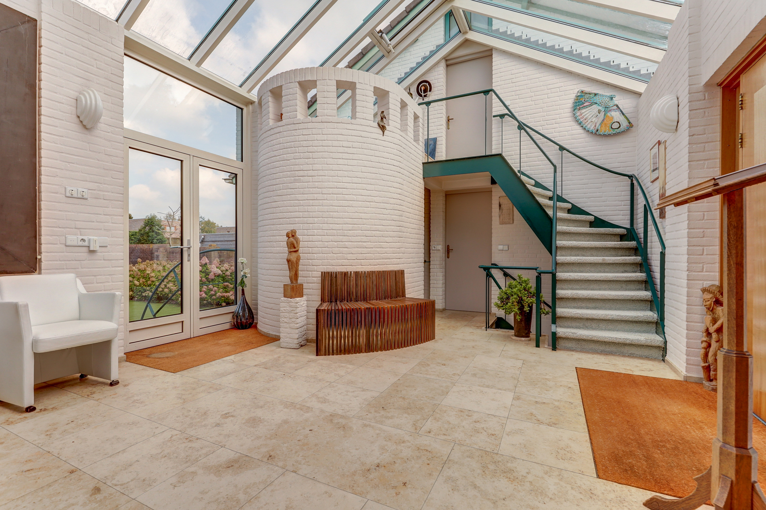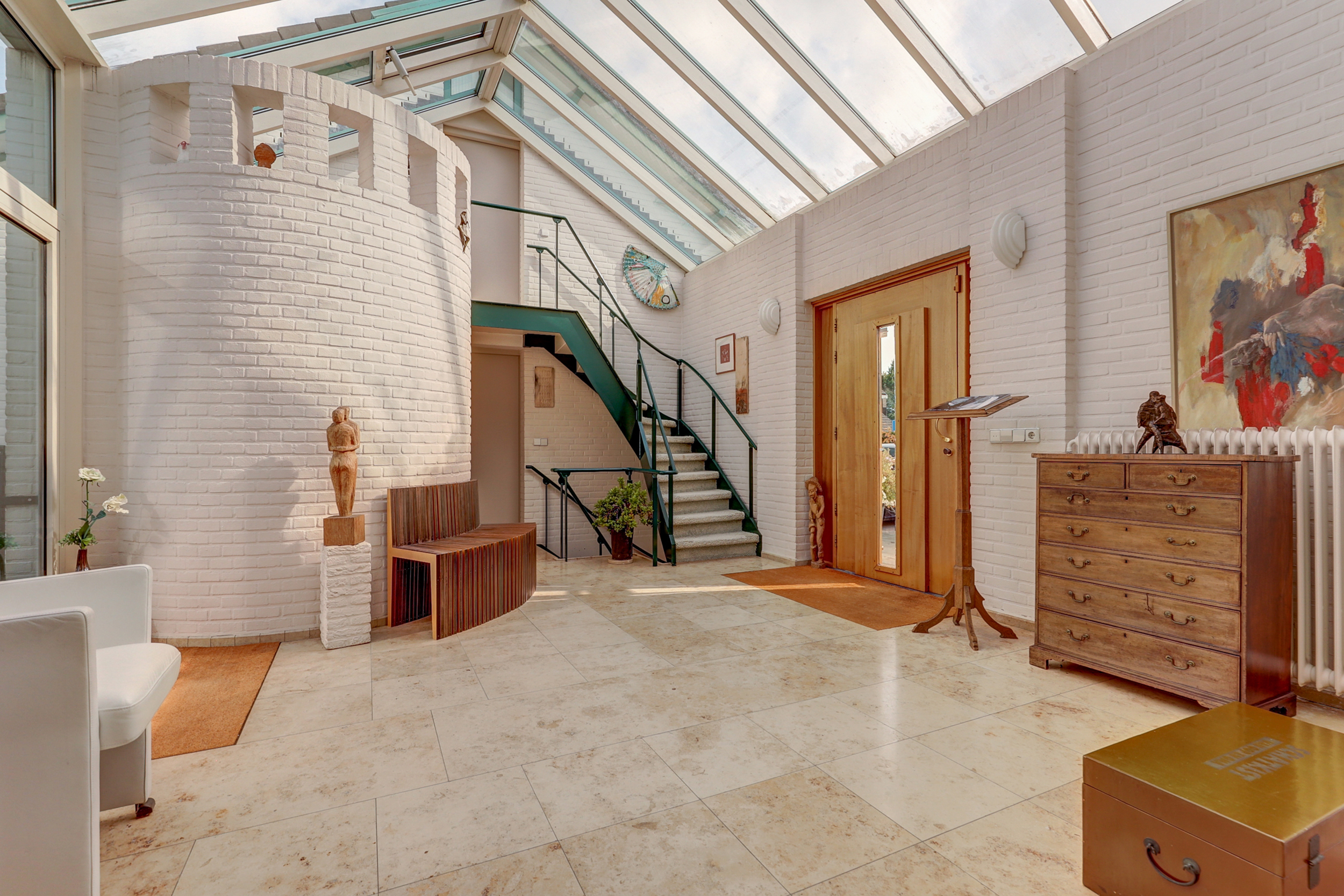 Binnenkomend door een robuuste mooie voordeur en de moderne entree treed je een zee van licht tegemoet en door de mooie hoogte en het sfeervolle glazen dak is dit wel een echt een binnenkomst. De entree/hal heeft een mooi natuursteen vloer (Jura marmer), openslaande deuren naar de achtertuin, garderobe nis.