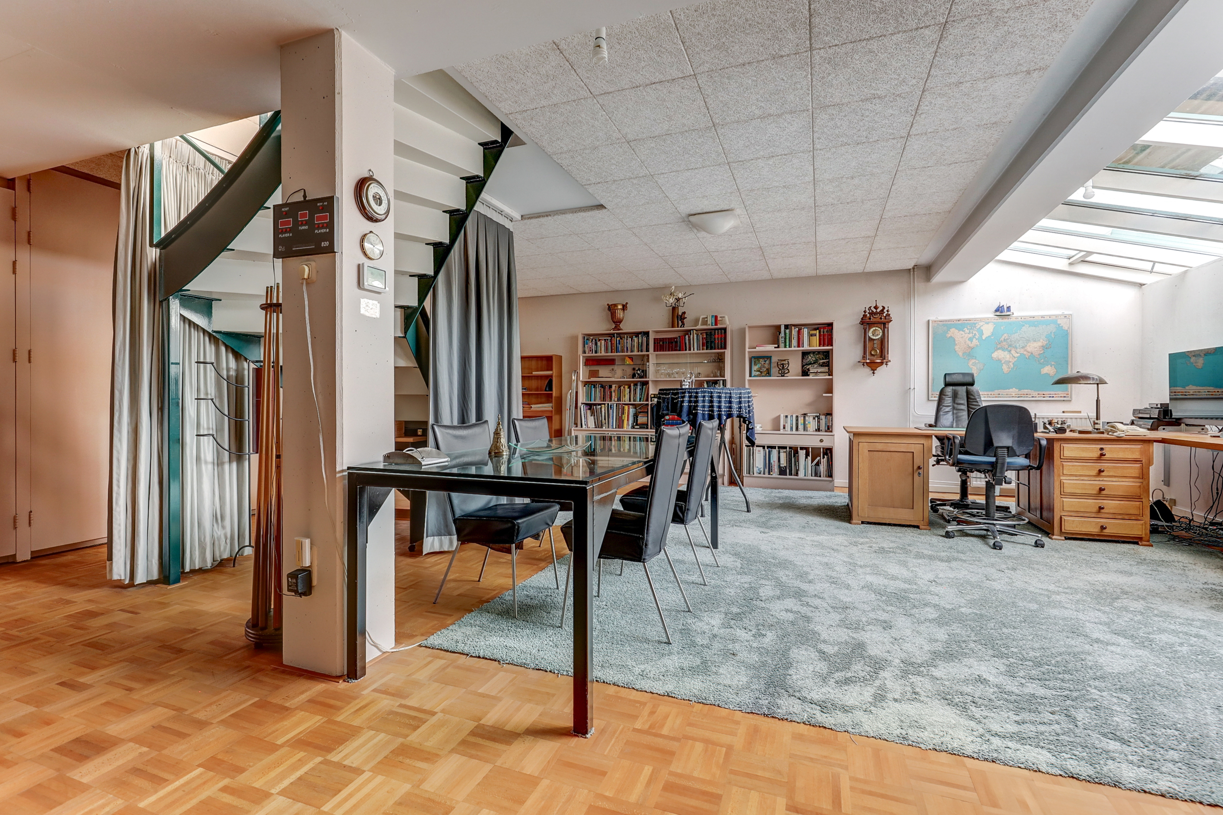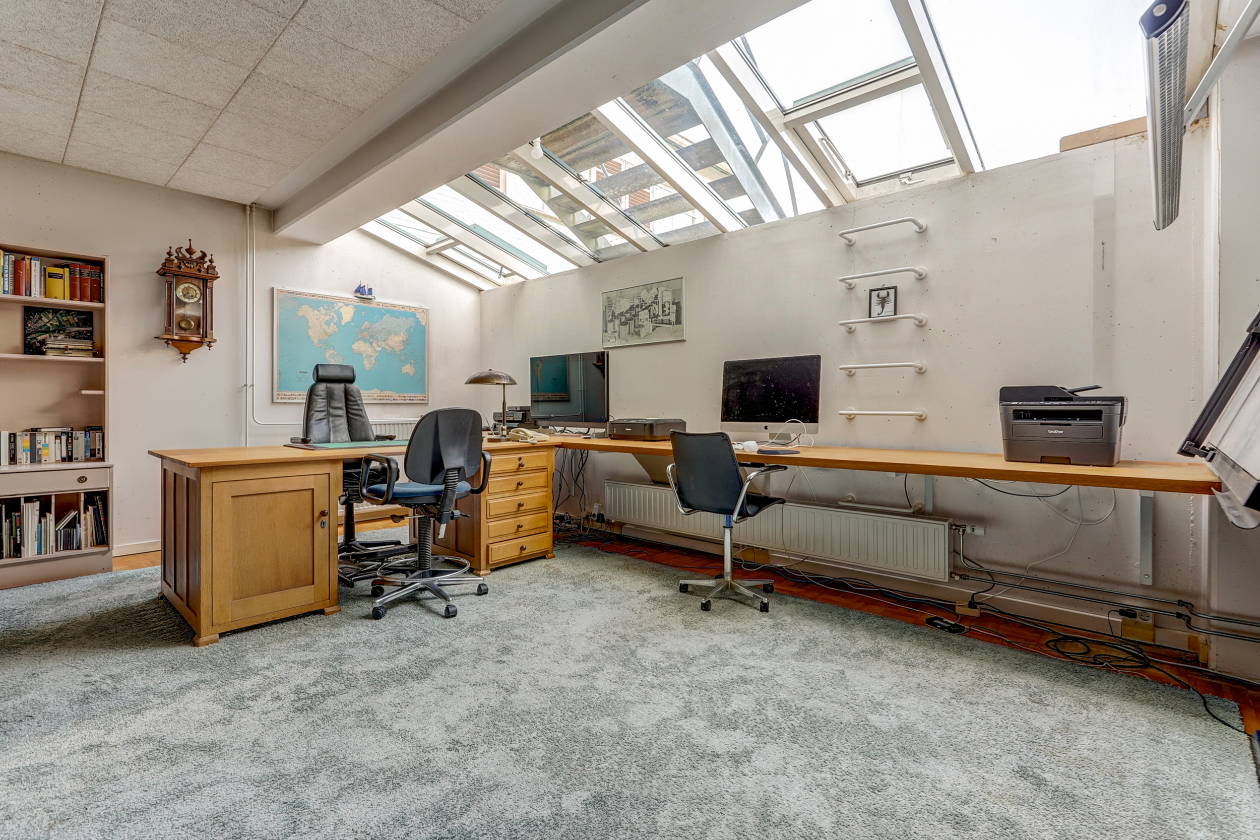 Zeer royale multifunctionele ruimte van maar liefst ca 81. m2 met een hoogte van 2,35 tot 2,50 meter en daglicht via mooie grote aluminium lichtstraat. De ruimte is perfect te gebruiken als kantoor, praktijkruimte aan huis of als hobbyruimte. Gezien de grootte is een combinatie van functies ook zeker mogelijk. De ruimte heeft een mooie grote aluminium lichtstraat, 10 vaste kasten, pantryblokje met wasbak met koud en warm water, parketvloer en het biljart blijft achter.