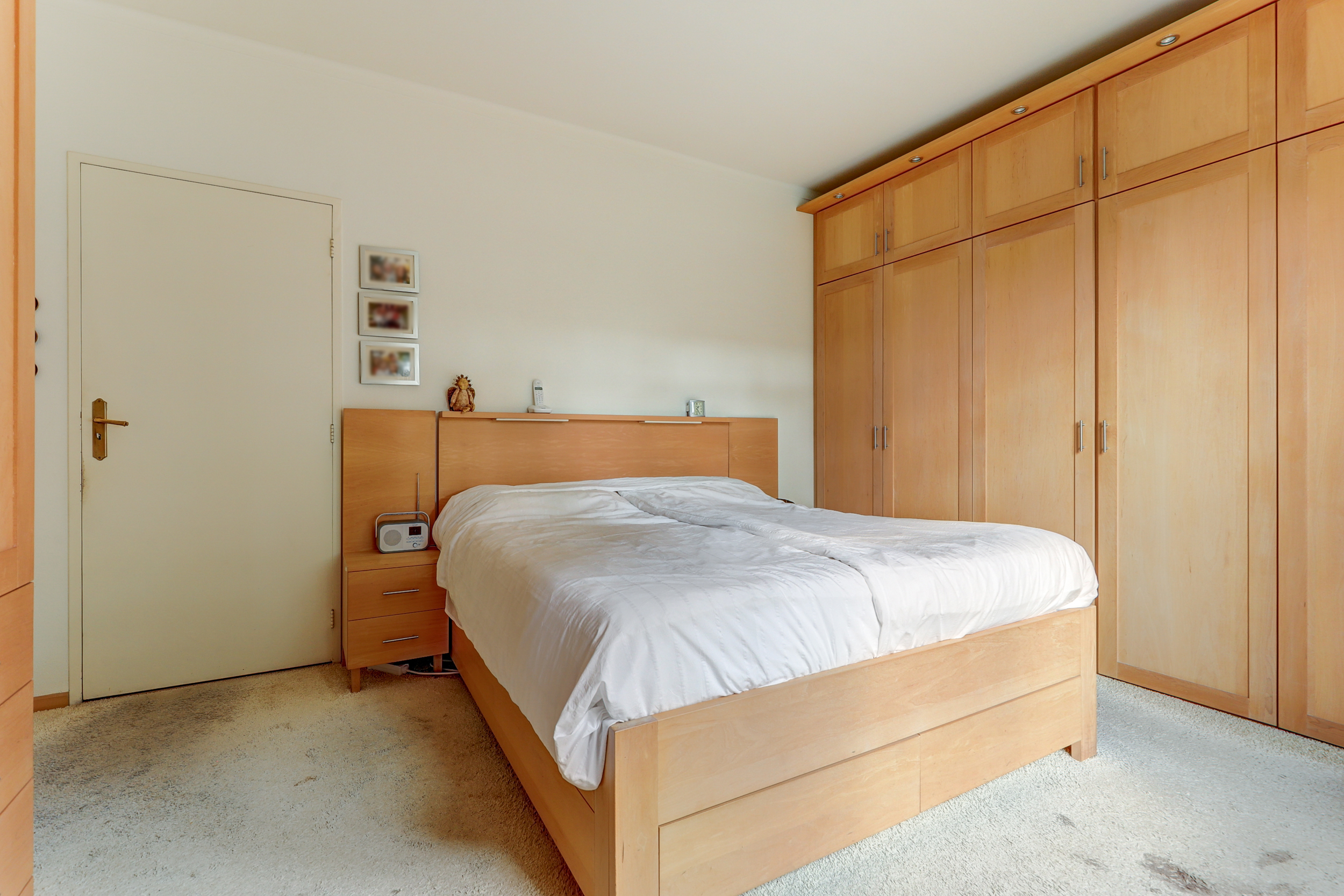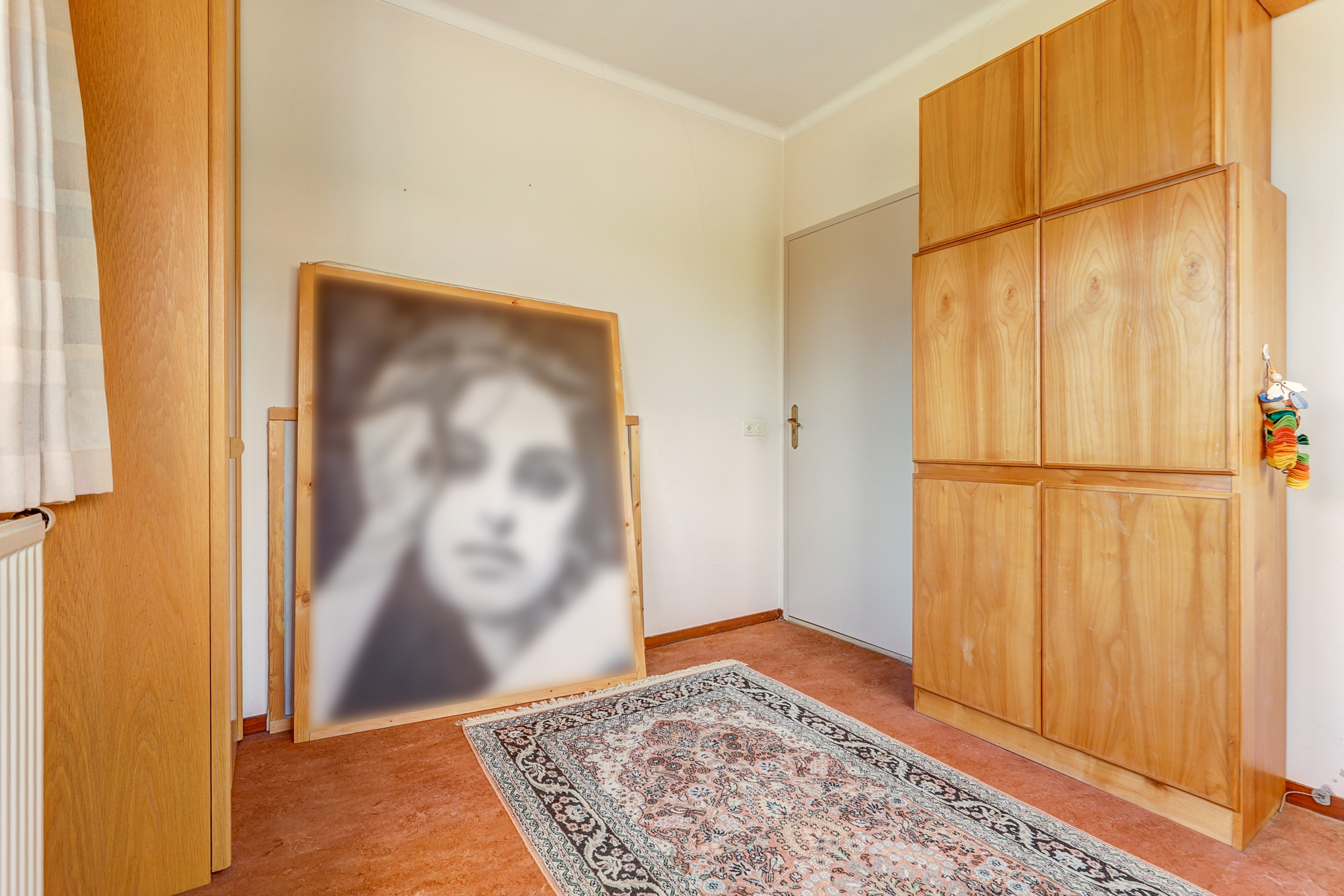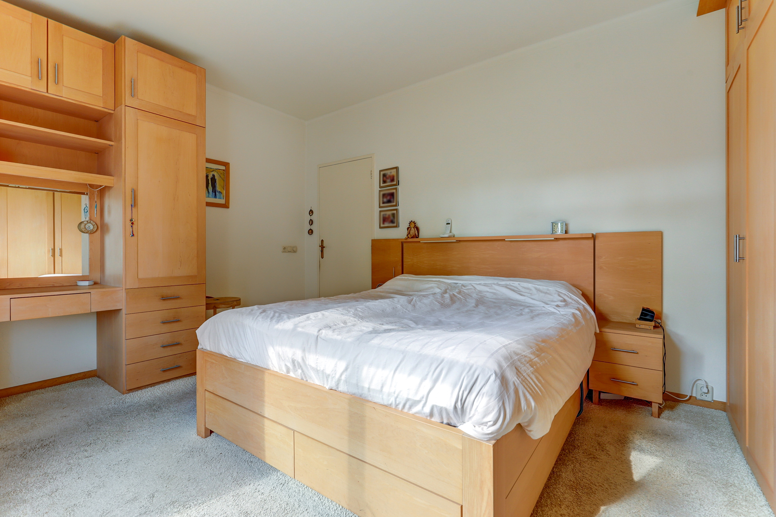 Via de trapgang kom je op de overloop met dakvenster, knieschotten voor extra bergruimte en toegang tot de 2 slaapkamers. De grootste slaapkamer is zeer royaal en heeft 2 dakvensters, vaste kasten, wastafel met koud en warm water en knieschotten. De 2de slaapkamer heeft een dakvenster en een vaste kast die toegang geeft naar een royale bergruimte. Deze bergruimte heeft een hoogte van ca. 1,30 m.