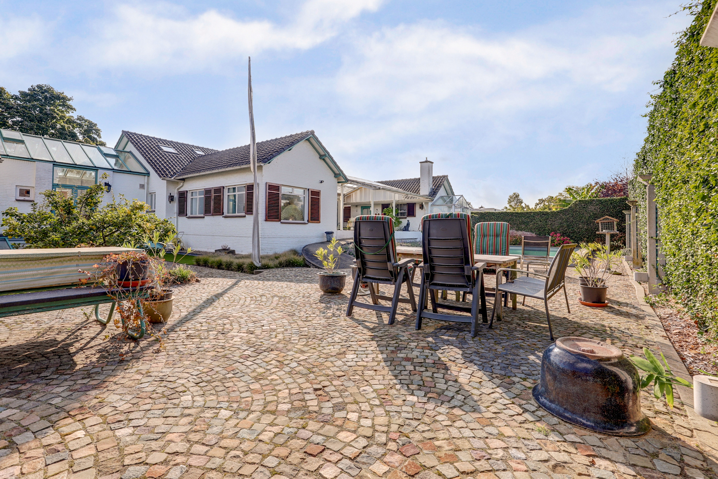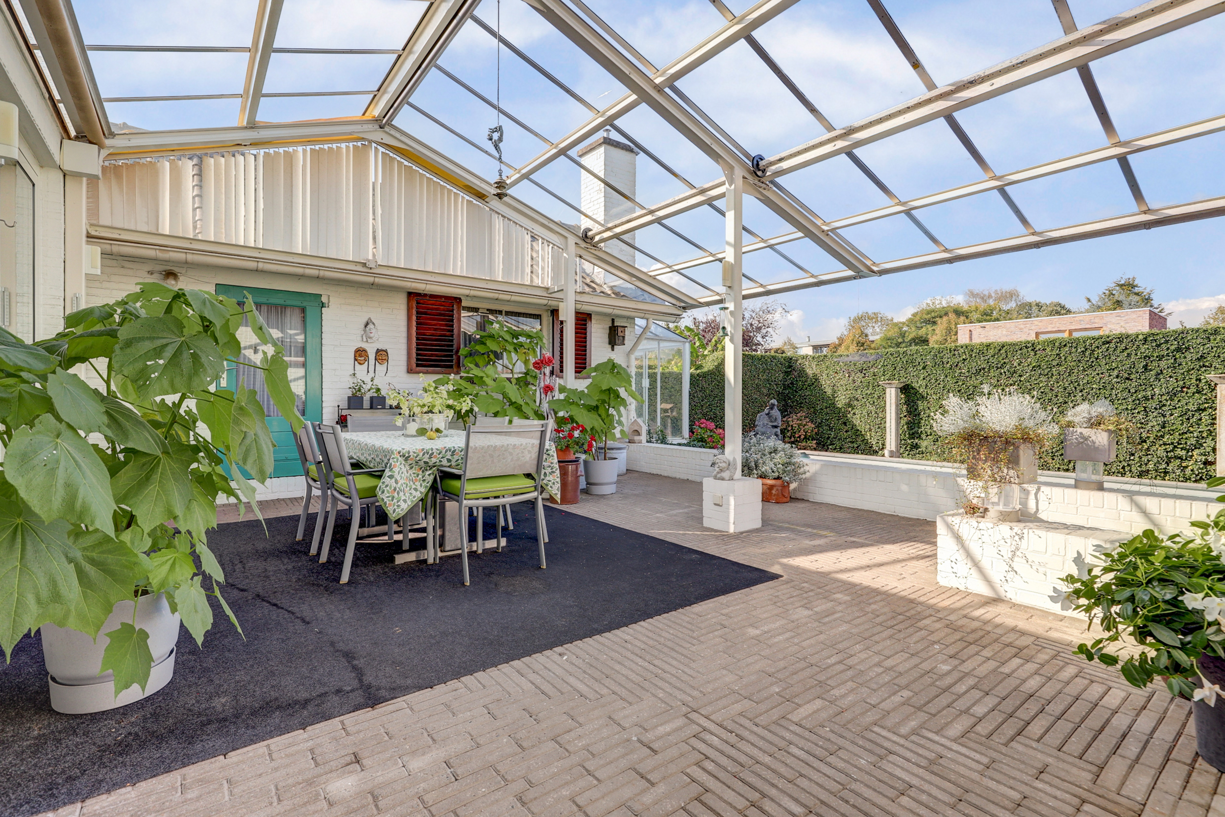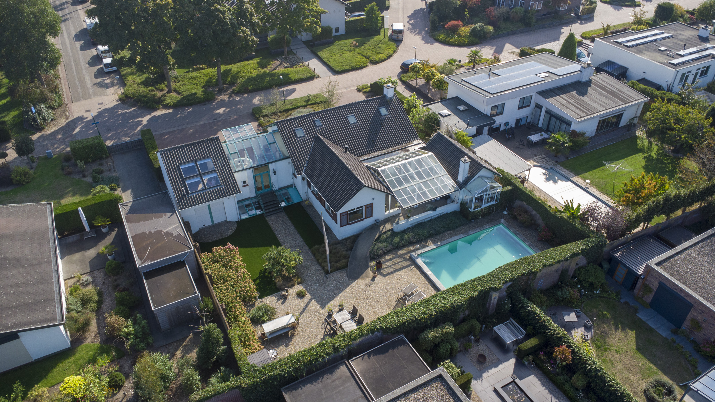 Het royale terras met overkapping van ca. 44 m2 is voorzien van elektrapunten en wateraansluiting en kijkt prachtig uit over de tuin en het zwembad. In de tuin zijn meerdere terrassen aanwezig, zodat je op elk moment van de dag kunt genieten van de zon of de schaduw. De royale voortuin is bloemrijk, netjes en onderhoudsvriendelijk aangelegd en voorzien van 2 royale opritten, zodat je met meerdere auto’s op eigen terrein kunt parkeren.