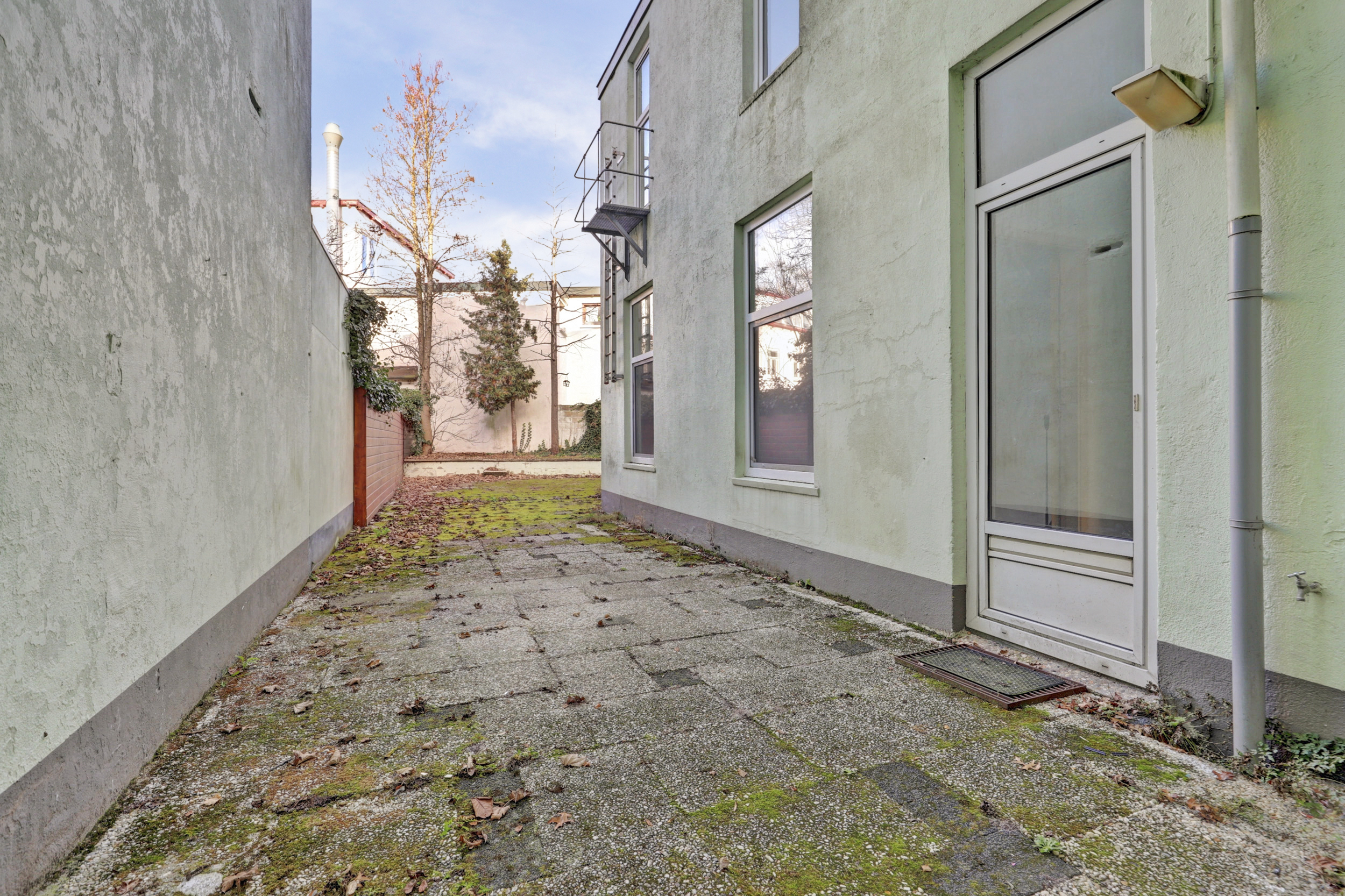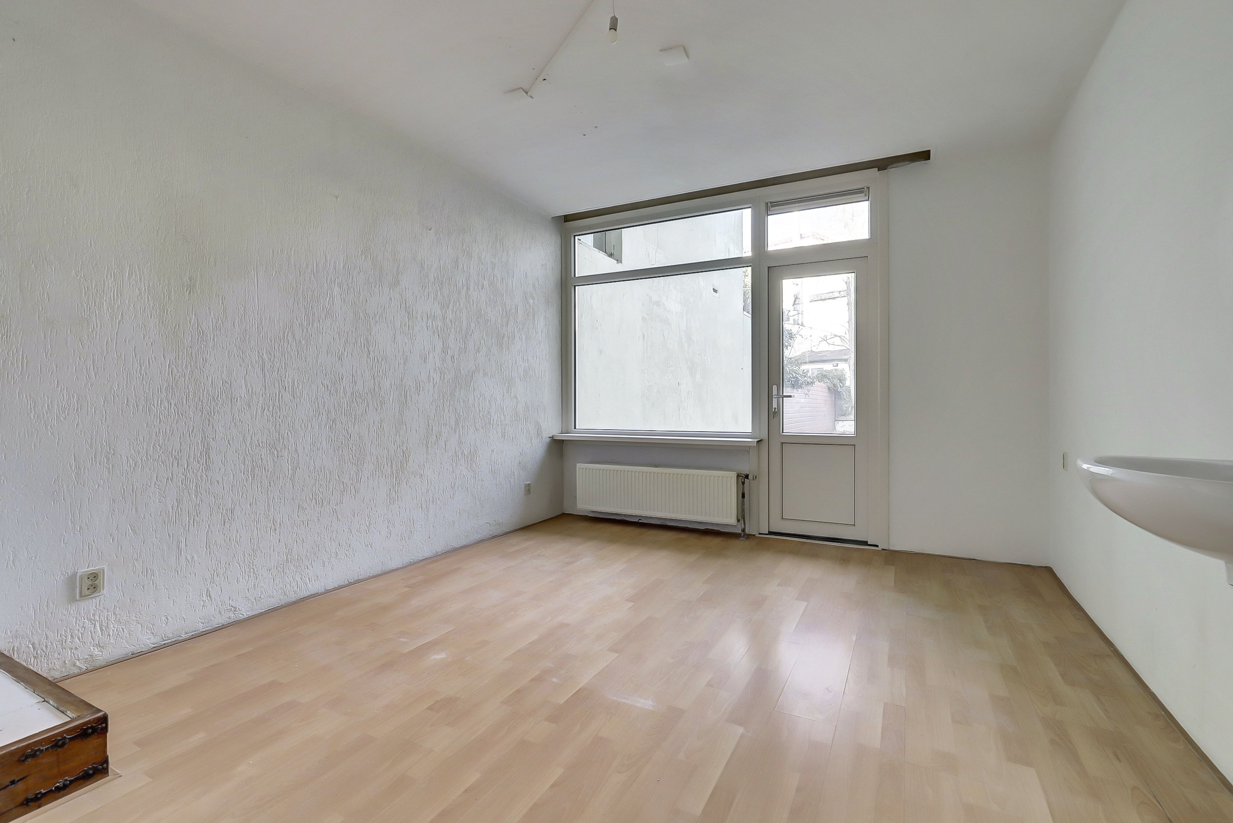Aansluitend bereik je een slaapkamer met wastafel en toegang tot de achtertuin. Dankzij de directe aansluiting op de woonkamer leent deze kamer zich perfect voor een royale, open leefruimte.