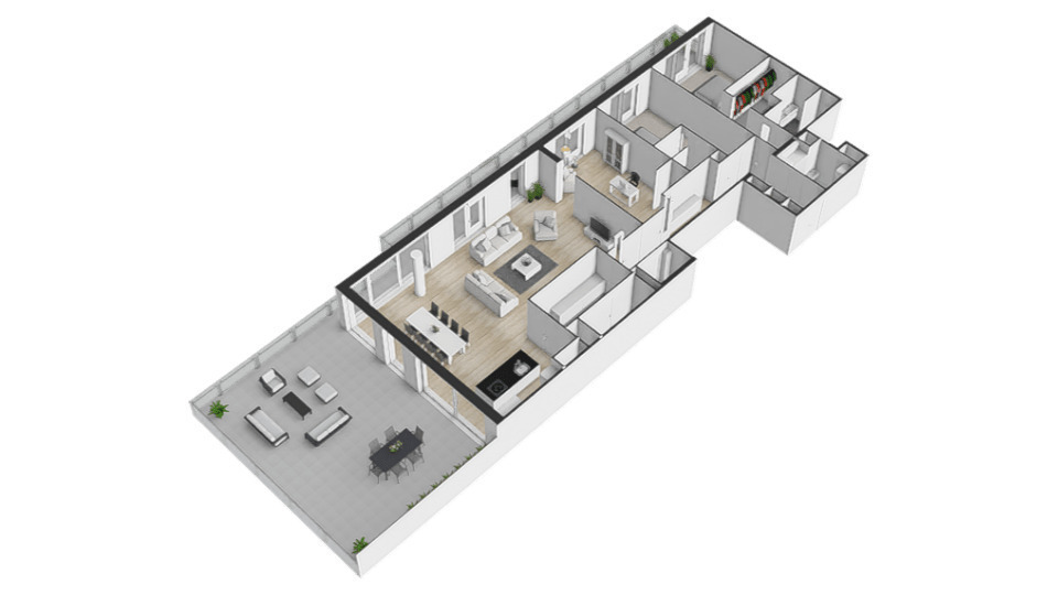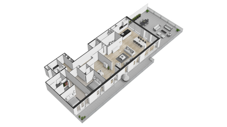 - Het volledige penthouse is voorzien van elektrisch bedienbare screens