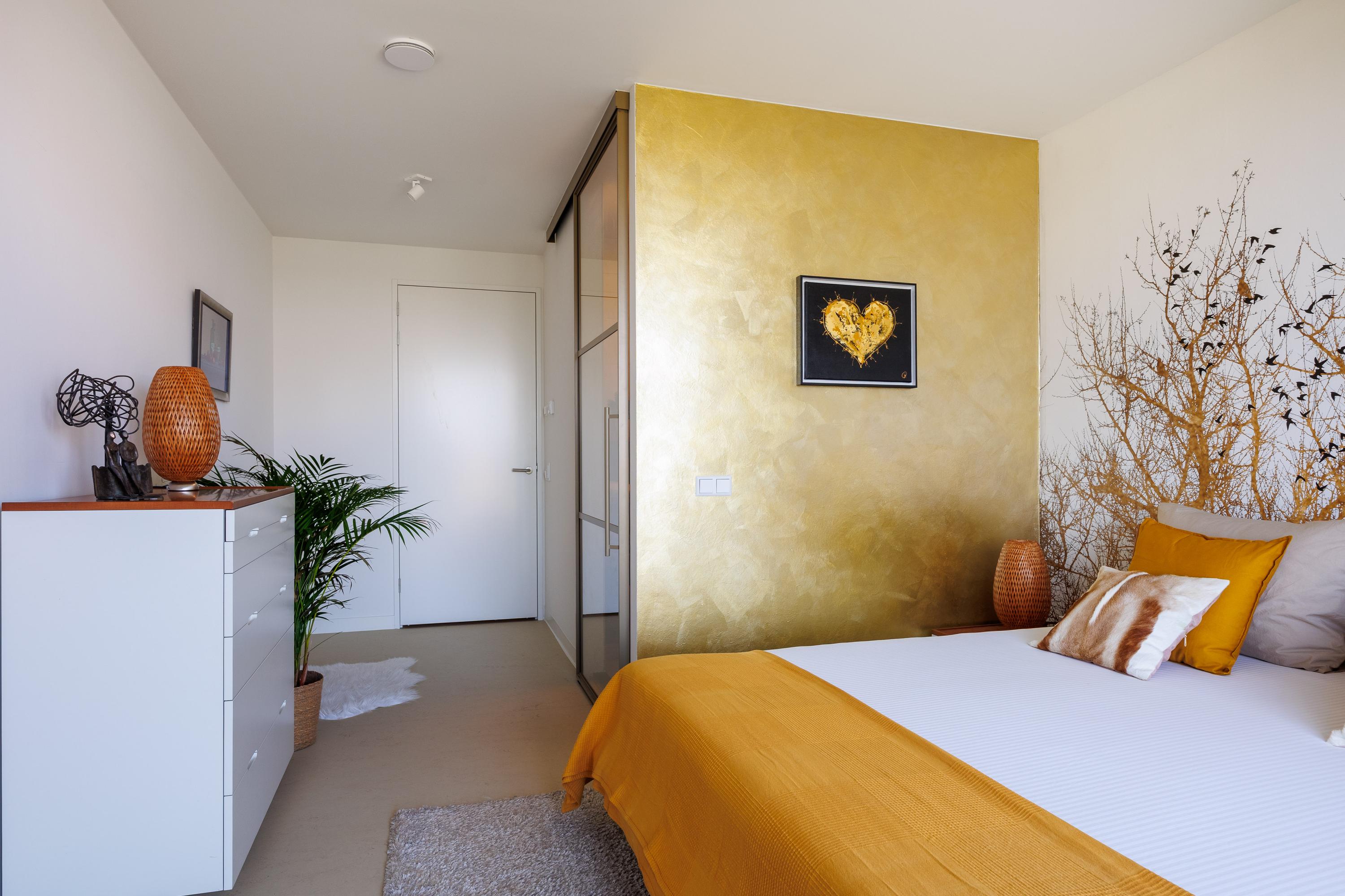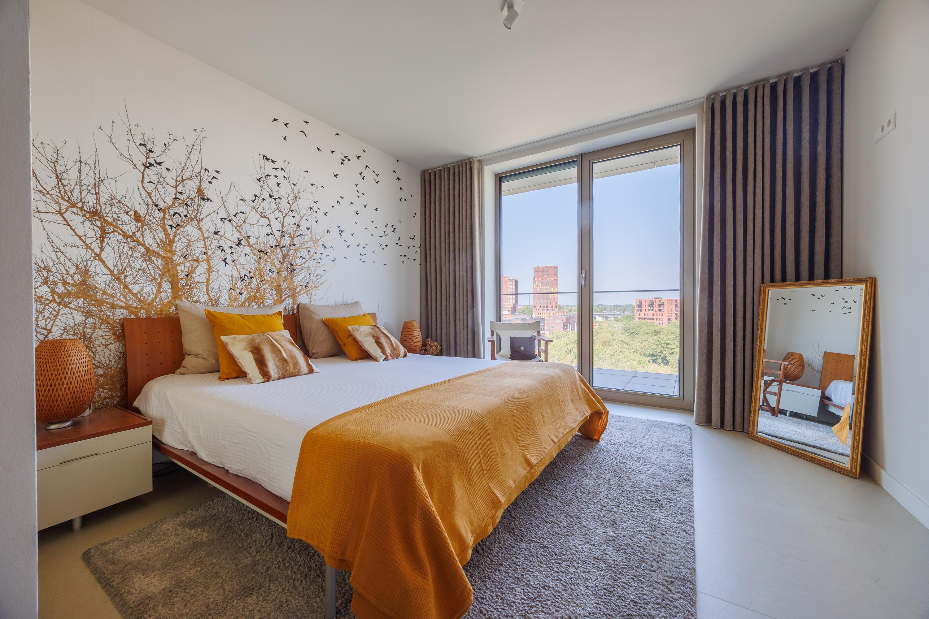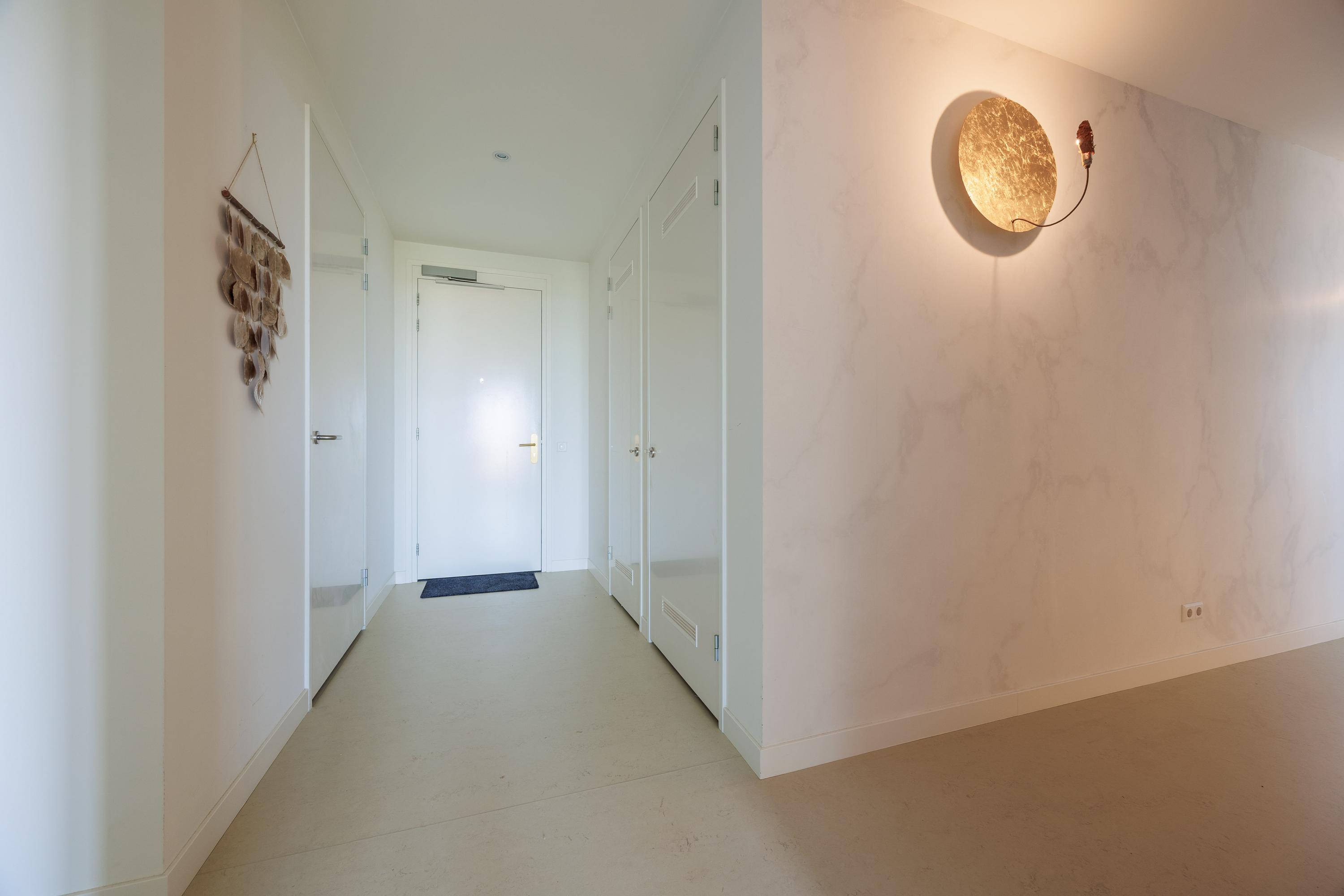 - Het appartement is voorzien van glasvliesbehang zonder structuur, gedeeltelijk afgewerkt fotobehang