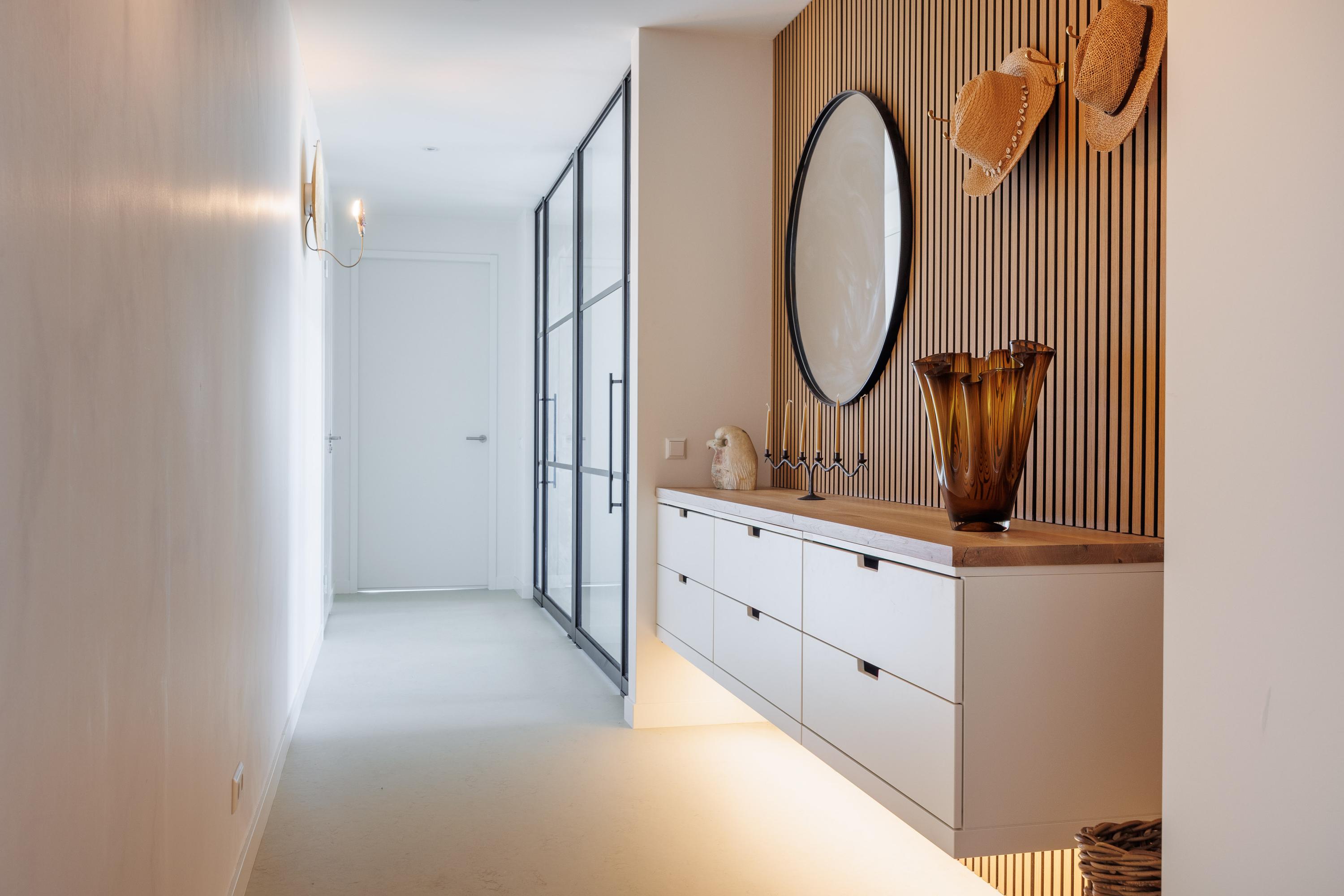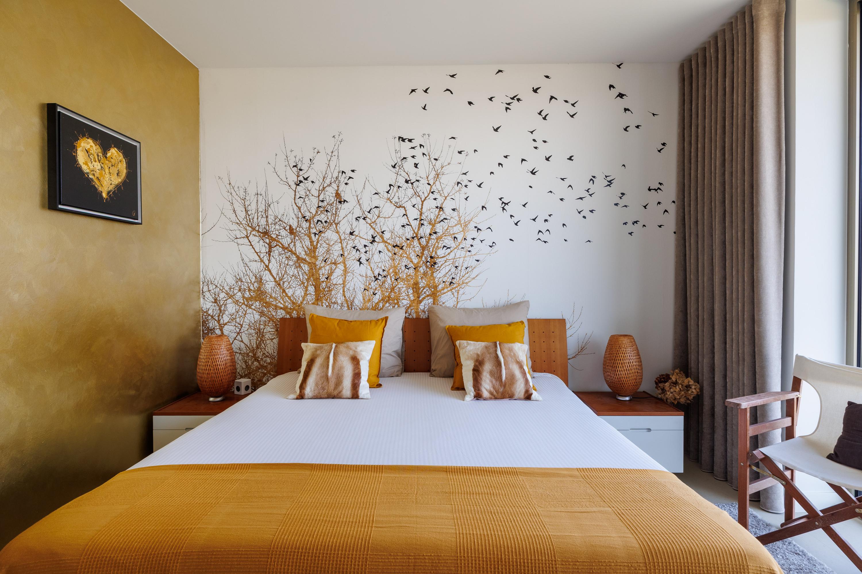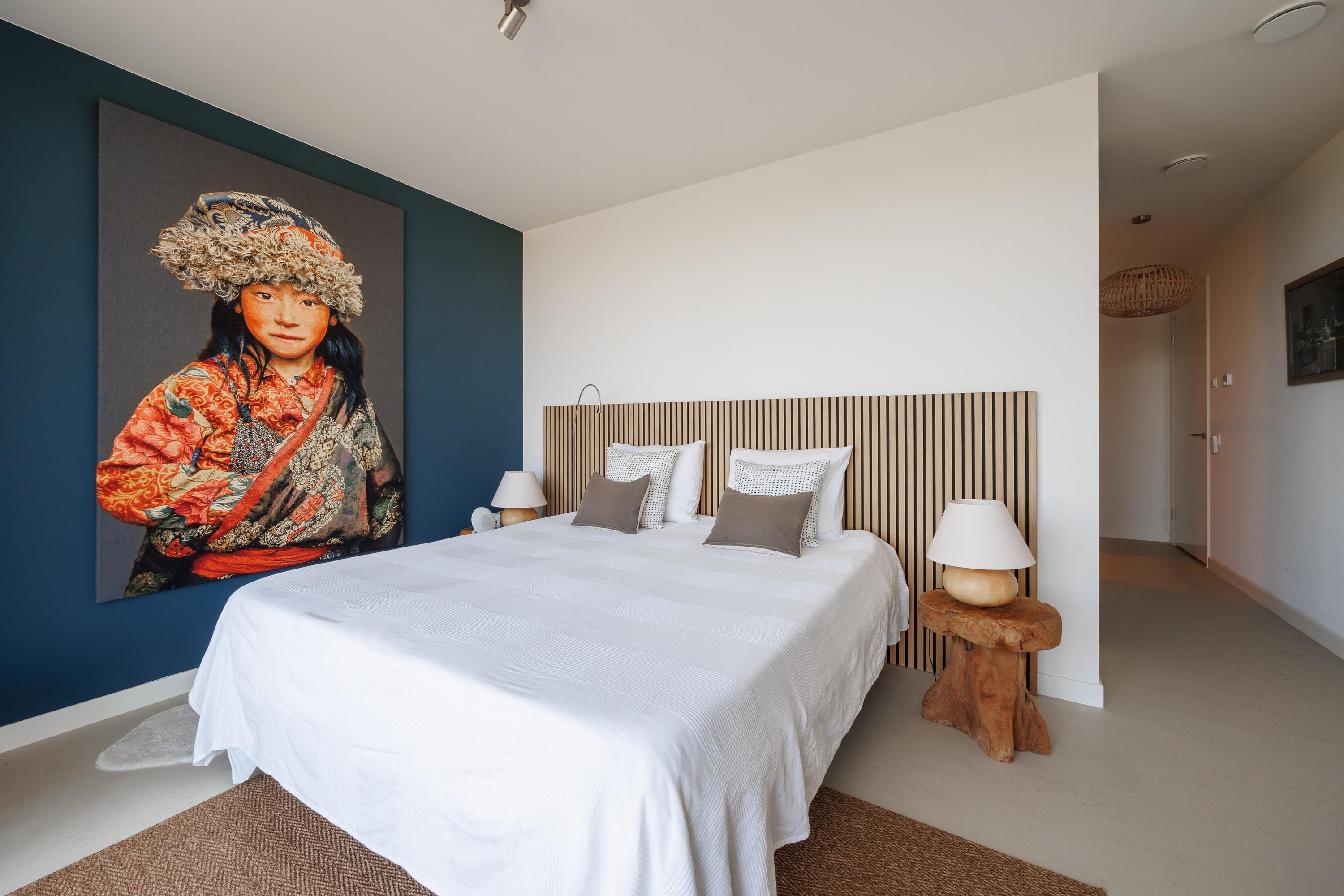 - Het appartement is voorzien van glasvliesbehang zonder structuur, gedeeltelijk afgewerkt fotobehang