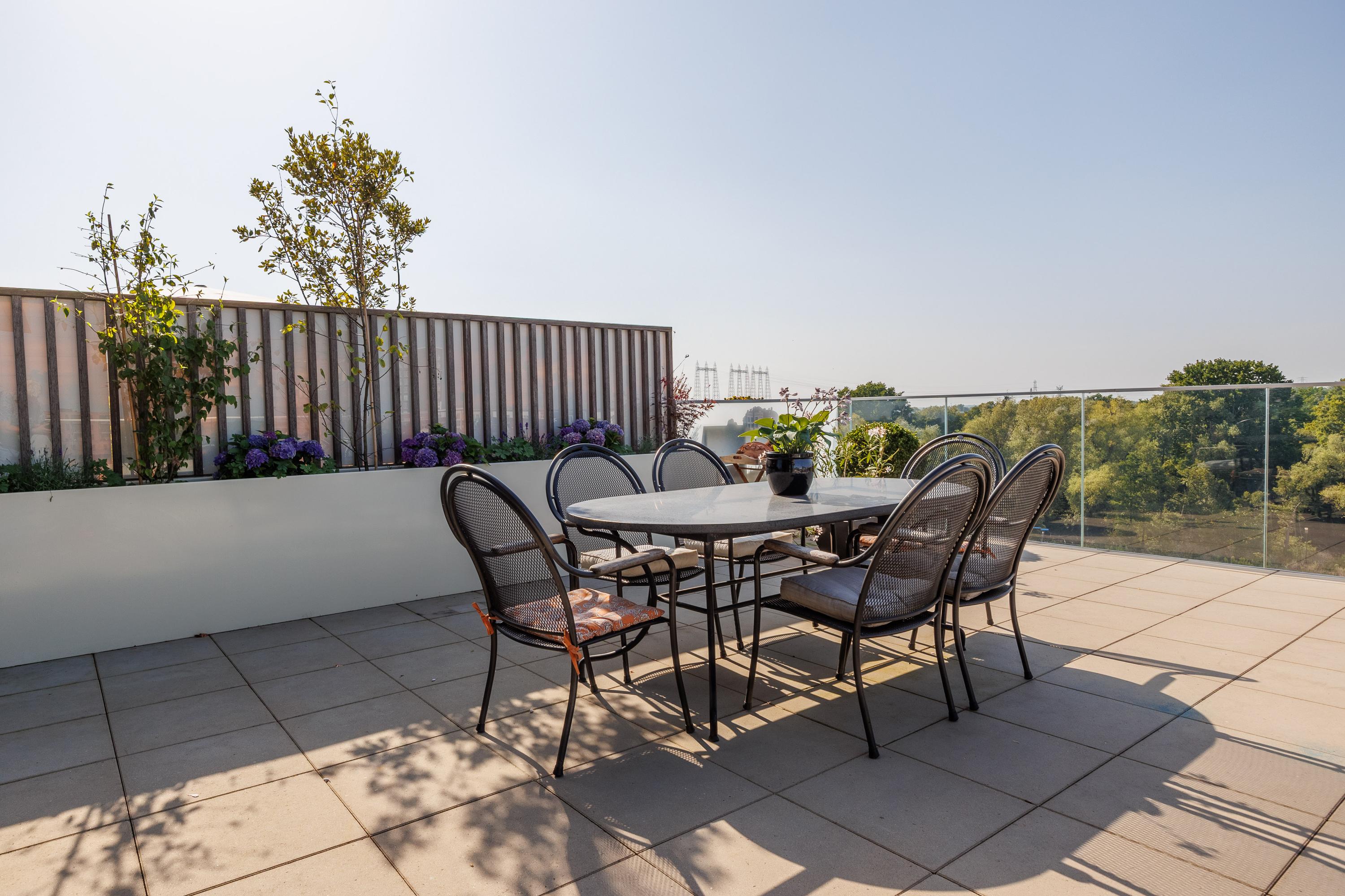 Op korte termijn zal de boomgaard worden ingericht als stadspark. Dus maximale privacy en geen inkijk vanuit andere appartementen of de omgeving. Op zonnige dagen kun je vanuit het appartement of het terras heerlijk buiten dineren en lang genieten van prachtige zonsondergangen.
