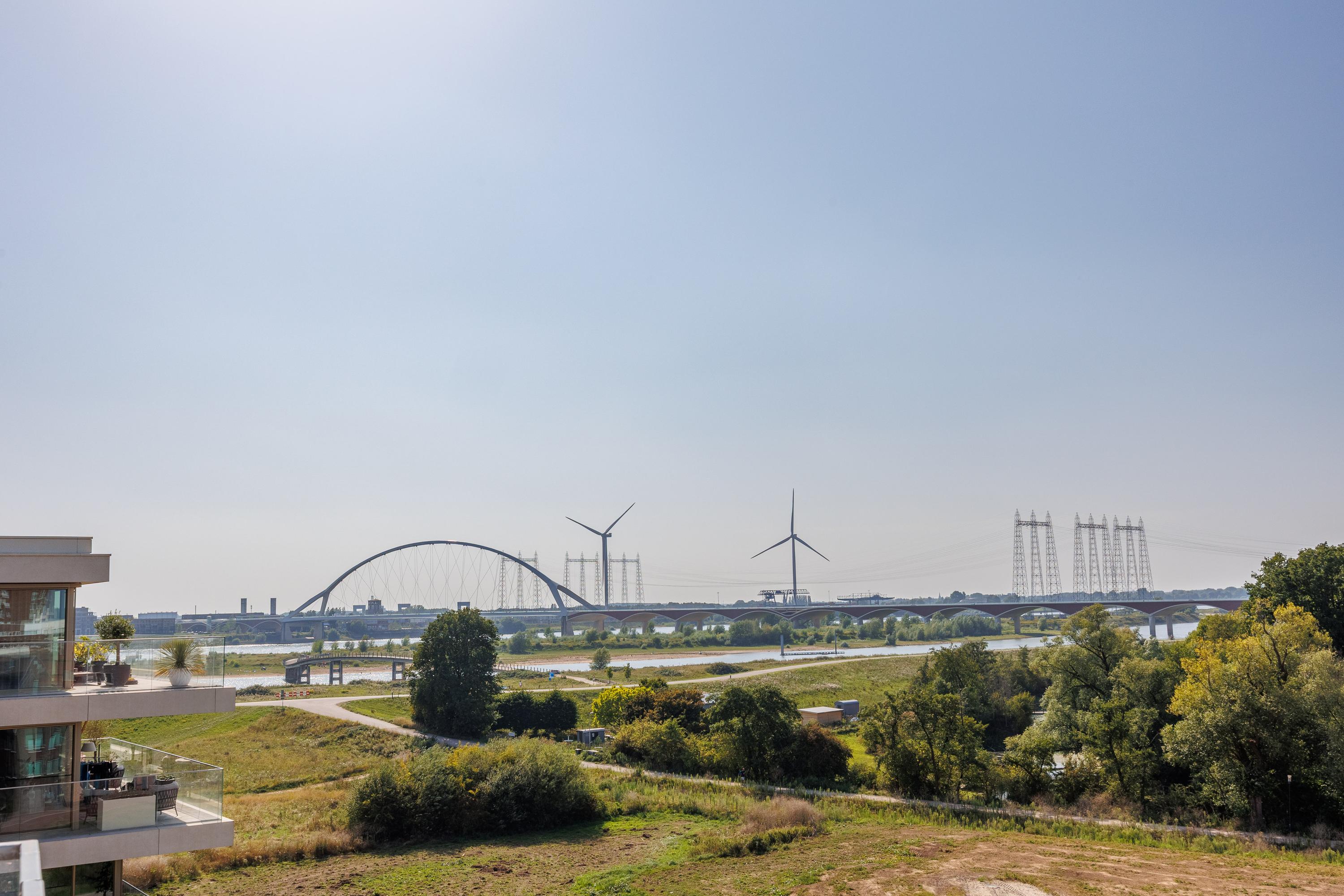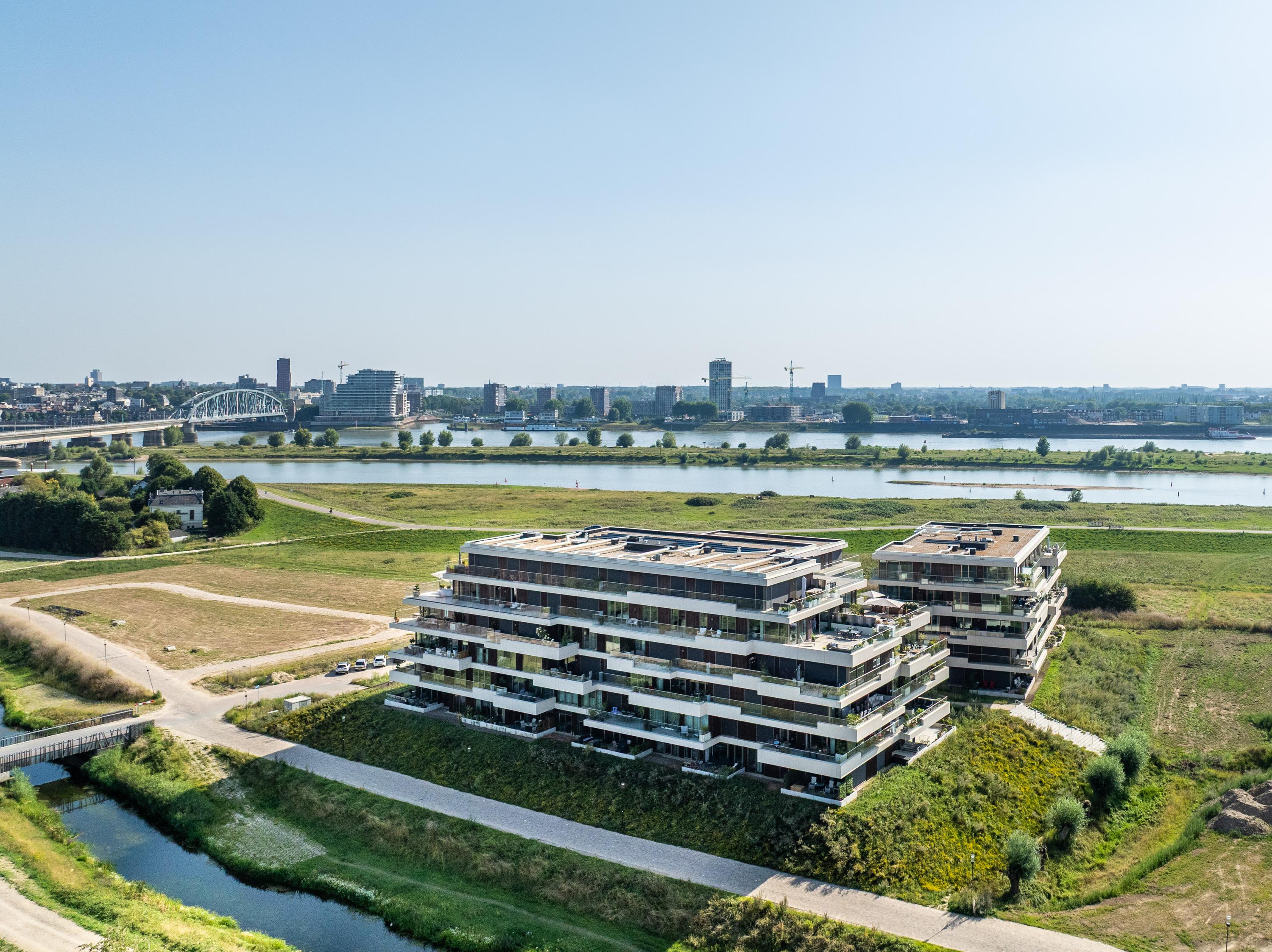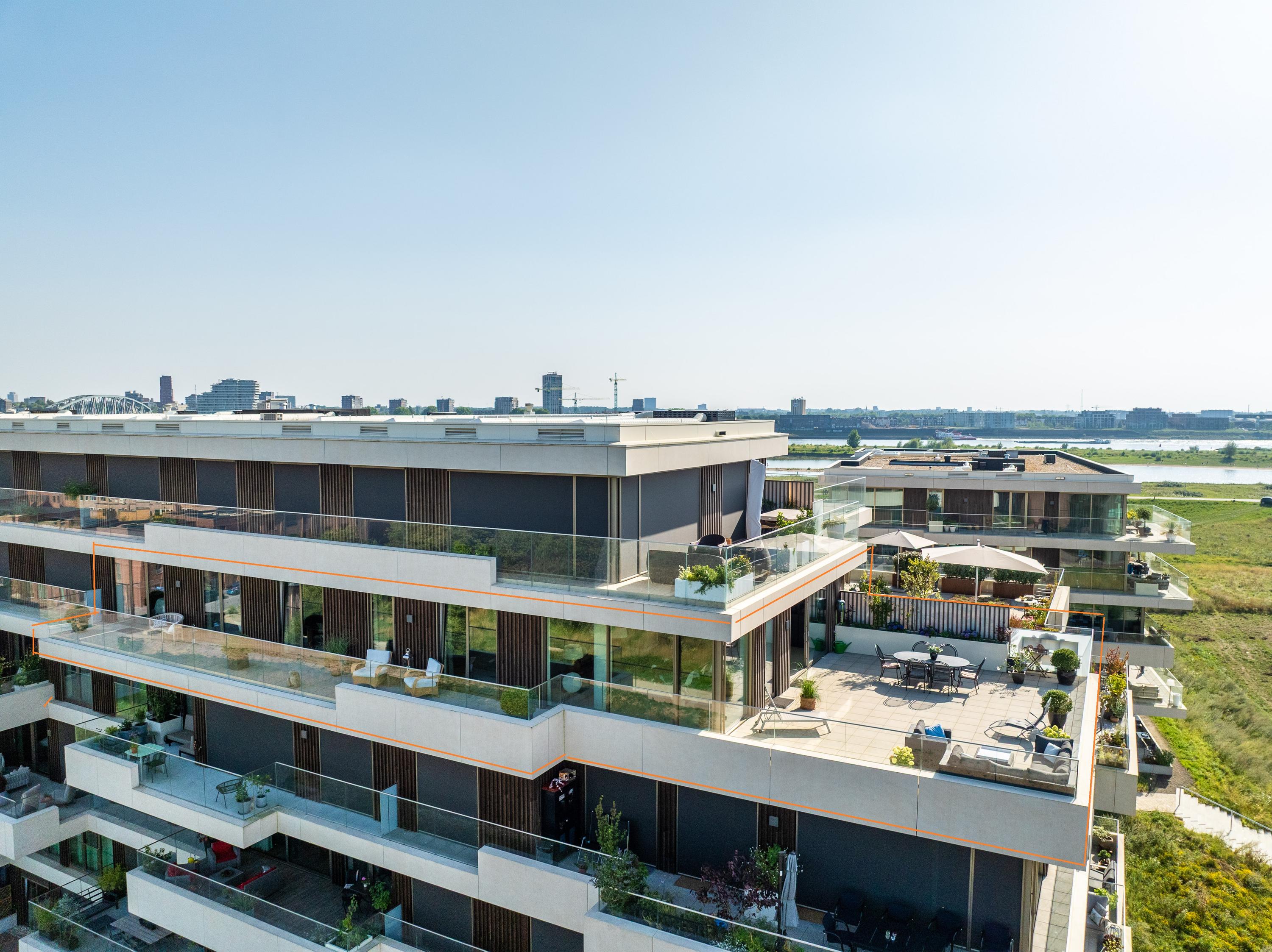 Ontdek het toppunt van luxe en comfort in dit schitterende penthouse. Gelegen in de dijkzone van de Waal, het complex gelegen direct aan de Spiegelwaal, biedt dit penthouse alles wat je hart begeert. Het "LOYD-complex" is eind 2023 opgeleverd en kenmerkt zich door zijn fraaie architectuur, met prachtige terrassen voorzien van glazen terraswanden, waardoor je vanuit dit penthouse een prachtig uitzicht hebt op de Waal, de boomgaard en de nieuwe wijk Hof van Holland. Binnen en buiten zijn enorm met elkaar verbonden. Toch geniet je hier van volledige privacy, zonder directe omliggende bewoning of inkijk van buitenaf. Aan de noord/oostkant grenst het complex aan een singel en de boomgaard, met zicht op NS station Lent en het naastgelegen Van der Valk hotel. Parkeren doe je in de parkeergarage onder het complex, waardoor het uitzicht rondom prachtig en groen blijft.
