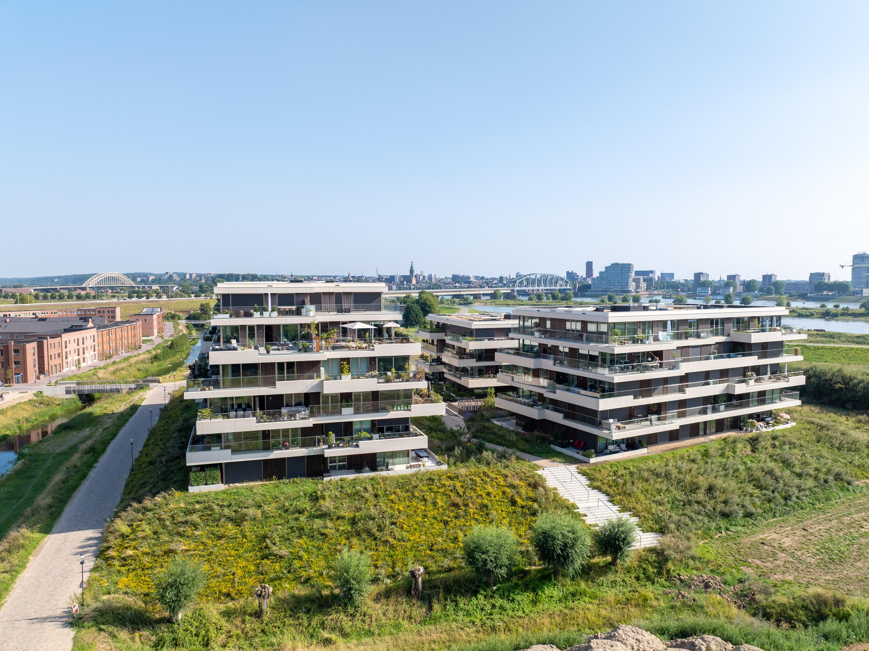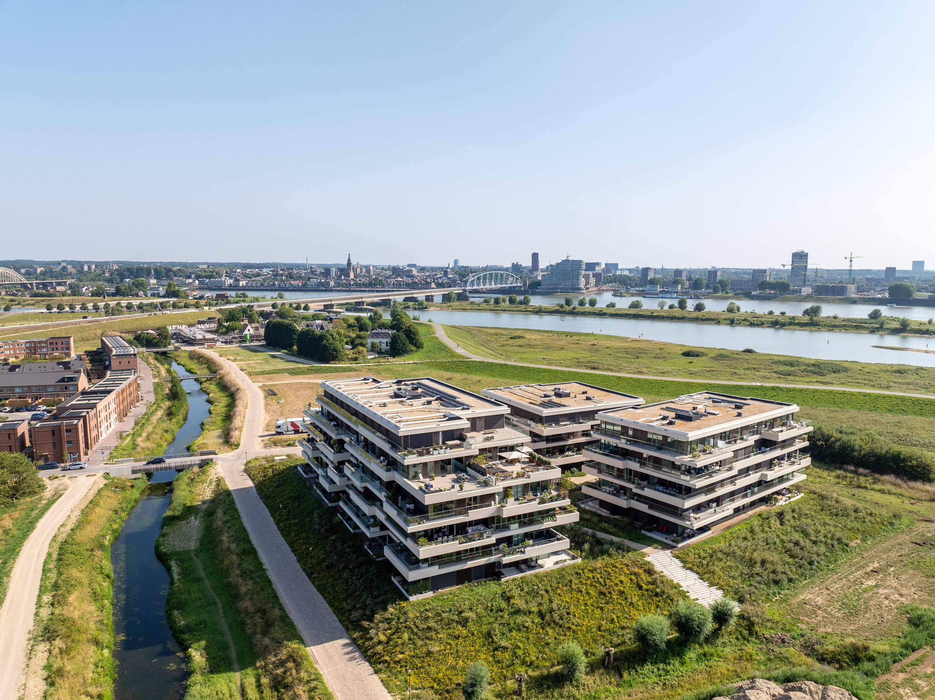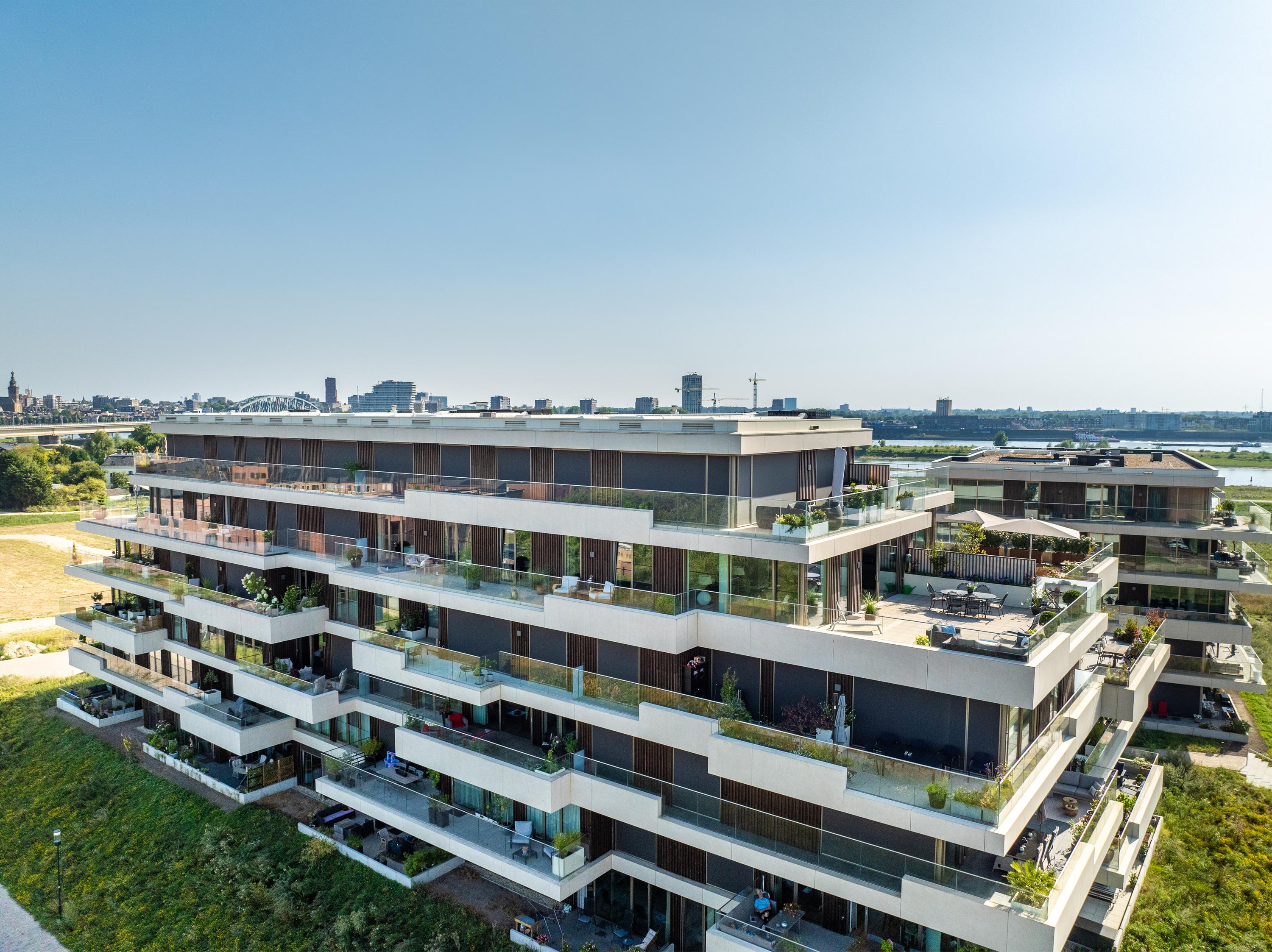 Ontdek het toppunt van luxe en comfort in dit schitterende penthouse. Gelegen in de dijkzone van de Waal, het complex gelegen direct aan de Spiegelwaal, biedt dit penthouse alles wat je hart begeert. Het "LOYD-complex" is eind 2023 opgeleverd en kenmerkt zich door zijn fraaie architectuur, met prachtige terrassen voorzien van glazen terraswanden, waardoor je vanuit dit penthouse een prachtig uitzicht hebt op de Waal, de boomgaard en de nieuwe wijk Hof van Holland. Binnen en buiten zijn enorm met elkaar verbonden. Toch geniet je hier van volledige privacy, zonder directe omliggende bewoning of inkijk van buitenaf. Aan de noord/oostkant grenst het complex aan een singel en de boomgaard, met zicht op NS station Lent en het naastgelegen Van der Valk hotel. Parkeren doe je in de parkeergarage onder het complex, waardoor het uitzicht rondom prachtig en groen blijft.
