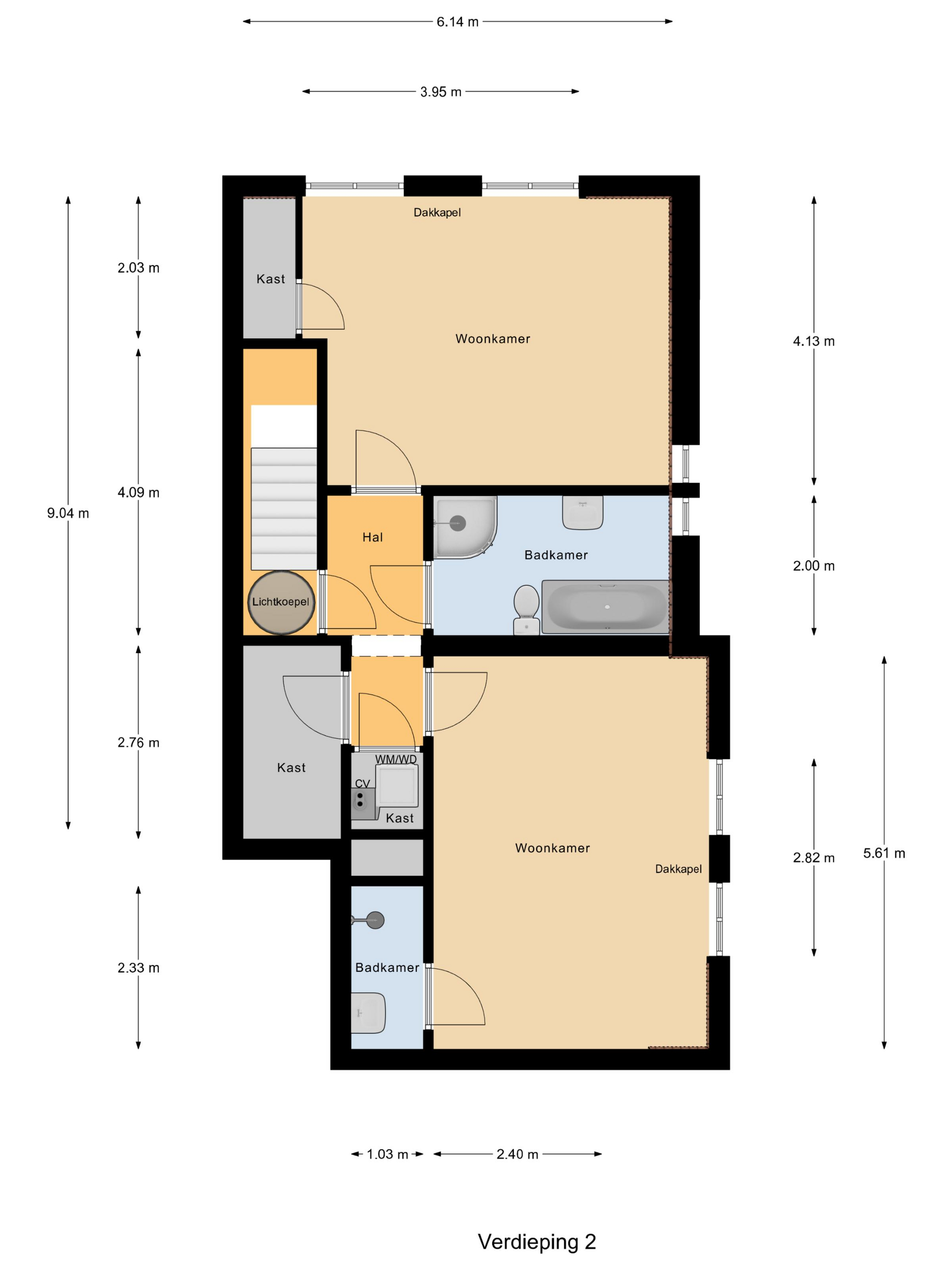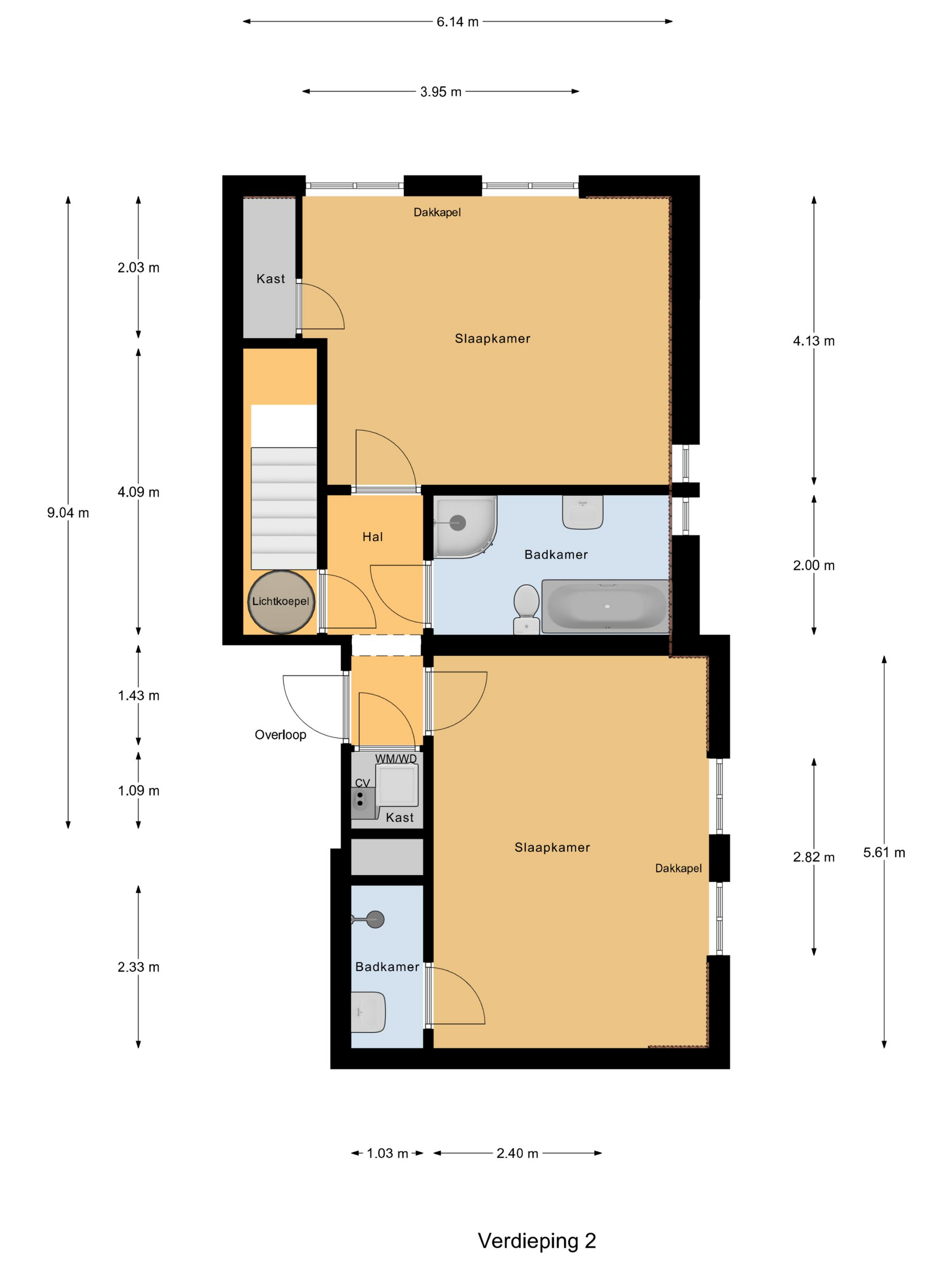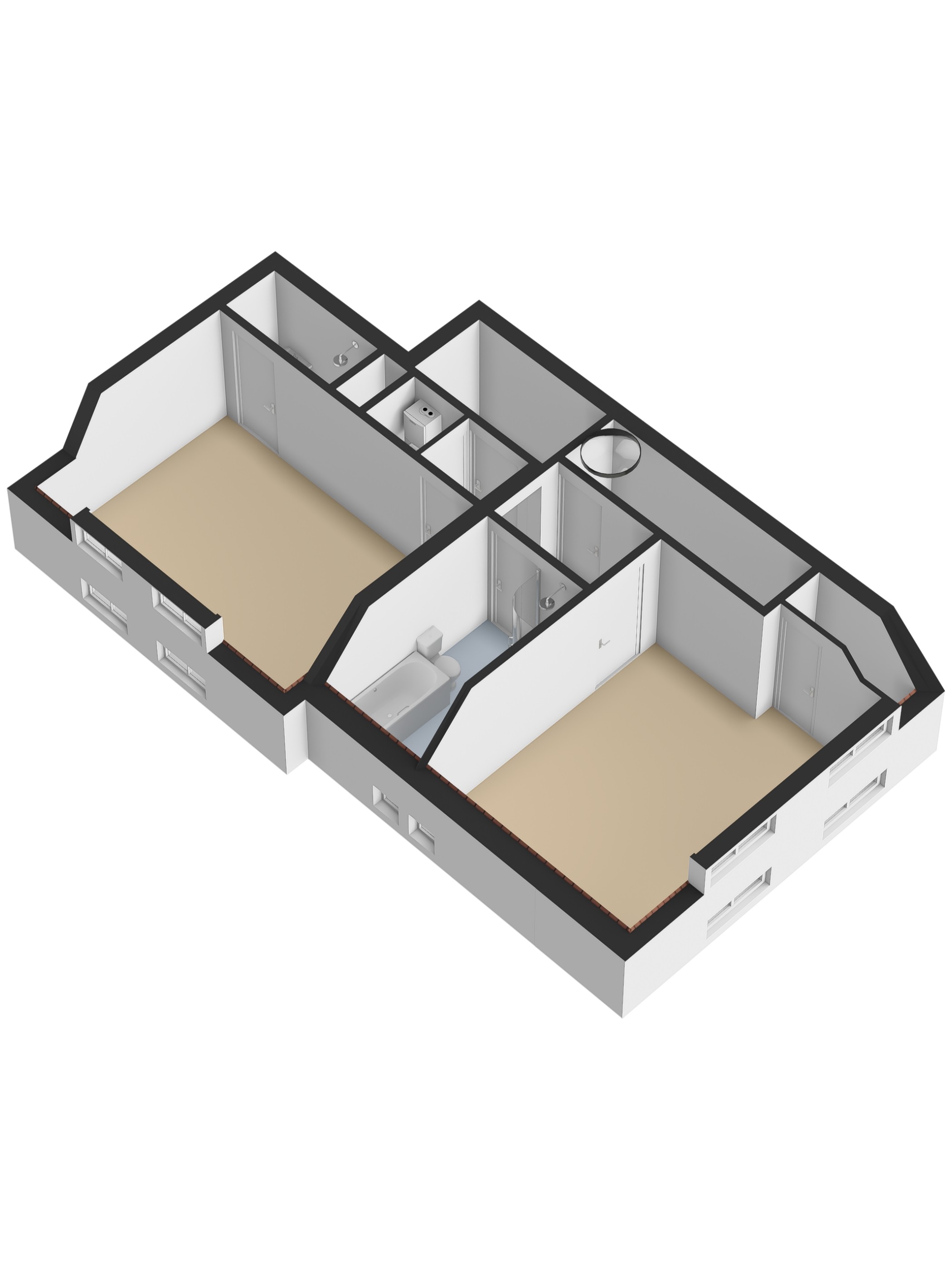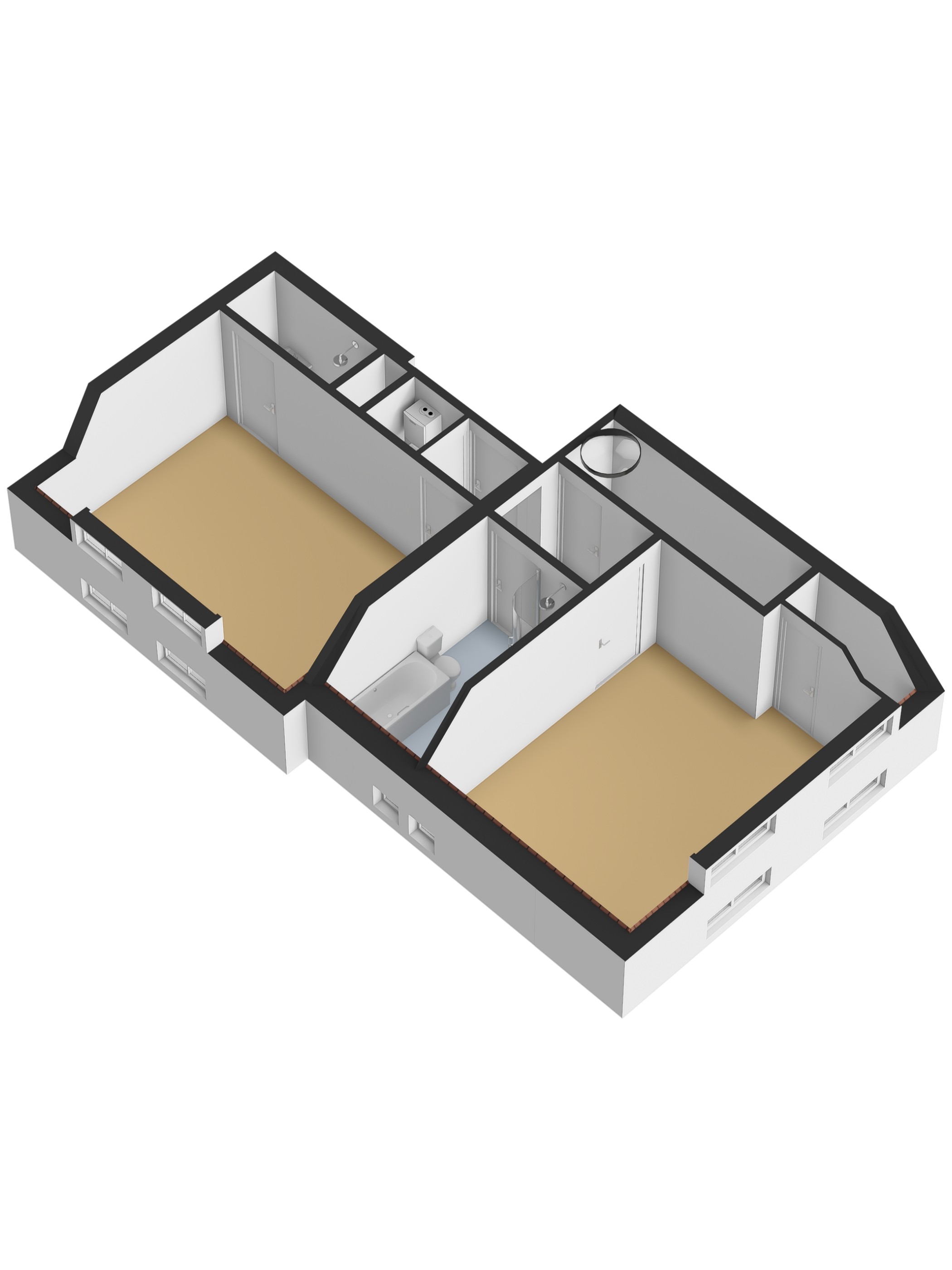 Op de tweede woonlaag bevinden zich twee slaapkamers, waarbij de hoge plafonds en de karakteristieke houten balken, welke in het zicht zijn gelaten en zorgen voor een sfeervolle uitstraling. De slaapkamer aan de voorzijde beschikt over een inloopkast, terwijl de slaapkamer aan de achterzijde is voorzien van een eigen douche met wastafel. De badkamer is uitgerust met een toilet, douche, ligbad en wastafel. Daarnaast is er een praktische aparte ruimte met aansluitingen voor de wasmachine en droger en de opstelplaats voor de cv-installatie. De tweede verdieping is natuurlijk bereikbaar via de vaste trap in het appartement, maar beschikt daarnaast ook over een eigen ingang, welke bereikbaar is via het gezamenlijke trappenhuis van de villa. Dit zorg voor extra flexibiliteit en mogelijkheden.