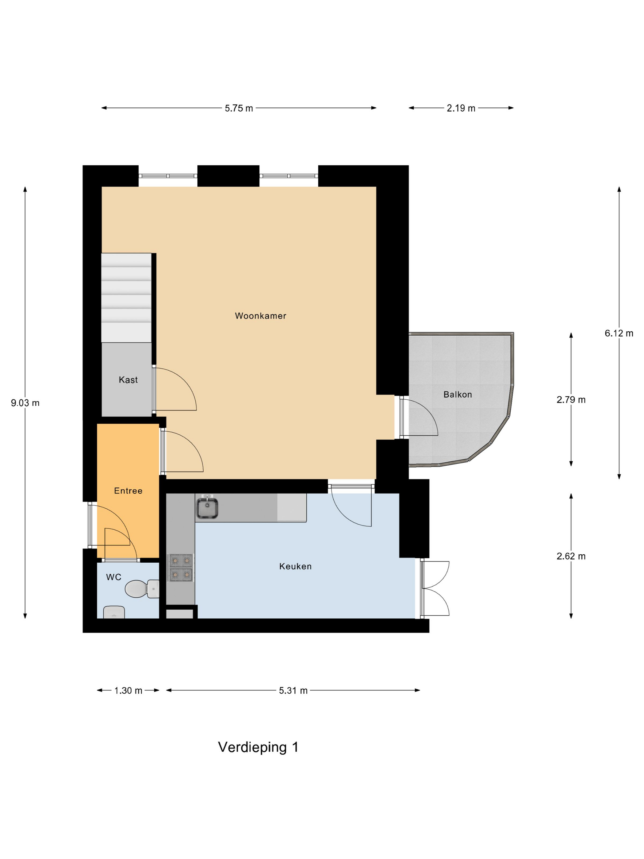 Het bordes, de imposante voordeur, de briefkasten en videofoon geven de eerste impressie.