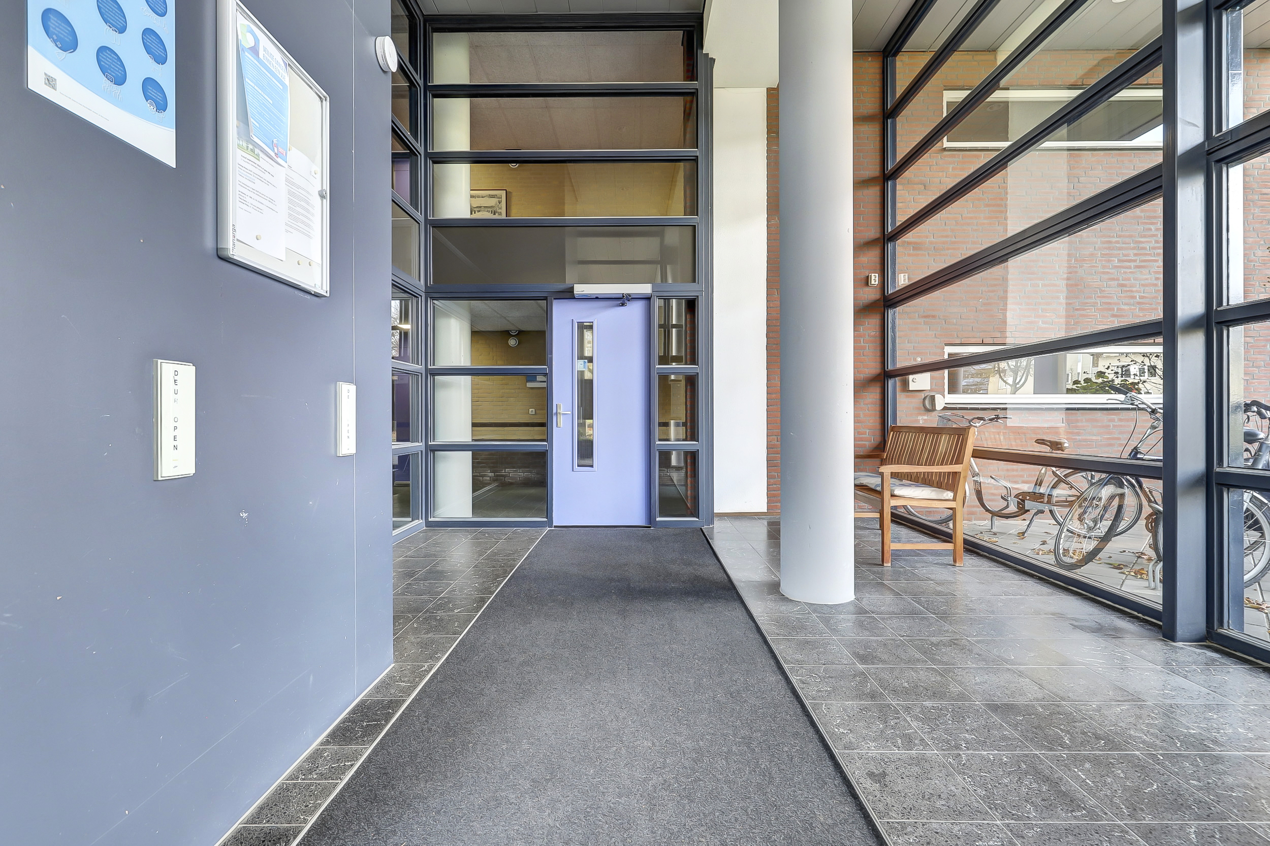 Begane grond: entree, hal met brievenbussen en intercomsysteem/videofooninstallatie. Trapopgang en lift naar de verdiepingen.