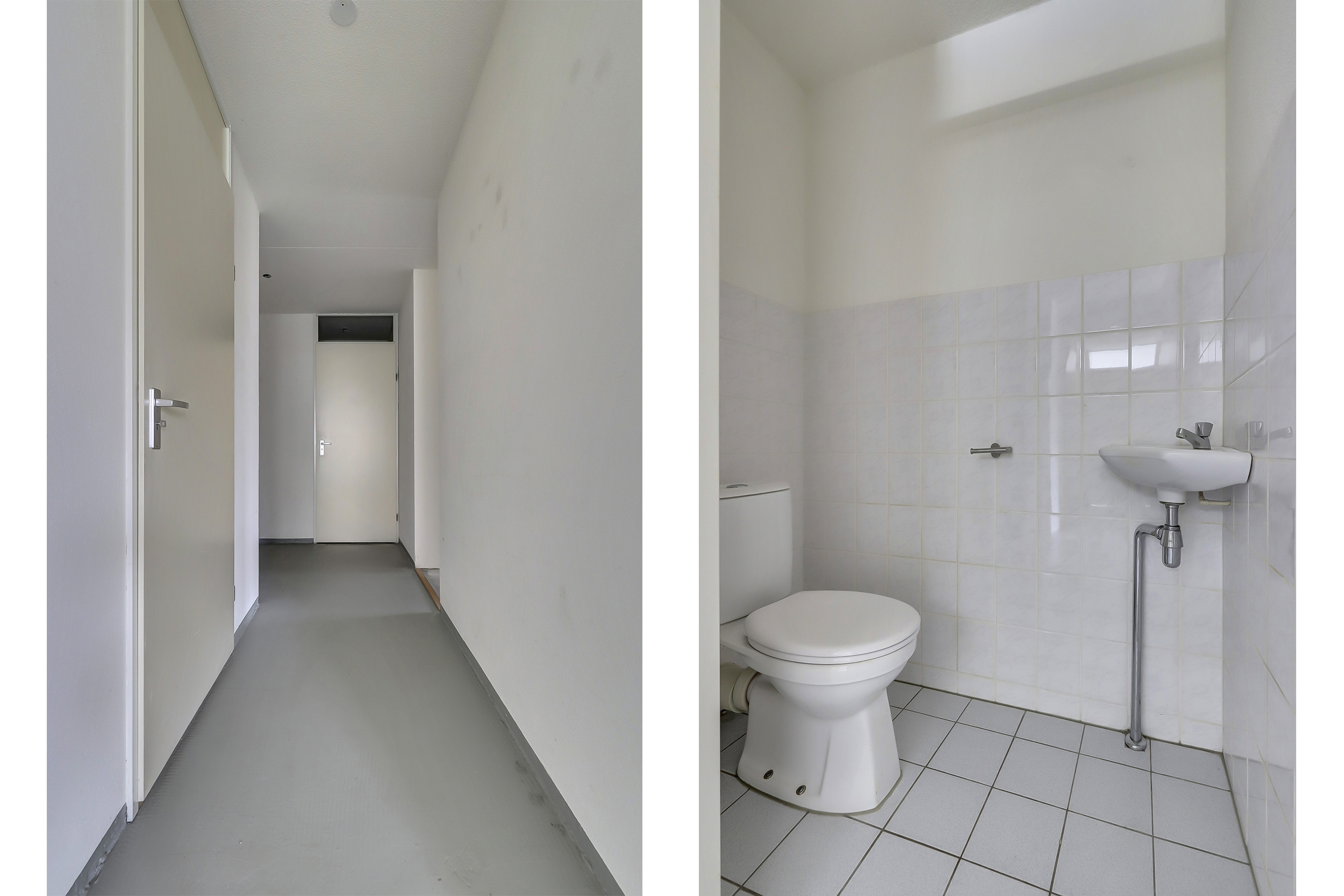 1e Verdieping: entree, ruime hal met meterkast, toilet met fontein, ruimte voor opstelling CV-combiketel (Intergas 2025), mechanische ventilatie en wasmachineaansluiting; tevens geschikt als berging.
