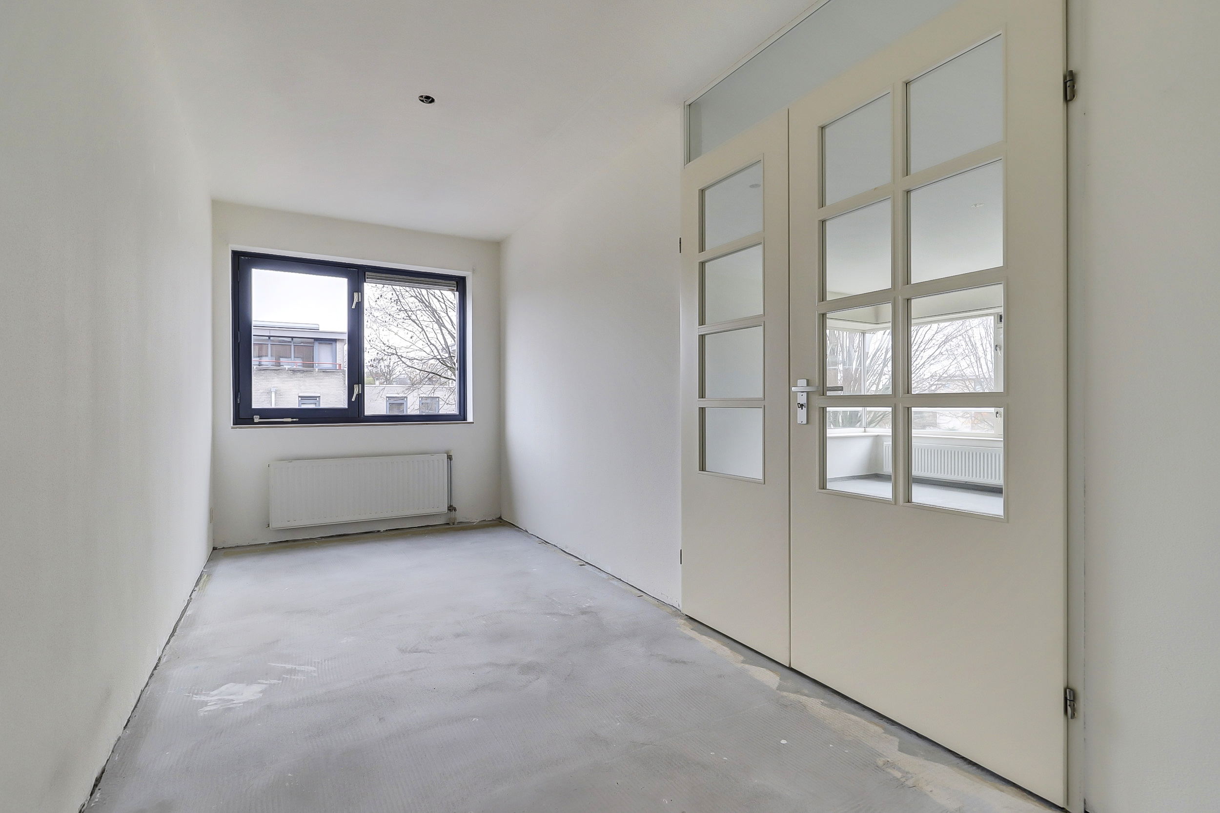 Er zijn twee slaapkamers van ca. 14 m2 en 10 m2. Vanuit de woonkamer is de kleinste slaapkamer middels openslaande dubbele deuren te bereiken; deze ruimte kan dus in plaats van een slaapkamer, ook een verruiming betekenen van de woonkamer. Uiteraard zijn beide slaapkamers ook via de gang te bereiken.
